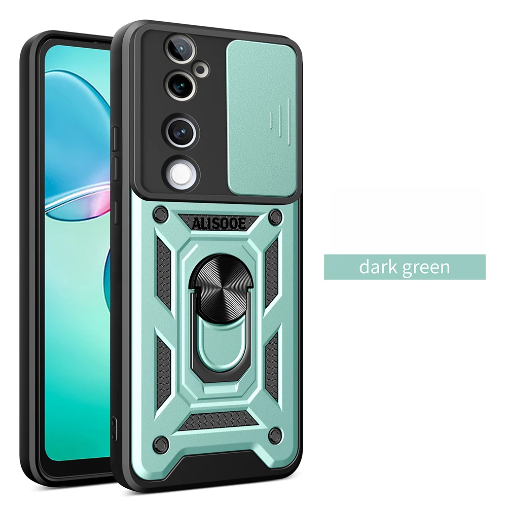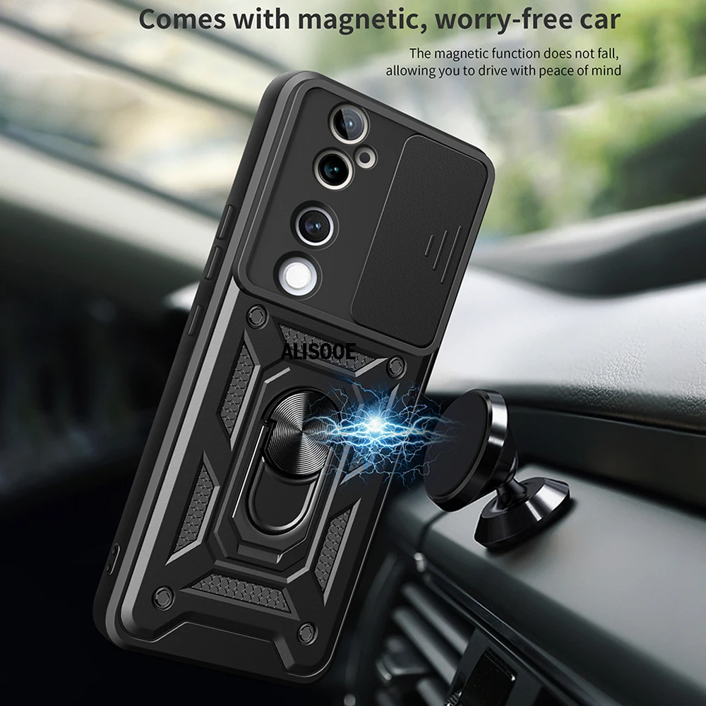 Comprar Funda de armadura para VIVO V40 Pro 5G, carcasa deslizante para lente de cámara, soporte de anillo protector, cubierta de teléfono a prueba de golpes para VIVO V40 5G