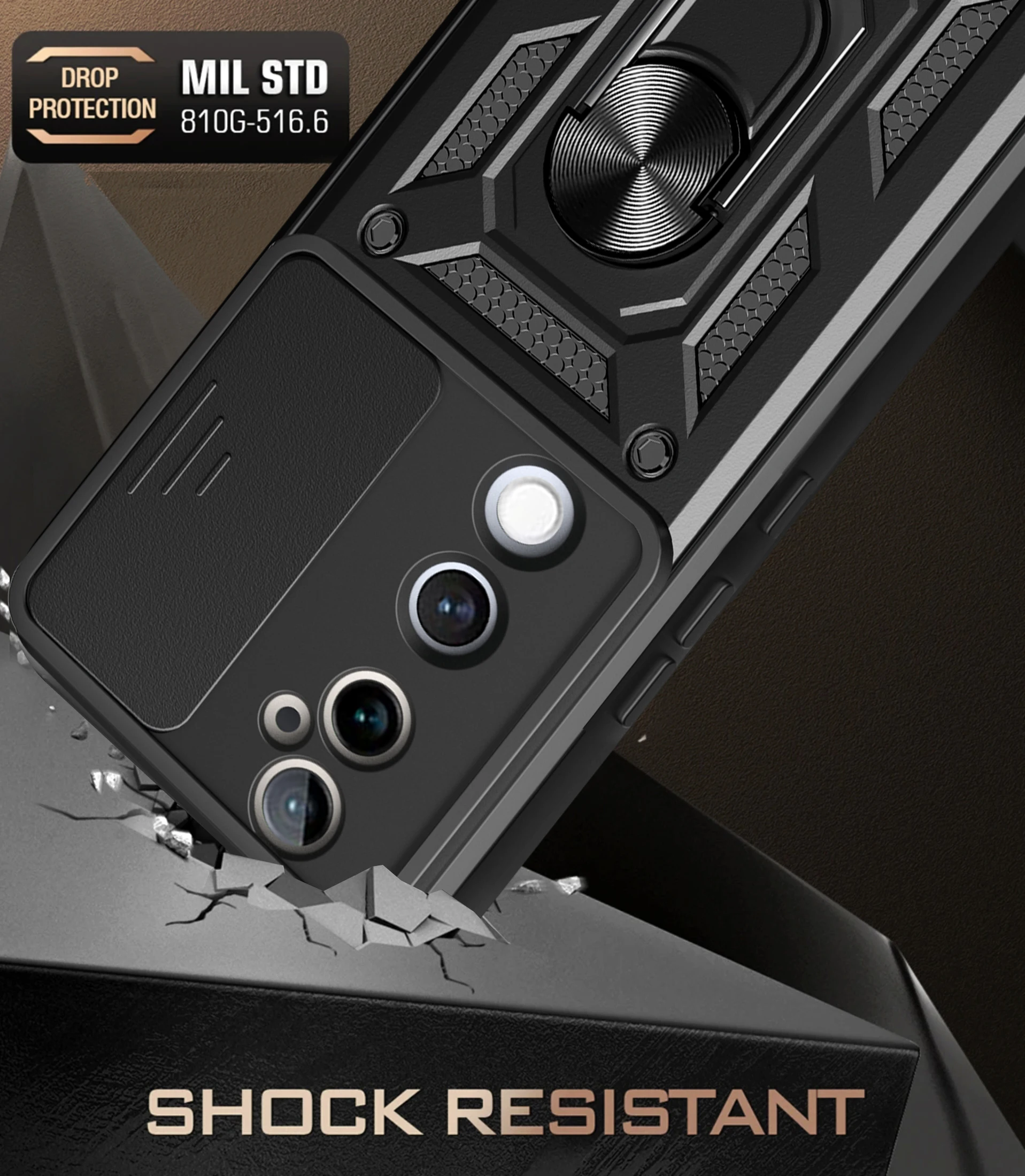 Funda de armadura para VIVO V40 Pro 5G, carcasa deslizante para lente de cámara, soporte de anillo protector, cubierta de teléfono a prueba de golpes para VIVO V40 5G