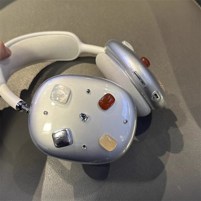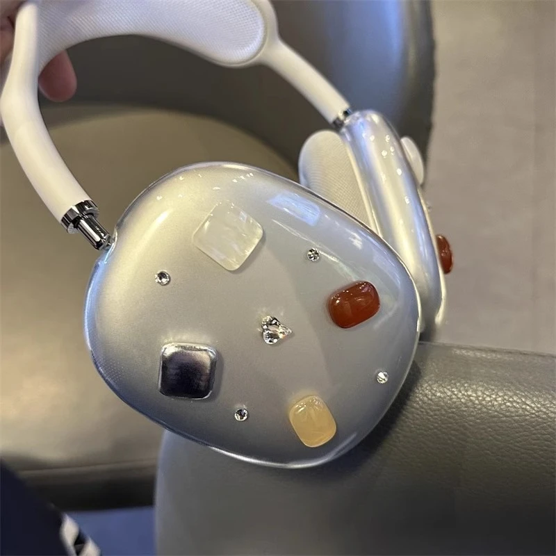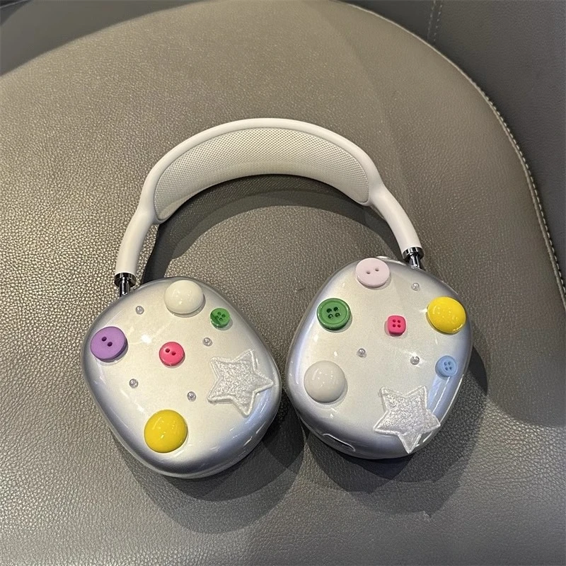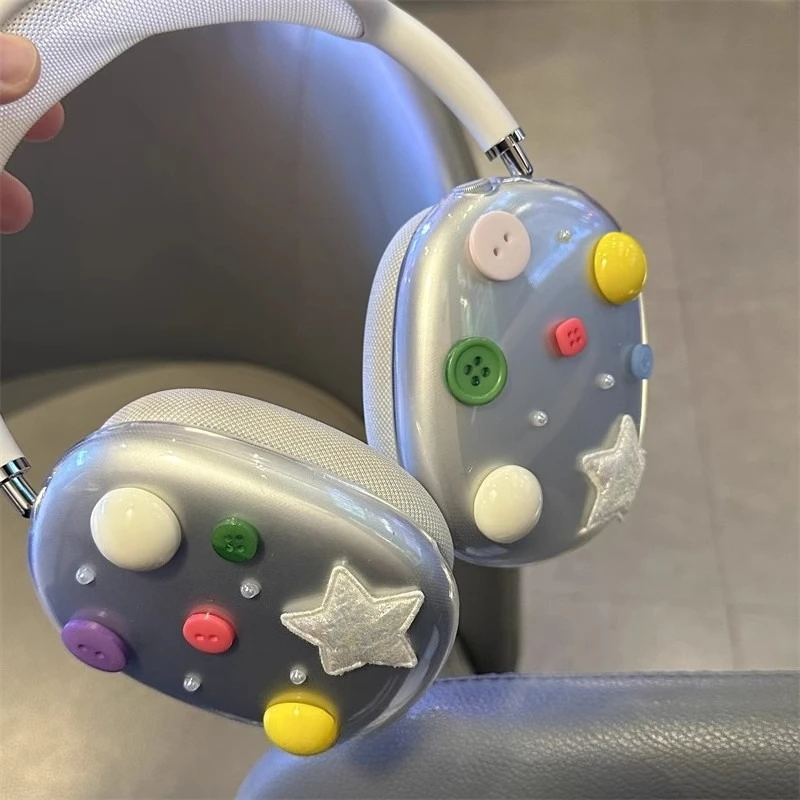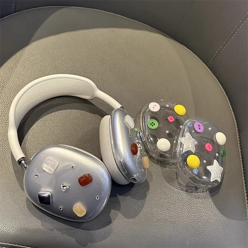 Funda para auriculares Airpods Max con botones geométricos originales, funda protectora personalizada transparente, accesorio Y2K, regalo para niña