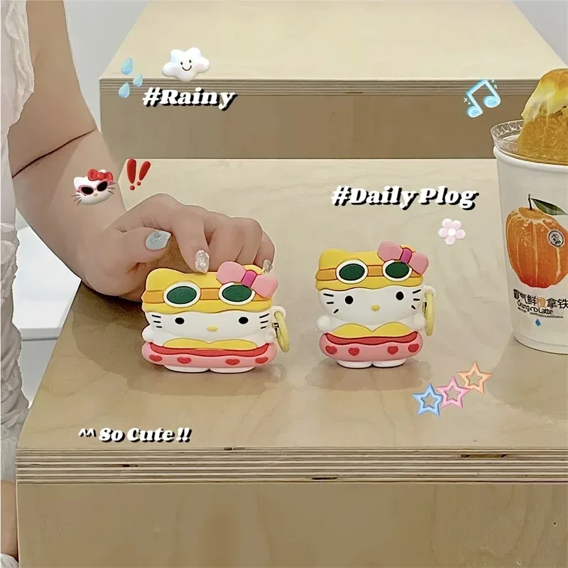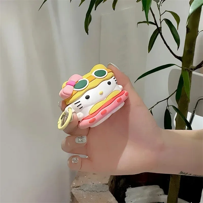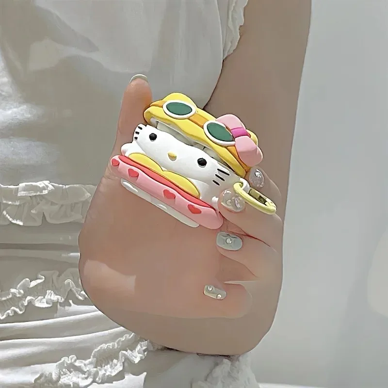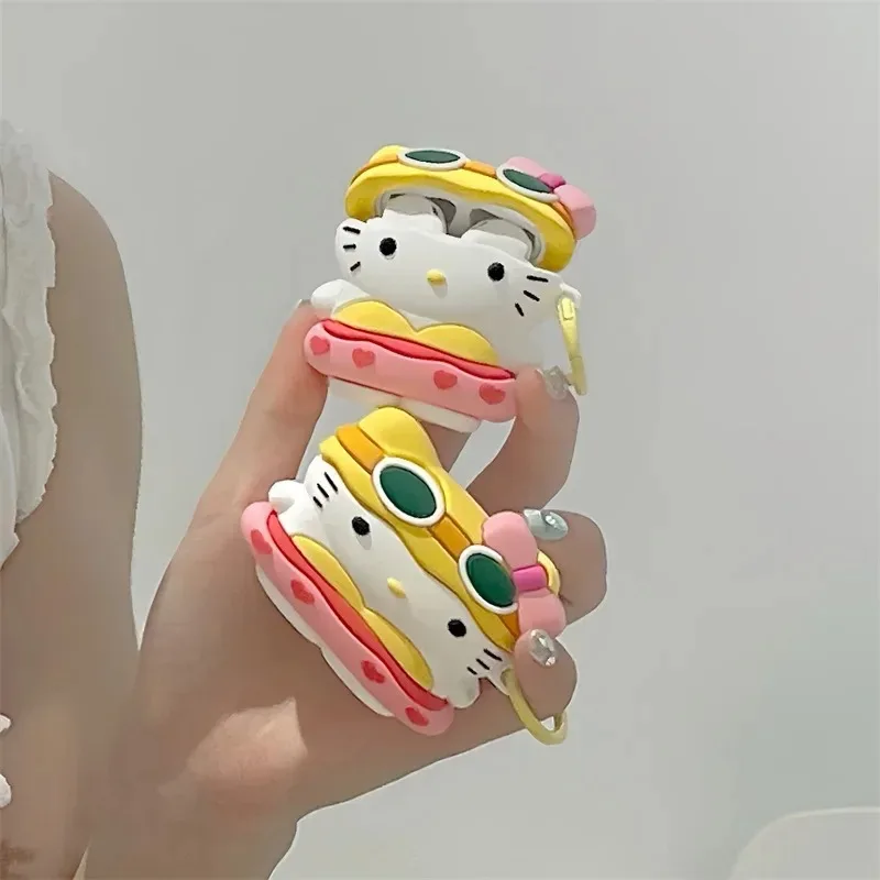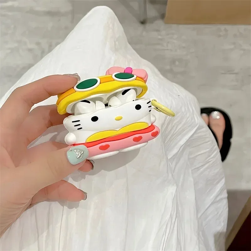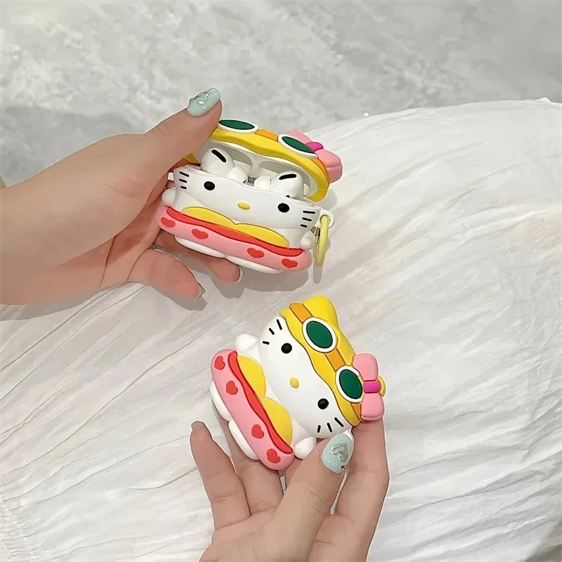 Funda para auriculares con dibujos animados de Hello Kitty 3D para Airpods 4 1 2 3 Pro, bonita funda protectora de silicona para Airpods Pro2 con gancho