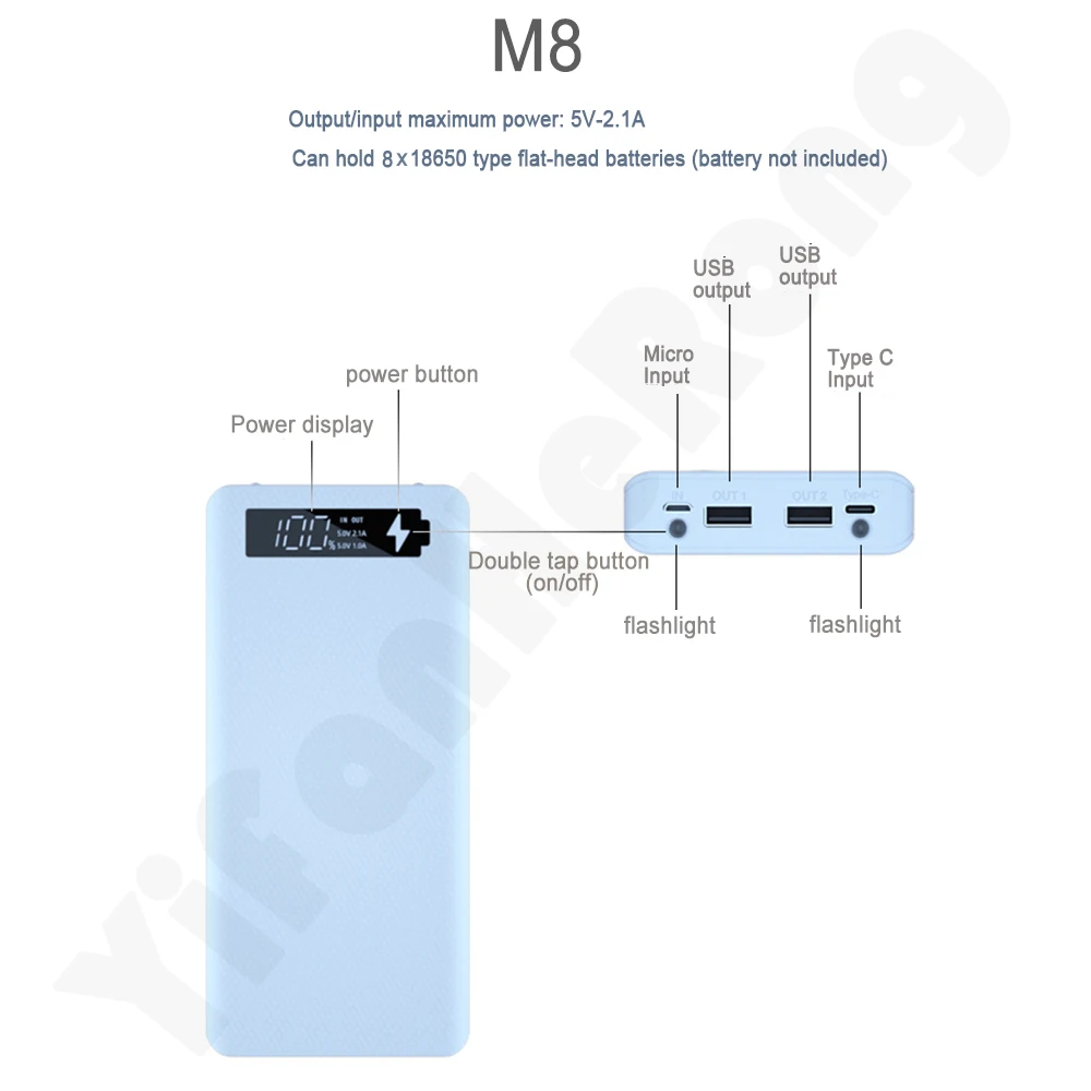 1. Nuevo sistema de control de entrada inteligente de doble salida rápida, puede colocar 8*18650 batería