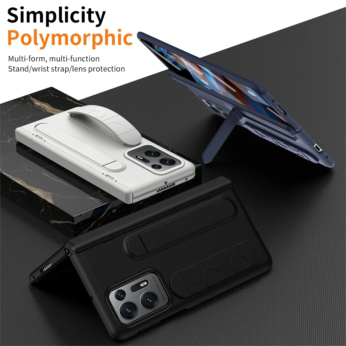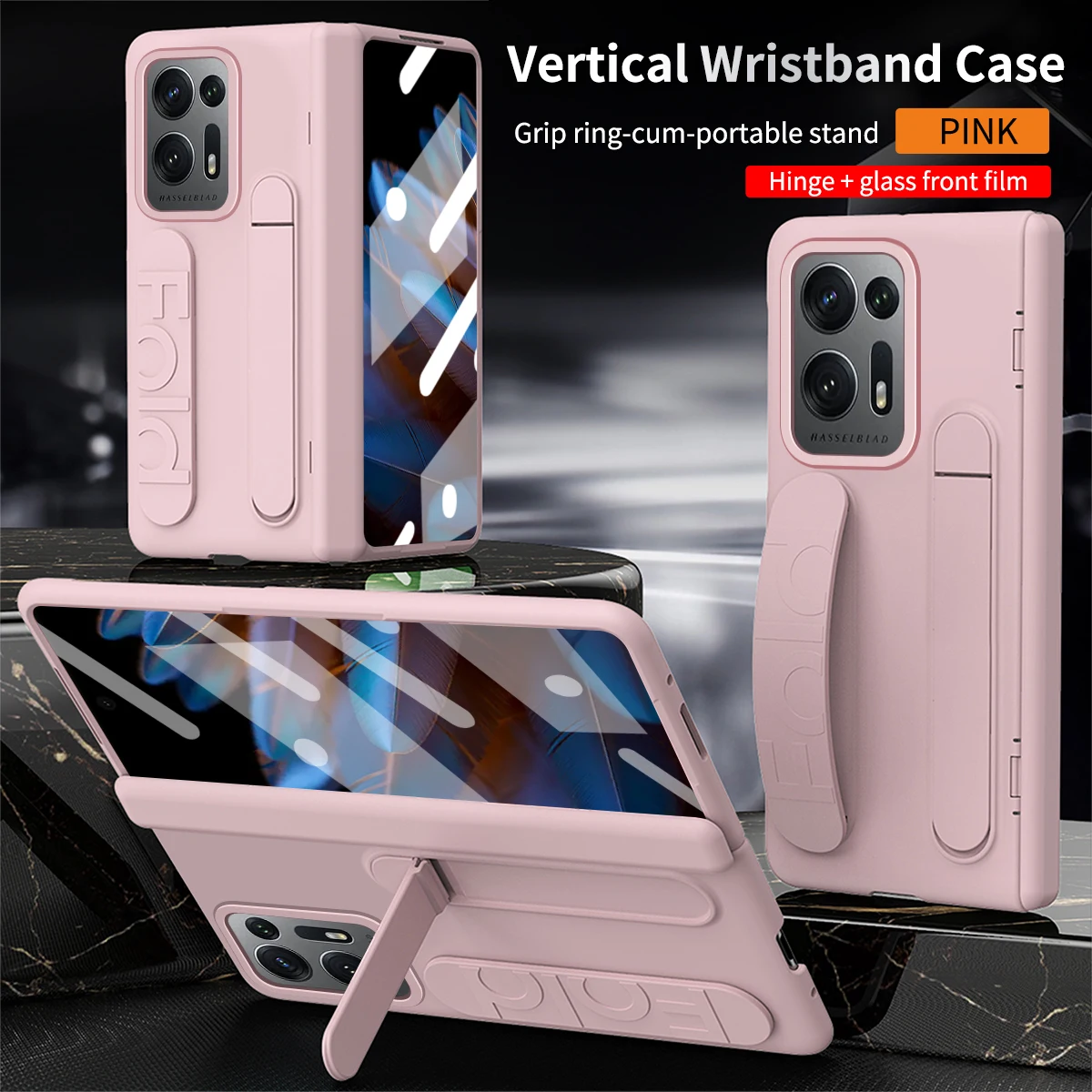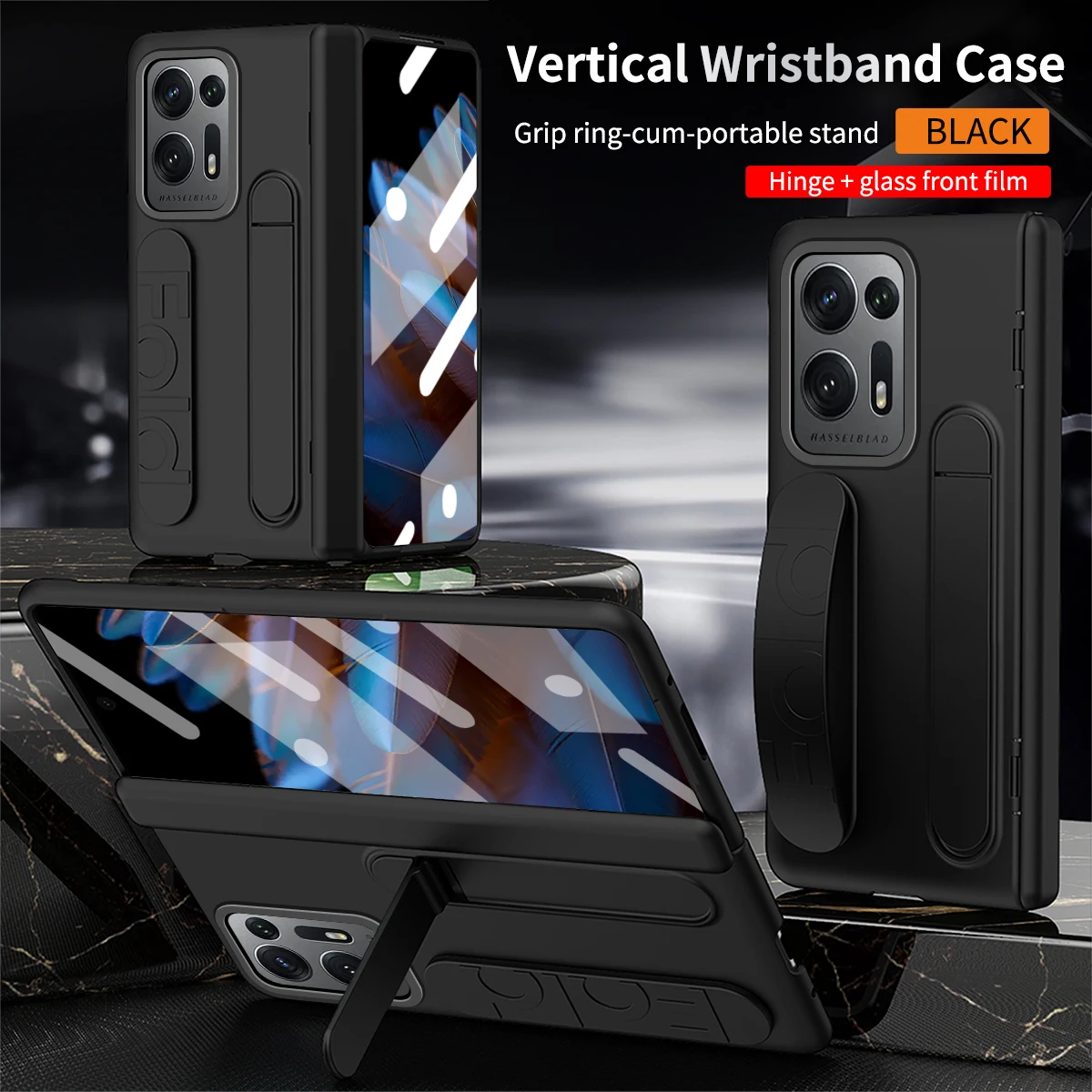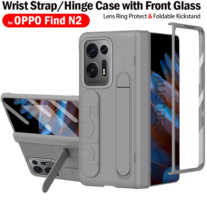 Comprar Funda con bisagra para correa de muñeca para OPPO Find N2, soporte para pulsera, pantalla frontal, protección de vidrio, cubierta de plástico Capa