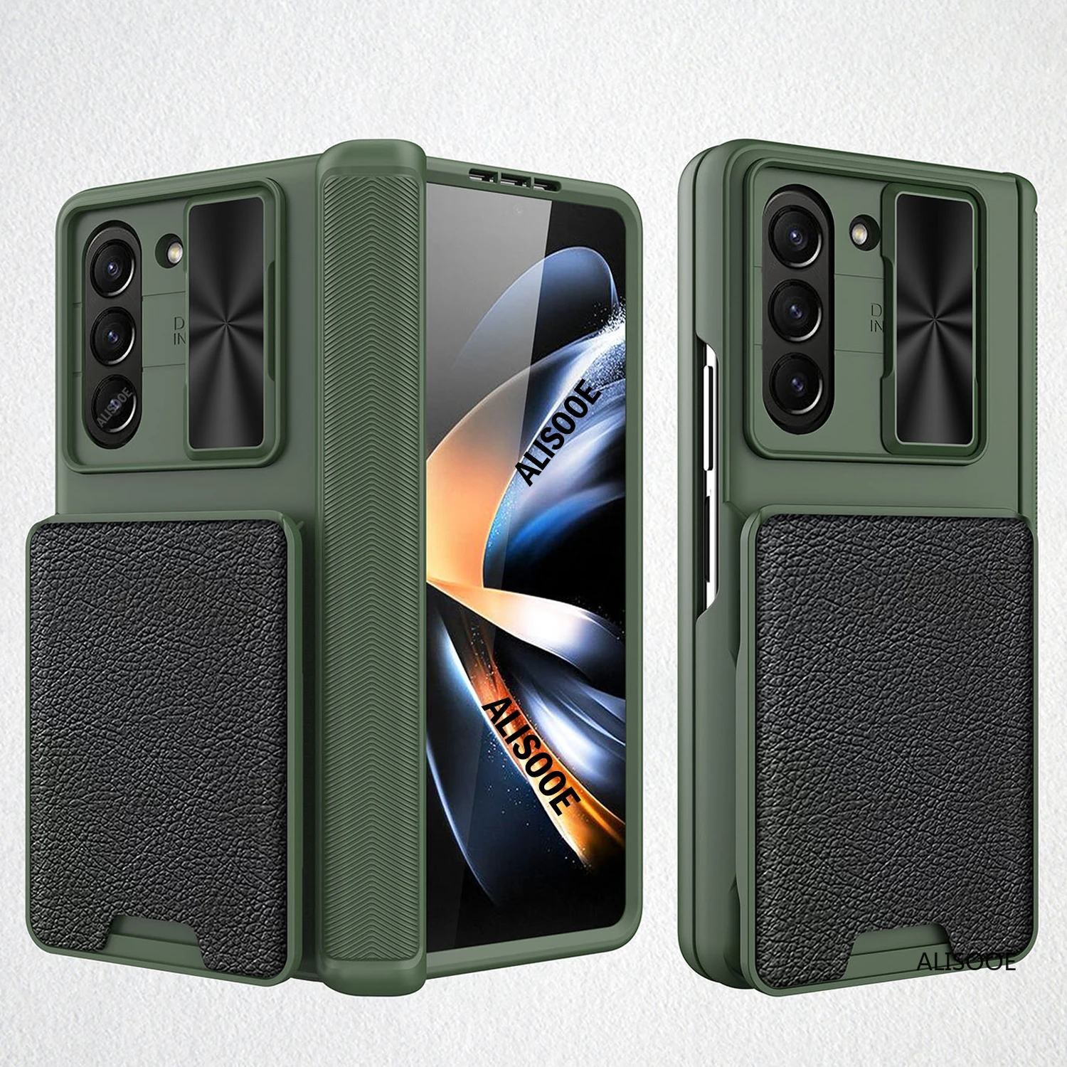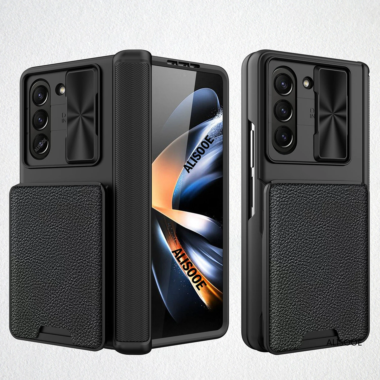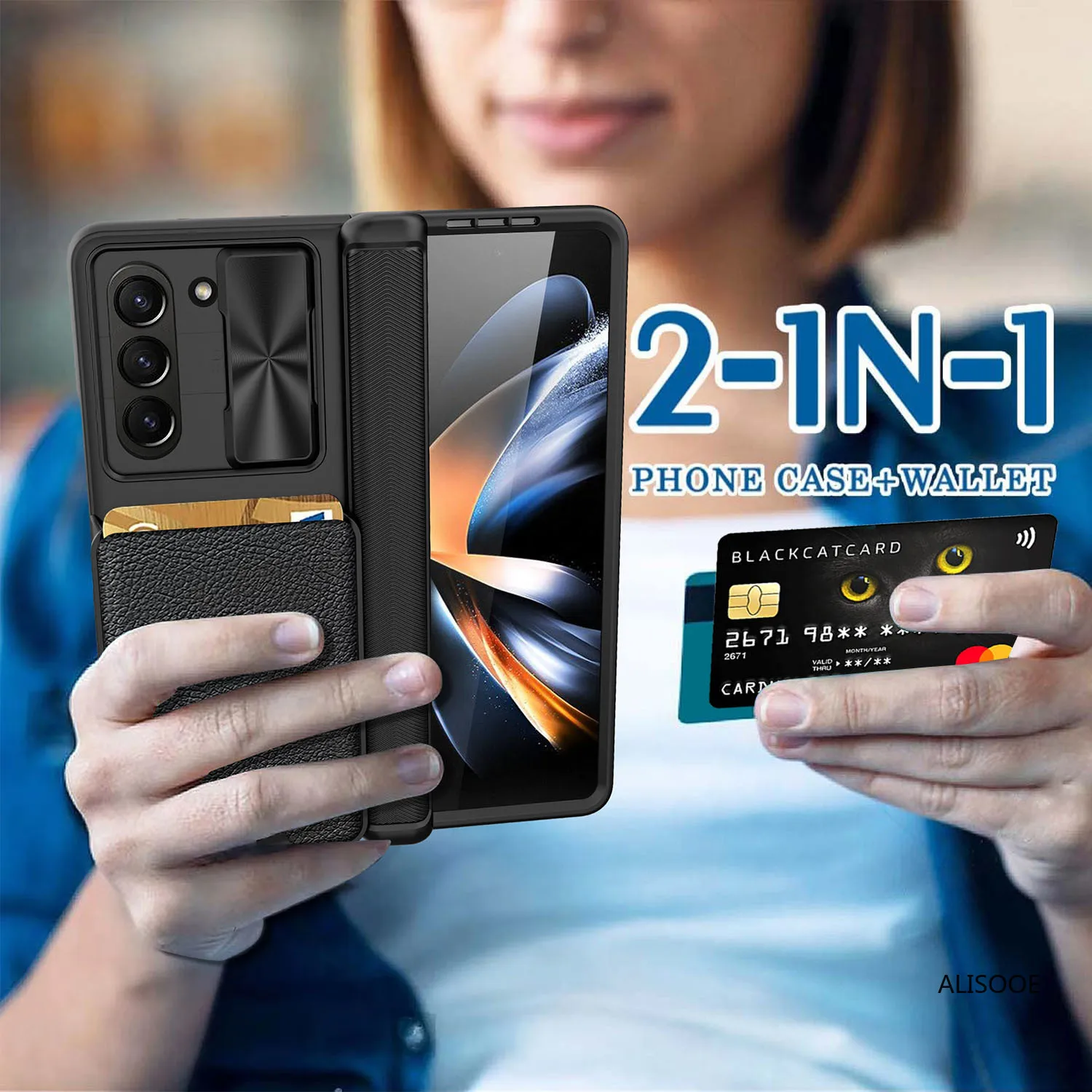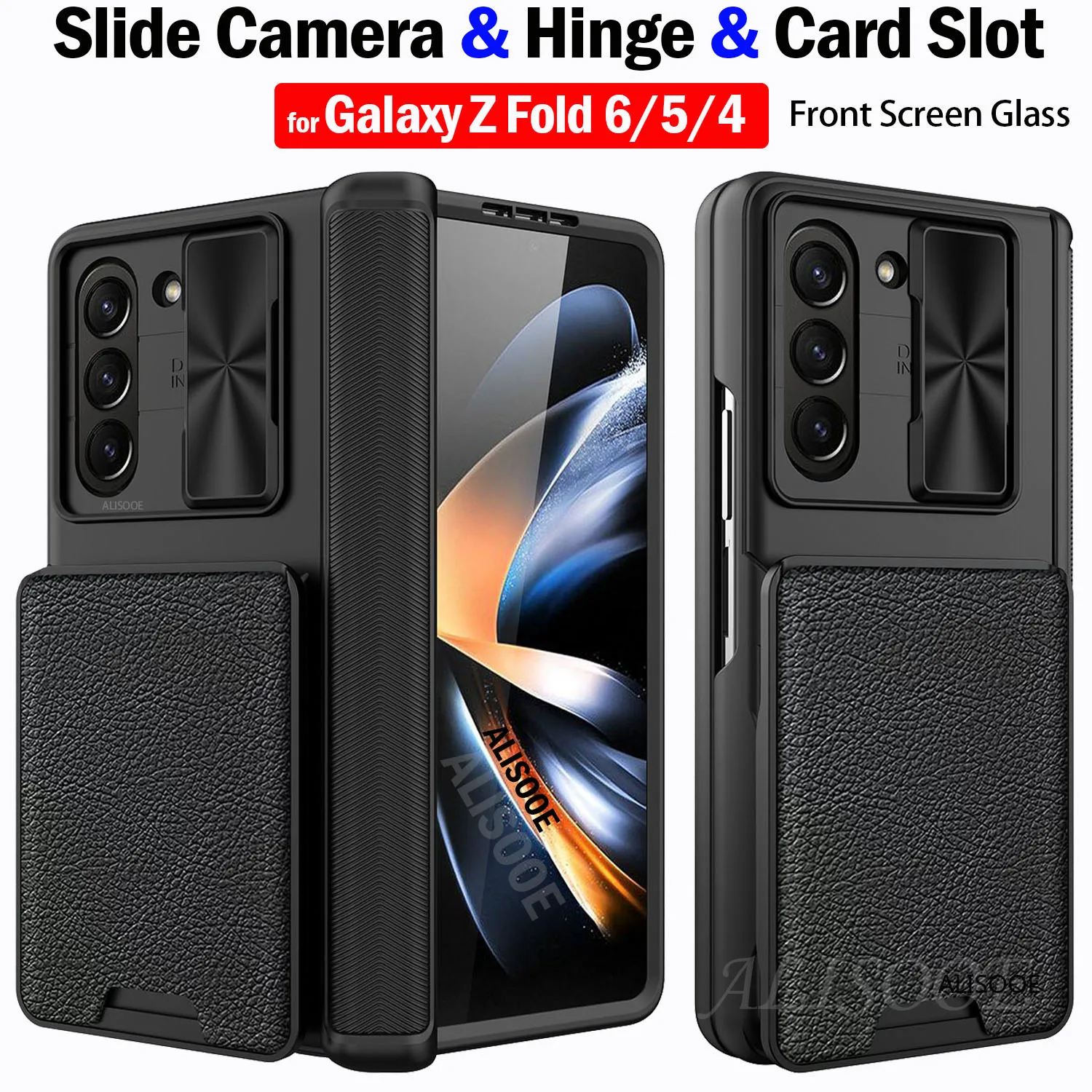 Funda con bisagra deslizante para cámara Samsung Galaxy Z Fold 6 Fold6 5 4, carcasa extraíble, billetera con ranura para tarjeta, pantalla frontal, cubierta de vidrio para teléfono