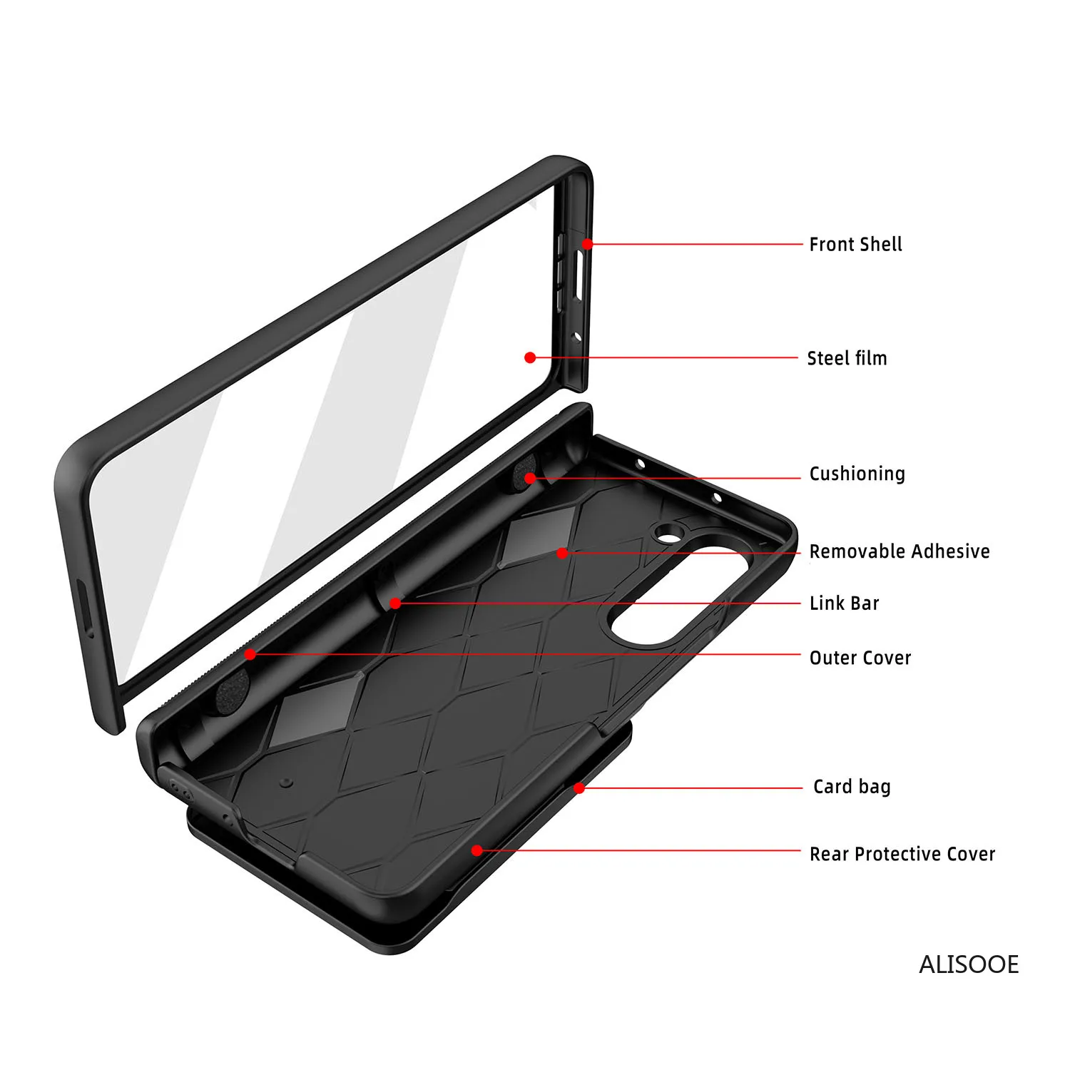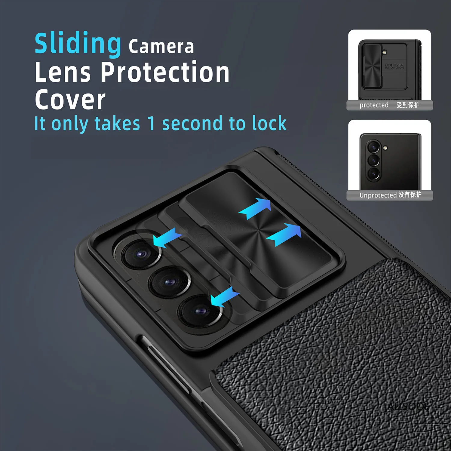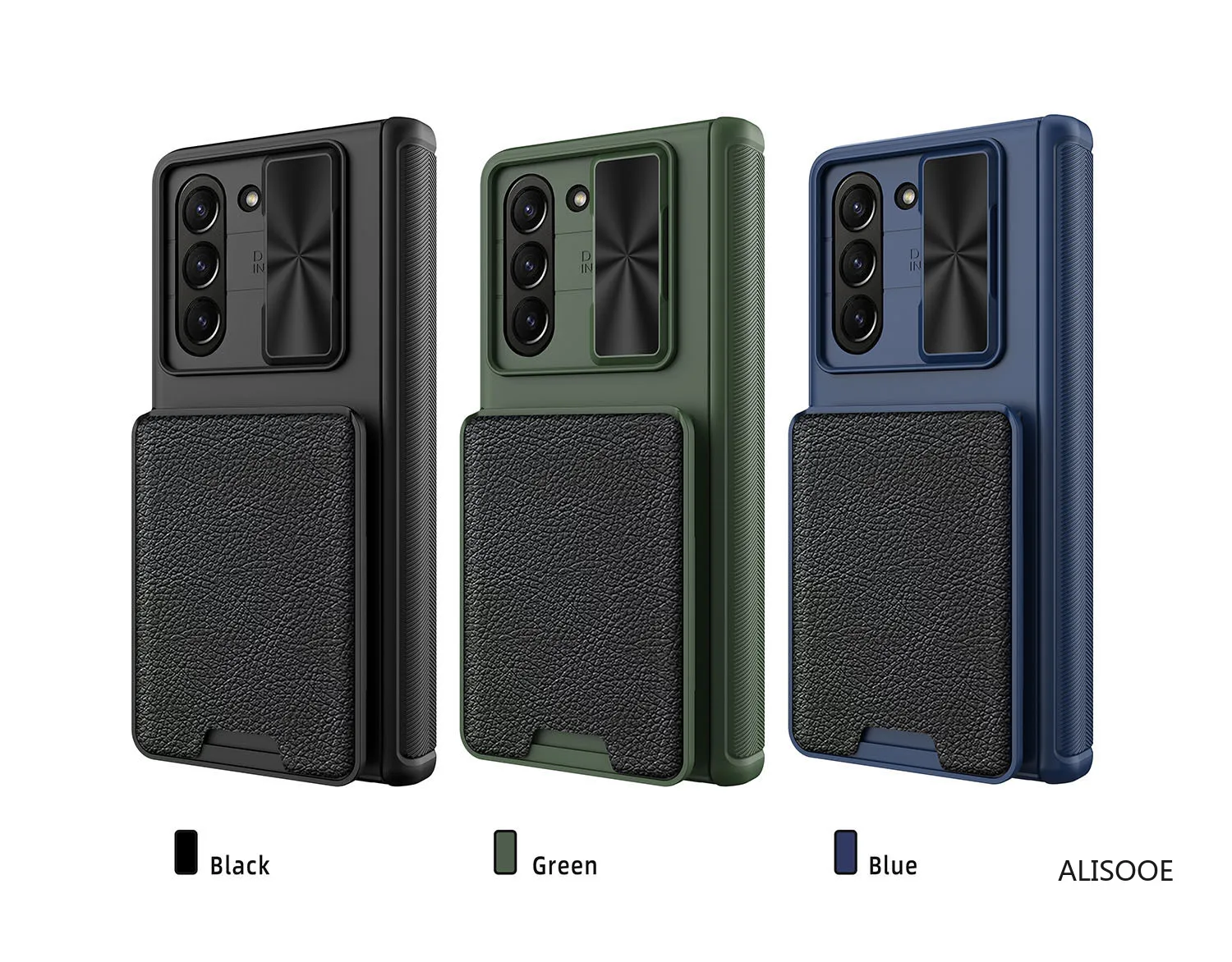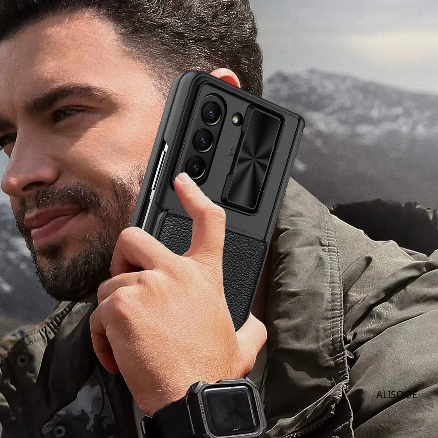 Funda con bisagra deslizante para cámara Samsung Galaxy Z Fold 6 Fold6 5 4, carcasa extraíble, billetera con ranura para tarjeta, pantalla frontal, cubierta de vidrio para teléfono