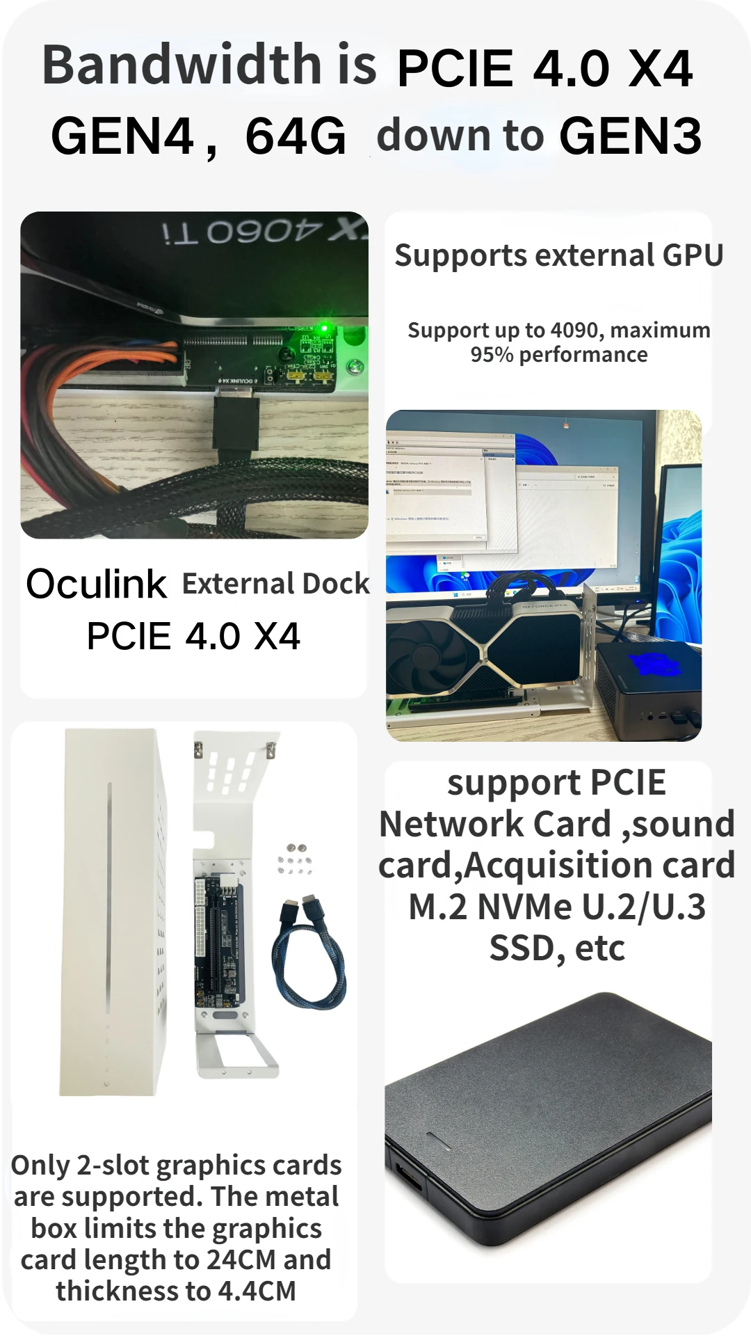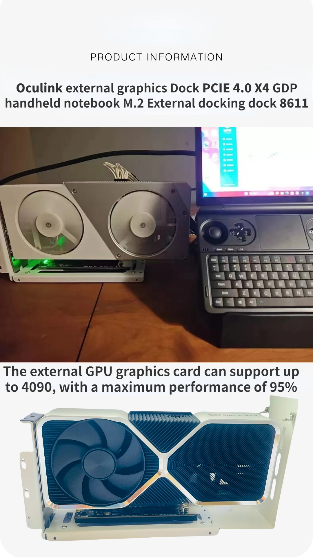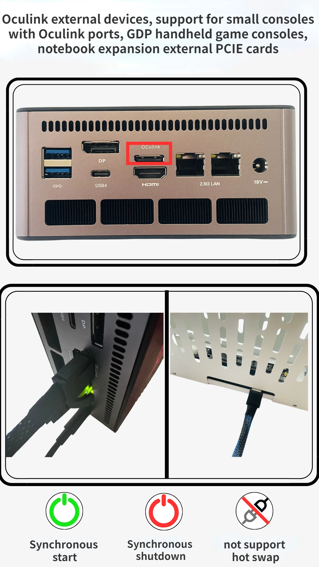2.Admite host pequeño con puerto oculink, consola de juegos portátil GDP, tarjeta PCIE externa de expansión para computadora portátil.