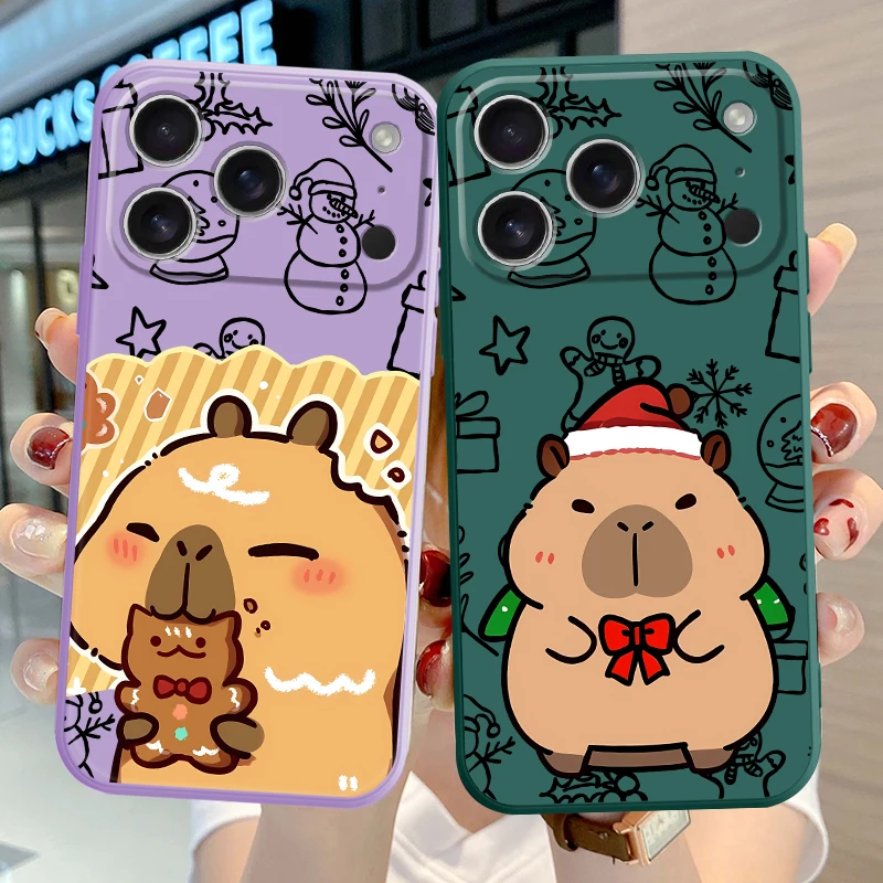Funda blanda para Apple iPhone 11 12 13 Pro Max 16 14 15 Plus XS 17 Air 16e XR 7 8 lindo capibara navideño