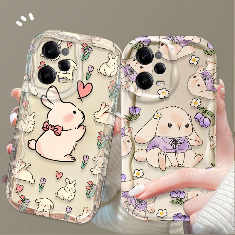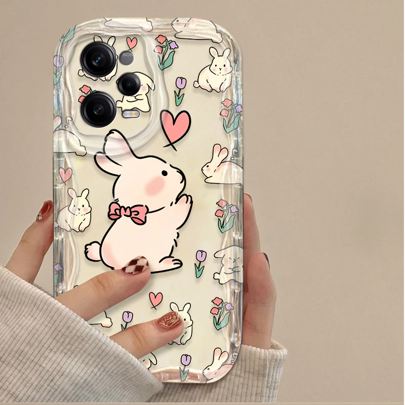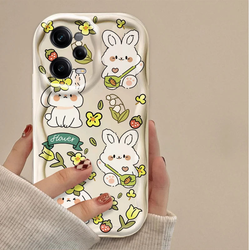 Comprar Funda blanda con diseño de conejo y flor ondulada 3D para Xiaomi Redmi Note 13 12 Pro Plus 4G 5G 12S 11S 1110 10S 9 9S Redmi 14C 13C 12C A3