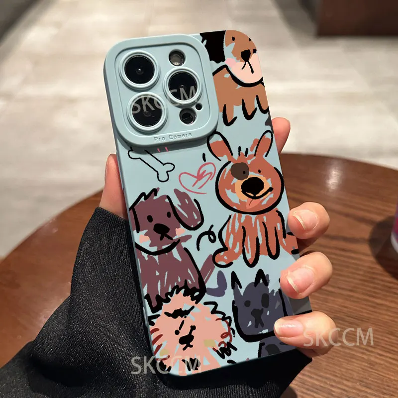 Funda blanda con diseño de perro y grafiti de gatos divertidos para iPhone 11, fundas para iPhone 16 15 Pro Max, iPhone 14, 13, 12 Pro Max, XR X XS 7, 8 Plus