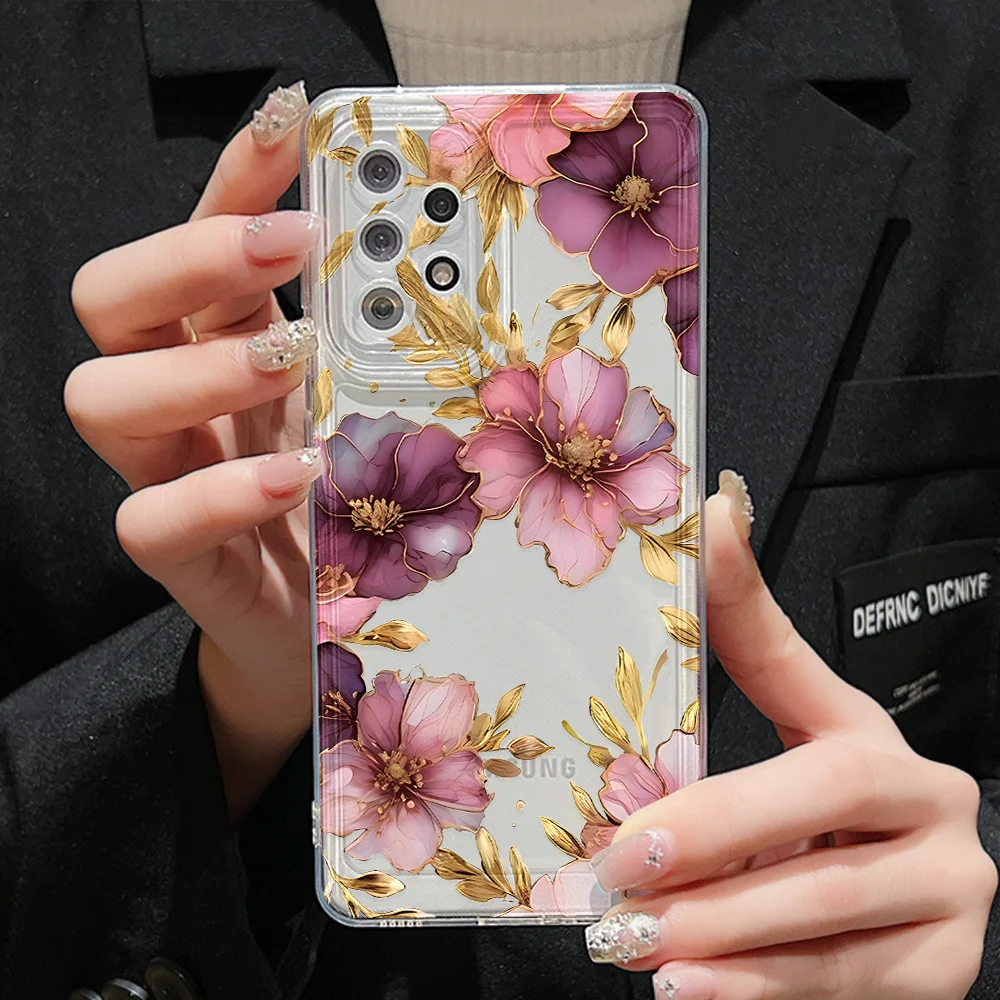 Funda suave para Samsung A56 A55 A54 A53 A06 A26 A16 A15 A36 A35 A34 A33 S24 S25 Ultra S23 S22 Plus funda transparente con flores coloridas