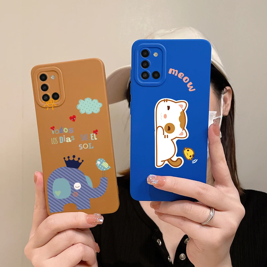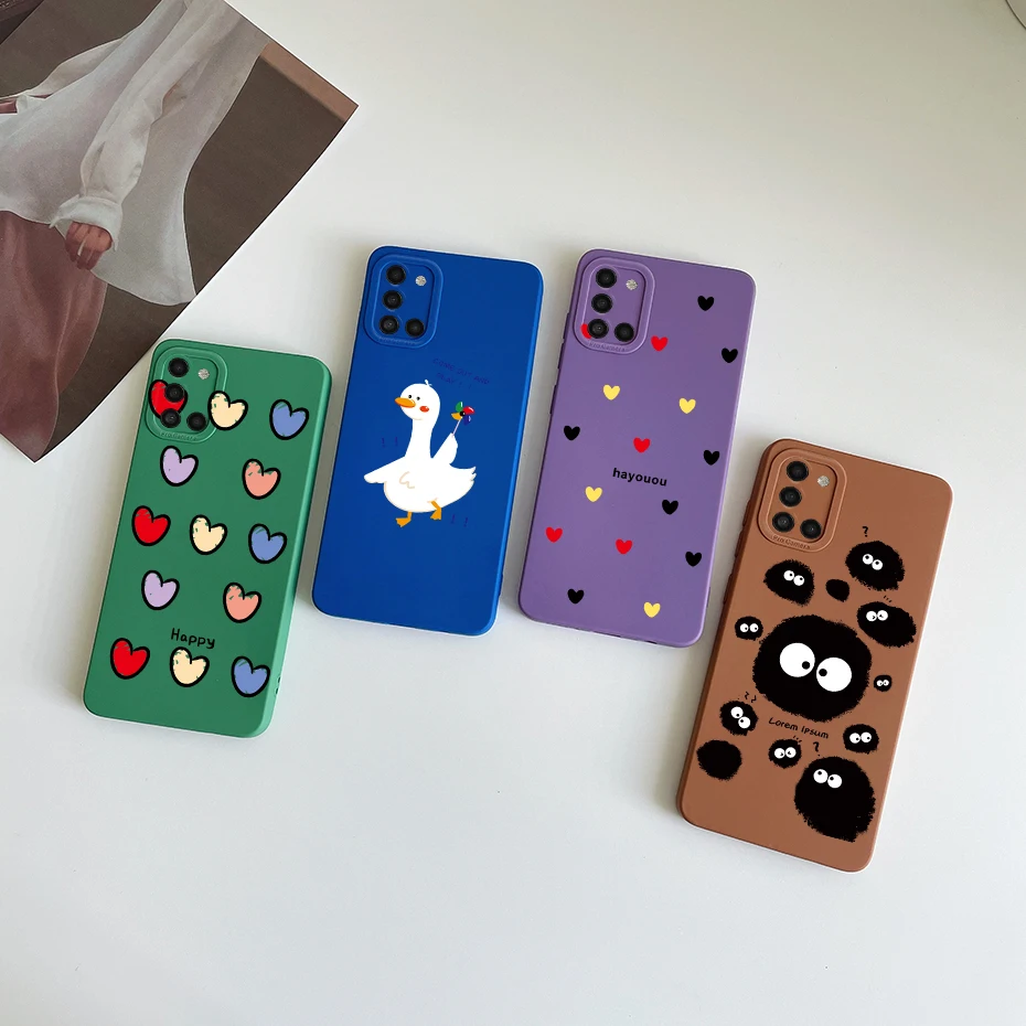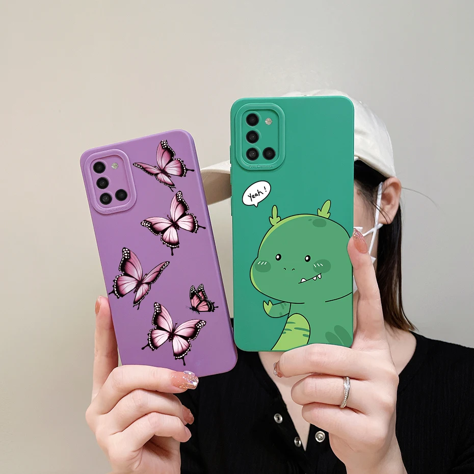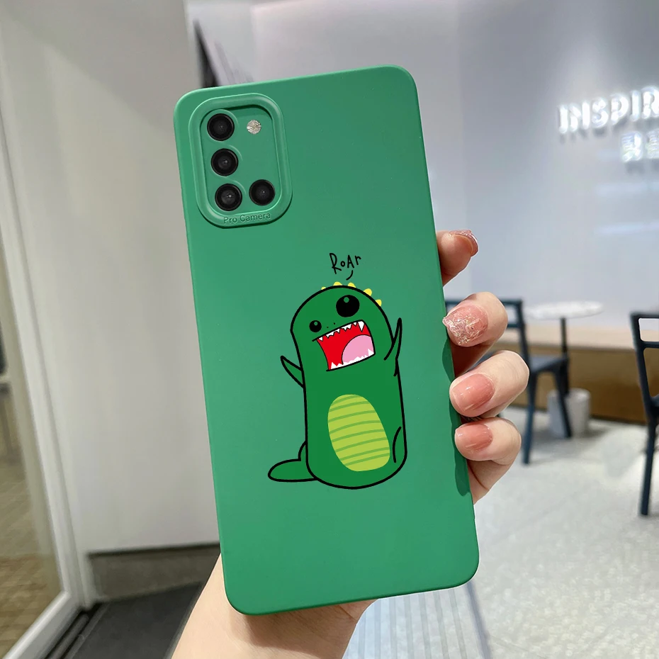 Comprar Funda blanda de silicona líquida para teléfono Samsung Galaxy A31, carcasa trasera cuadrada de 6,4 pulgadas con bonito dinosaurio, A31