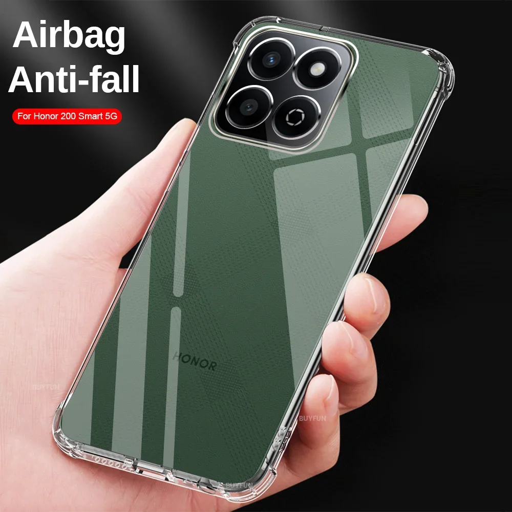 Comprar Funda blanda de silicona de lujo para Airbag para Honor 200 Smart 5G, funda trasera a prueba de golpes Honor200Smart, carcasa transparente fina Onor Honer 200Smart