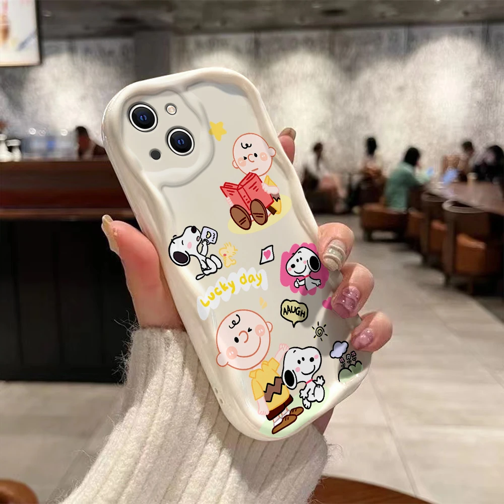 Funda bonita de Anime Snoopys 3D Wave para iPhone 15 14 13 12 11 Pro Max Mini X XR XSMAX 8 7 6S Plus, funda de silicona suave