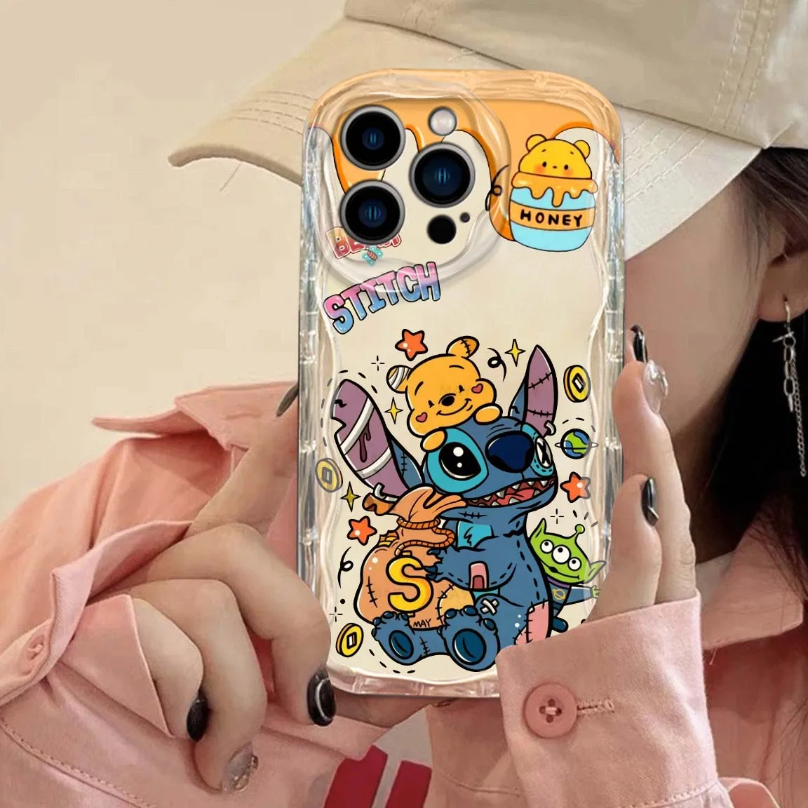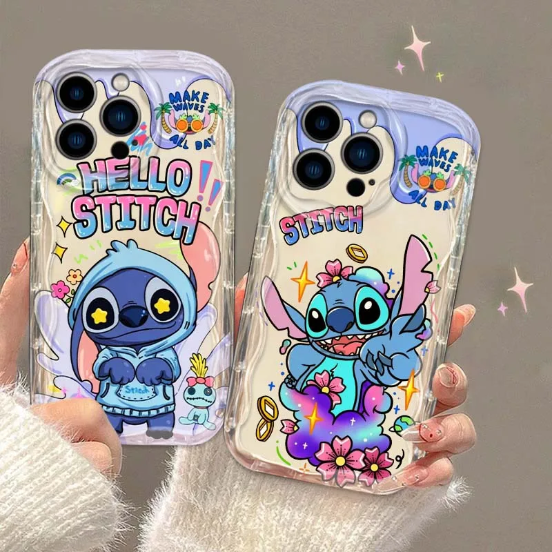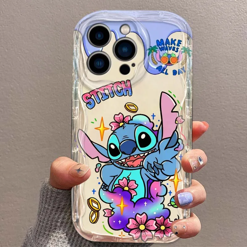 Comprar Funda bonita de Anime Stitch para iPhone XR 16 15 14 13 12 11 Pro Plus Max Mini Wave Oil funda de teléfono