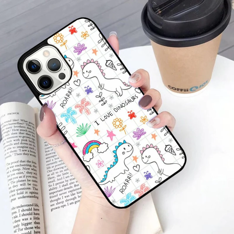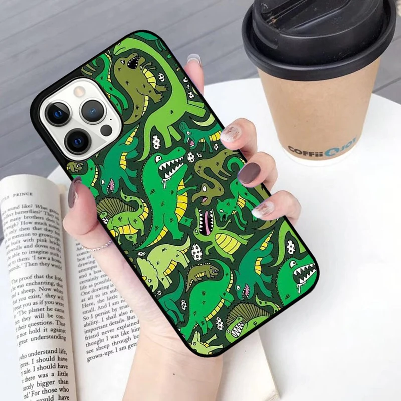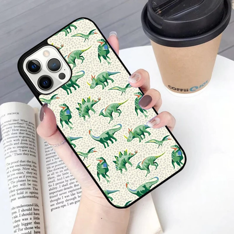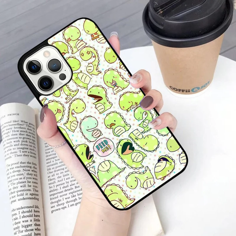 Funda bonita de dinosaurio pequeño de dibujos animados para iPhone 17 Air 15 16e 13 12 11 14 Pro Max Plus funda de teléfono coque Shell