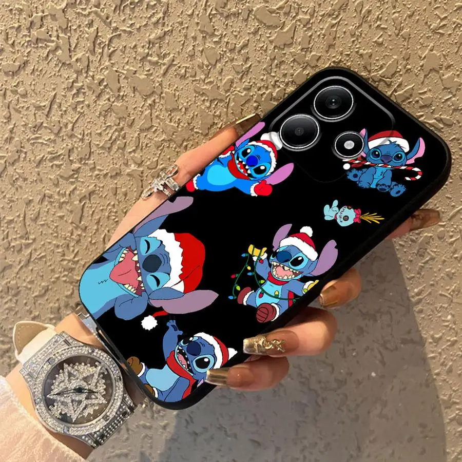 Funda bonita de Navidad Stitch para Xiaomi Redmi Note 9 10 11 12 Pro 12s 13 14 Pro Plus 7 8 9S 11s 10S funda de teléfono suave negra - imagen 1
