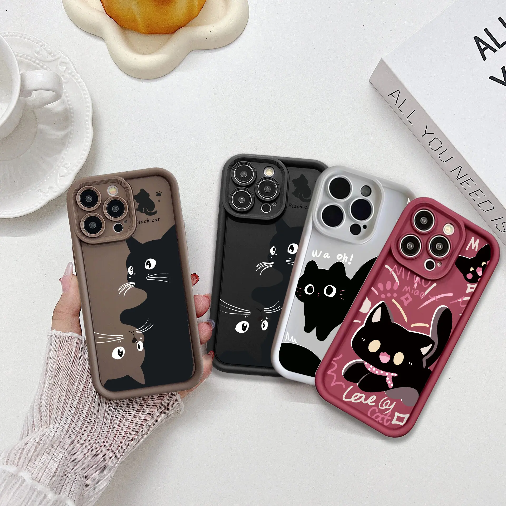 Comprar Funda bonita de pequeño gato negro para Honor 200 Magic 6 Pro 90 10 Lite Huawei P40 Lite Nova 11 5t Y90 Y61 funda de silicona suave para cámara P