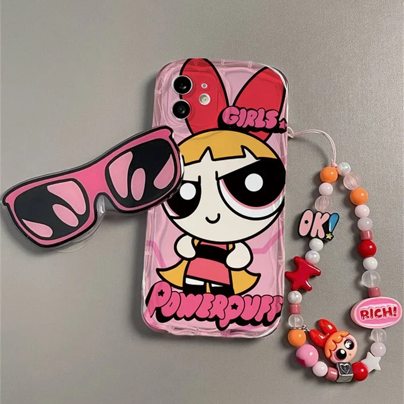 Comprar Funda bonita con pulsera Powerpuff para Samsung Galaxy S25 Ultra S24 FE S23 S22 Plus A56 5G A55 A15 A16 A36 A54 A34 A53 A35 A14