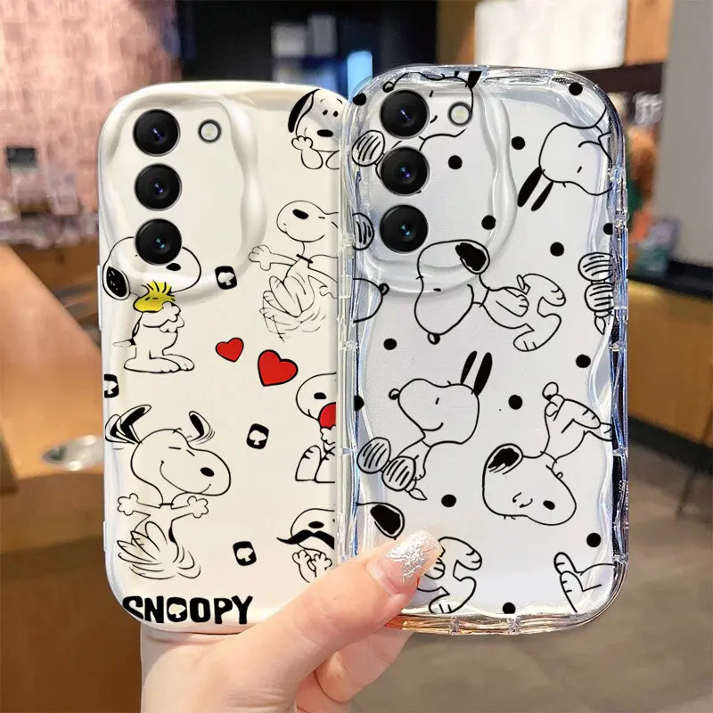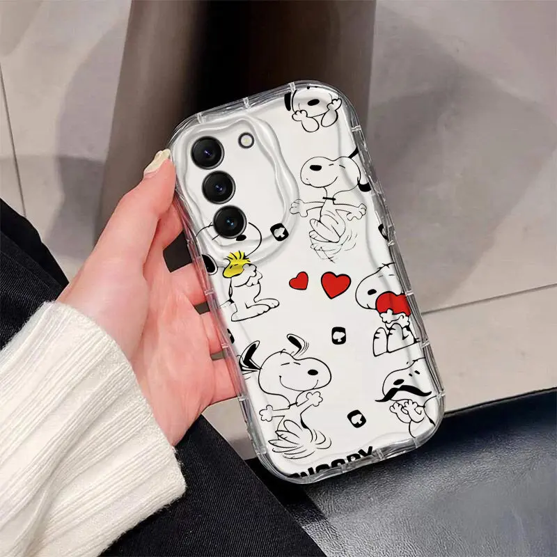 Funda bonita de Snoopy Clear Wave para Samsung Galaxy S25 Ultra S24 S21 S20 FE S23 S22 Plus A55 5G A15 A54 A34 A53 A35 A14 A32