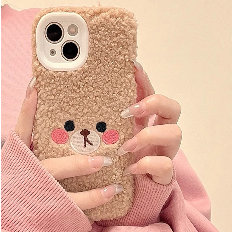 Comprar Funda bonita y esponjosa de oso para iPhone 14, funda suave a prueba de golpes para iPhone 14 Pro Max 12 13 11PROMAX