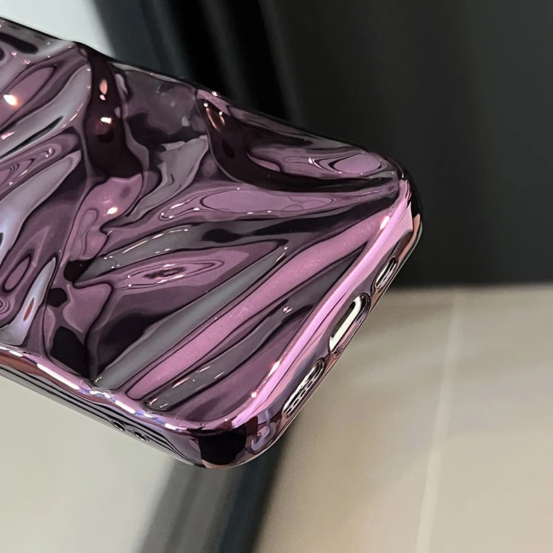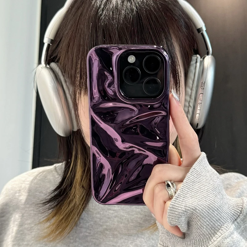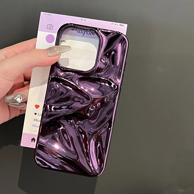 Funda brillante con textura plegable de meteorito púrpura chapada para iPhone 16 Pro Max 15 13 12 11 14 Plus, funda suave a prueba de golpes para teléfono