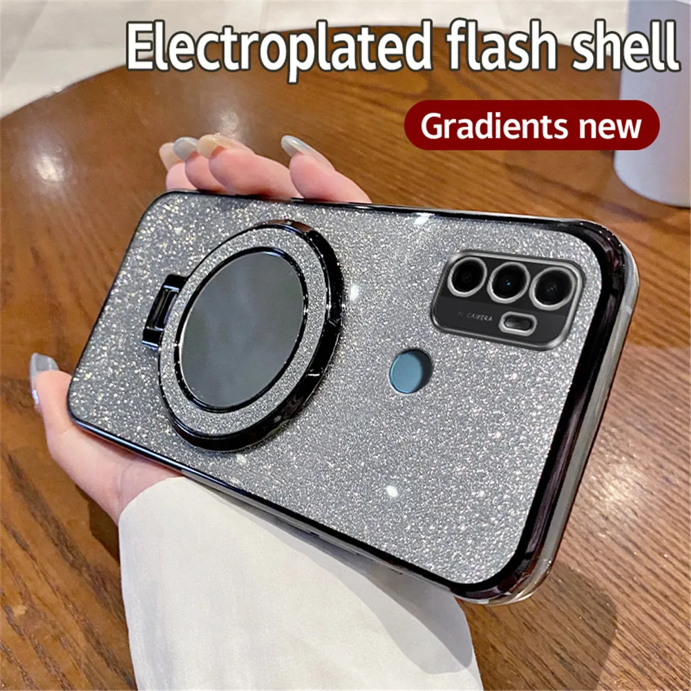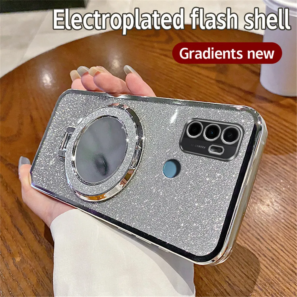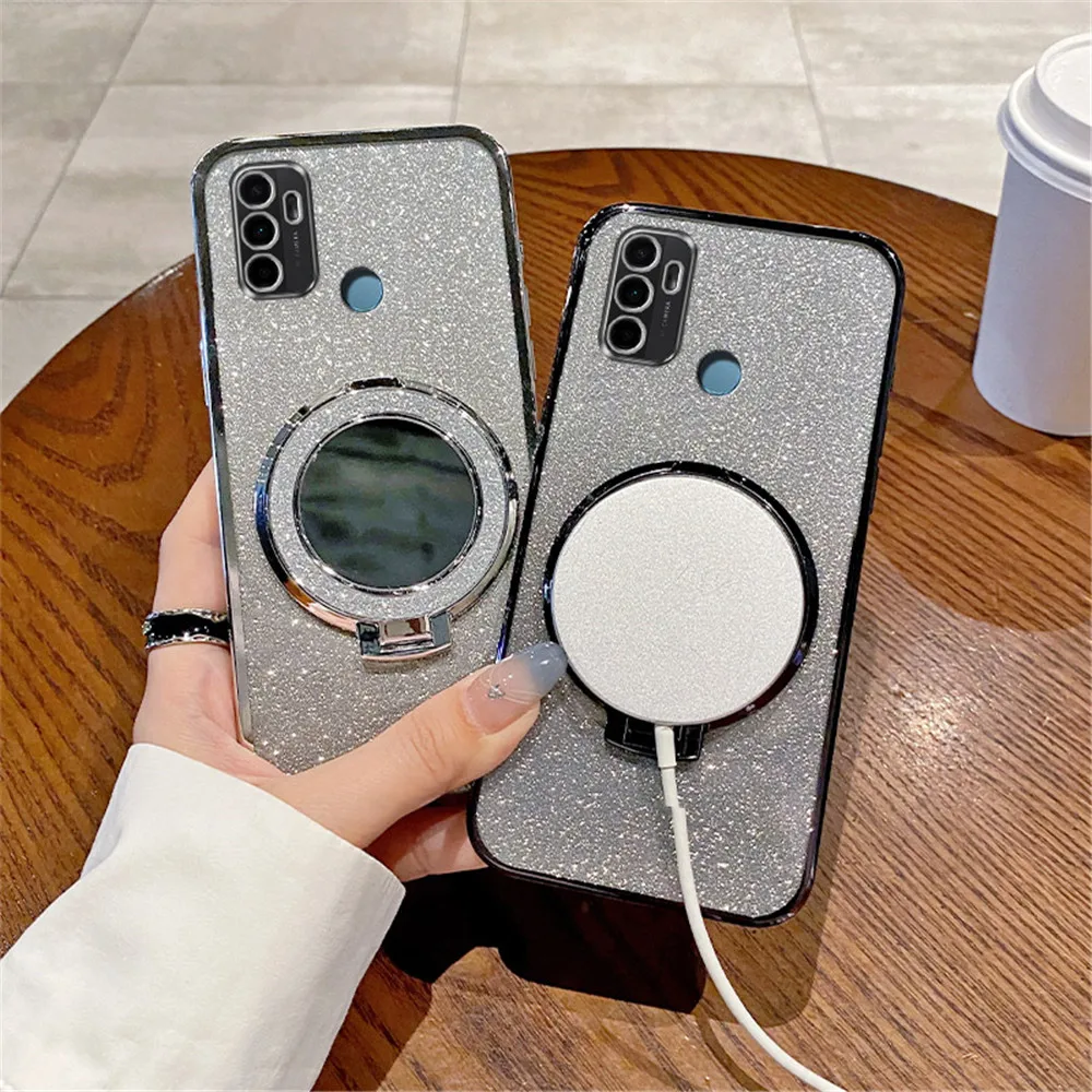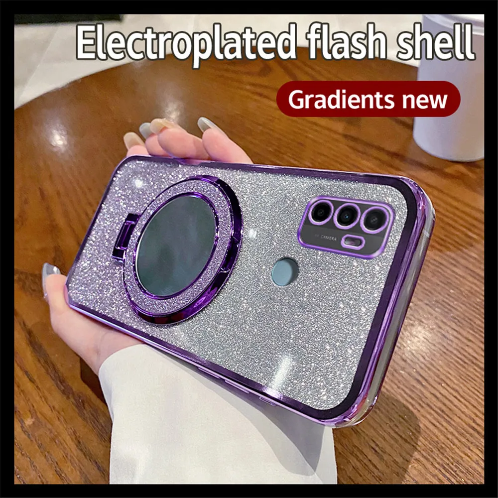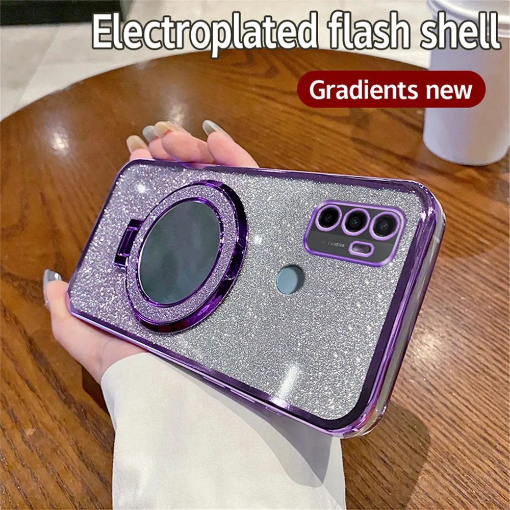 Mirror Luxury Plating Magnetic Stand Glitter Case For OPPO A16 A16S A17 A54S A53S 4G A91 A5 A8 A9 A31 A33 A53 2020 Soft Cover