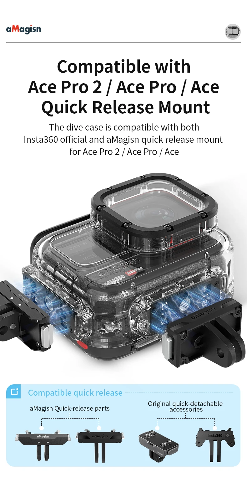 es compatible con el diseño de la serie Insta360 Ace Pro, admite Insta360 Ace/ACE Pro/Pro 2 y otros modelos, para satisfacer las necesidades de disparo en múltiples escenas.