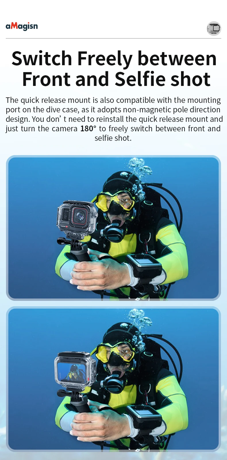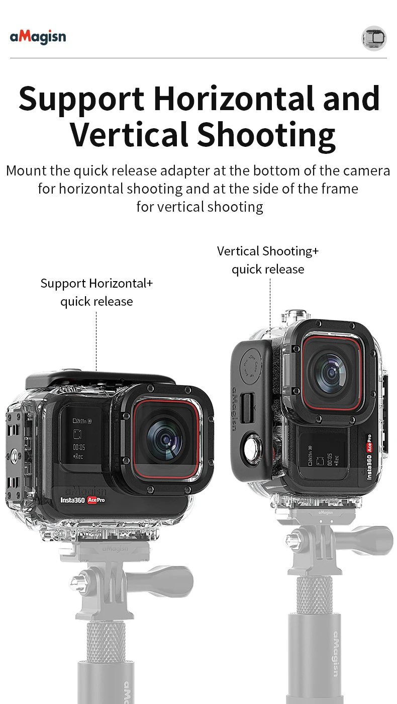 Diseño magnético de liberación rápida no polar, soporte de montaje inferior o lateral, 180° rotación de la cámara en segundos para cortar el modo de temporizador automático, sin necesidad de desmontarla repetidamente.