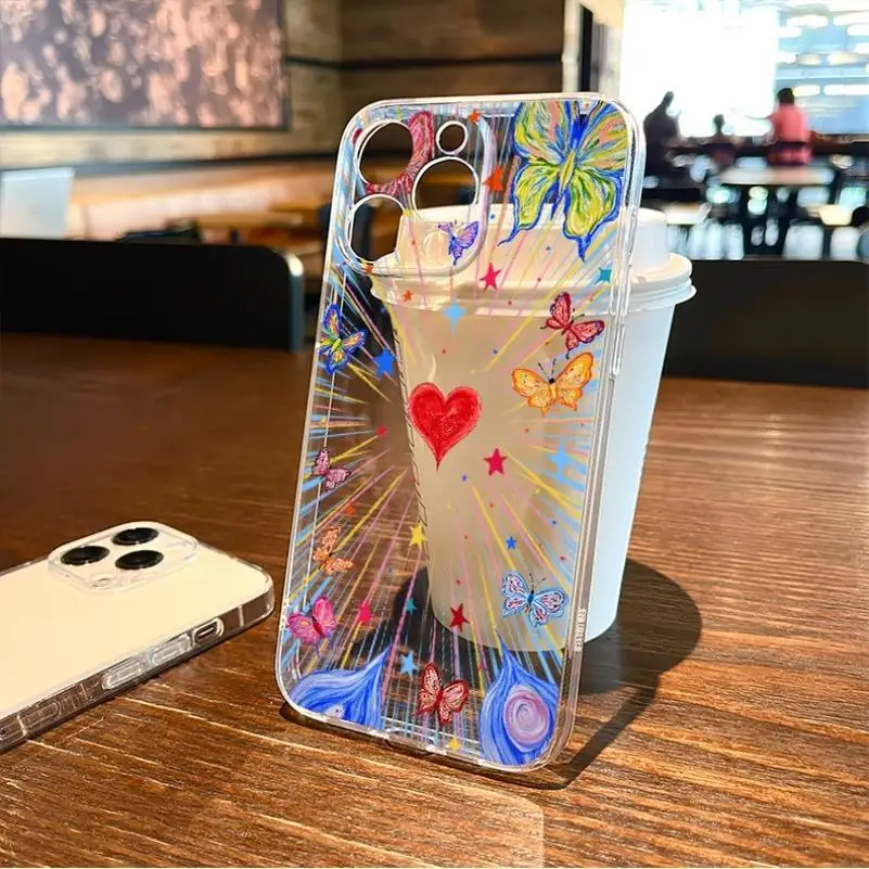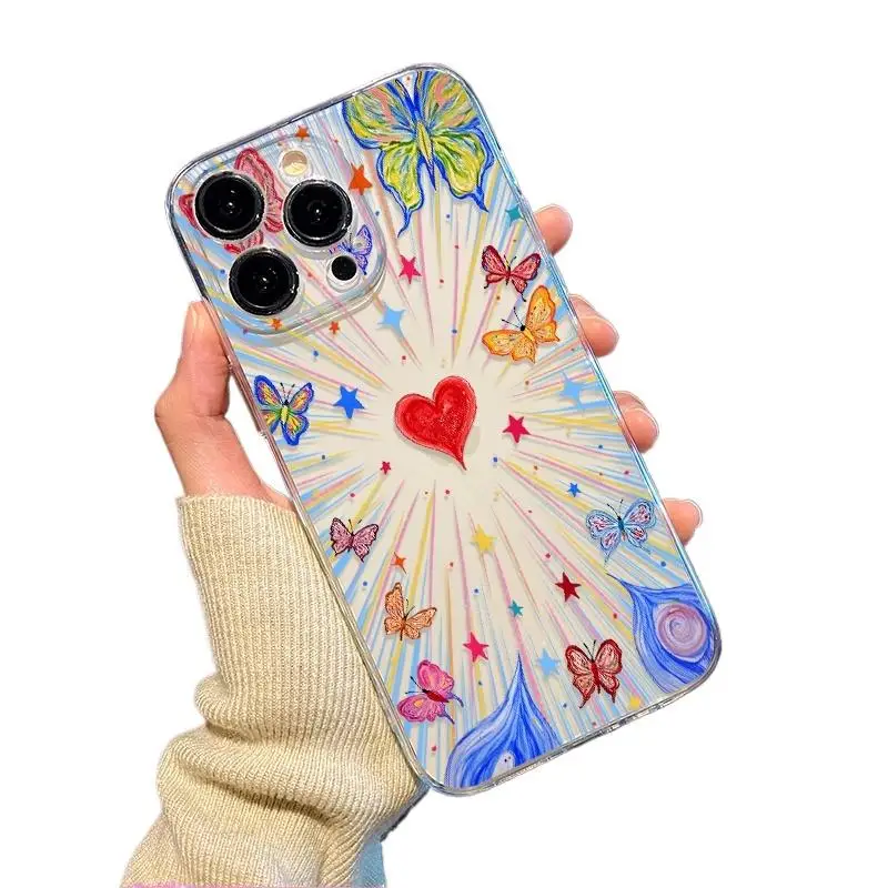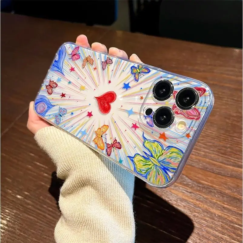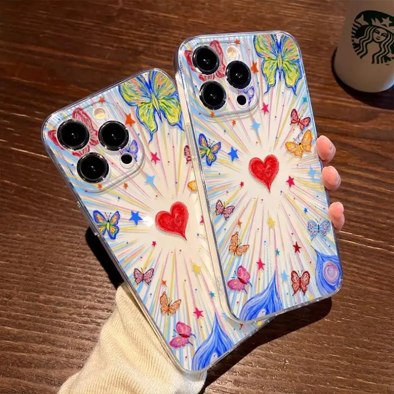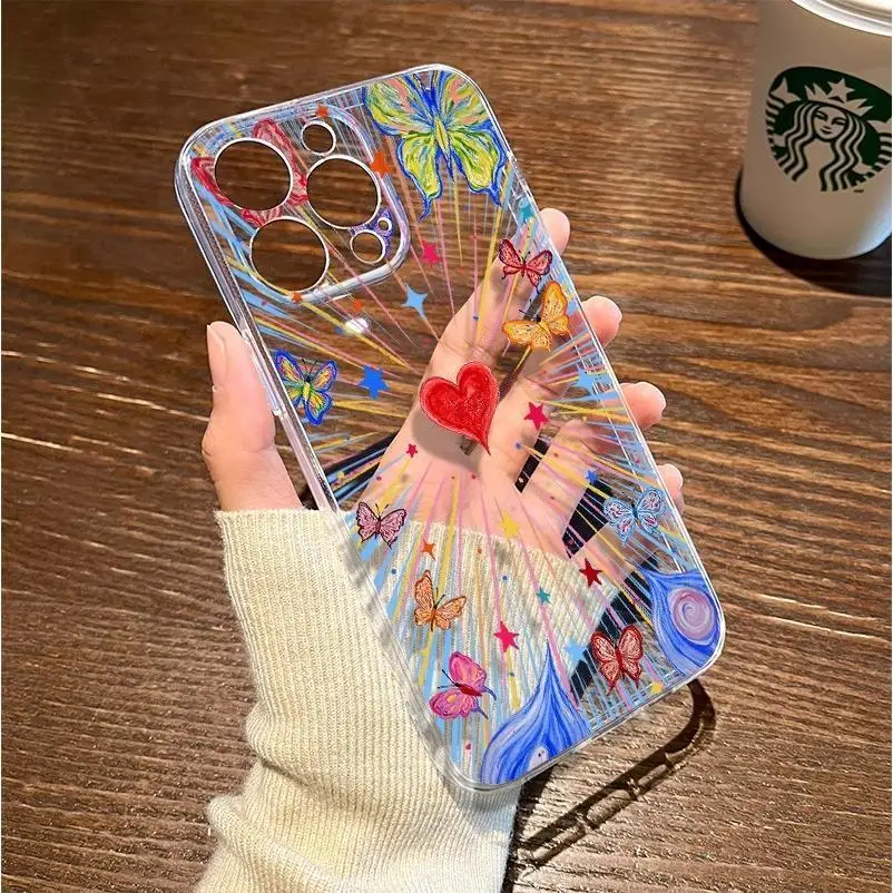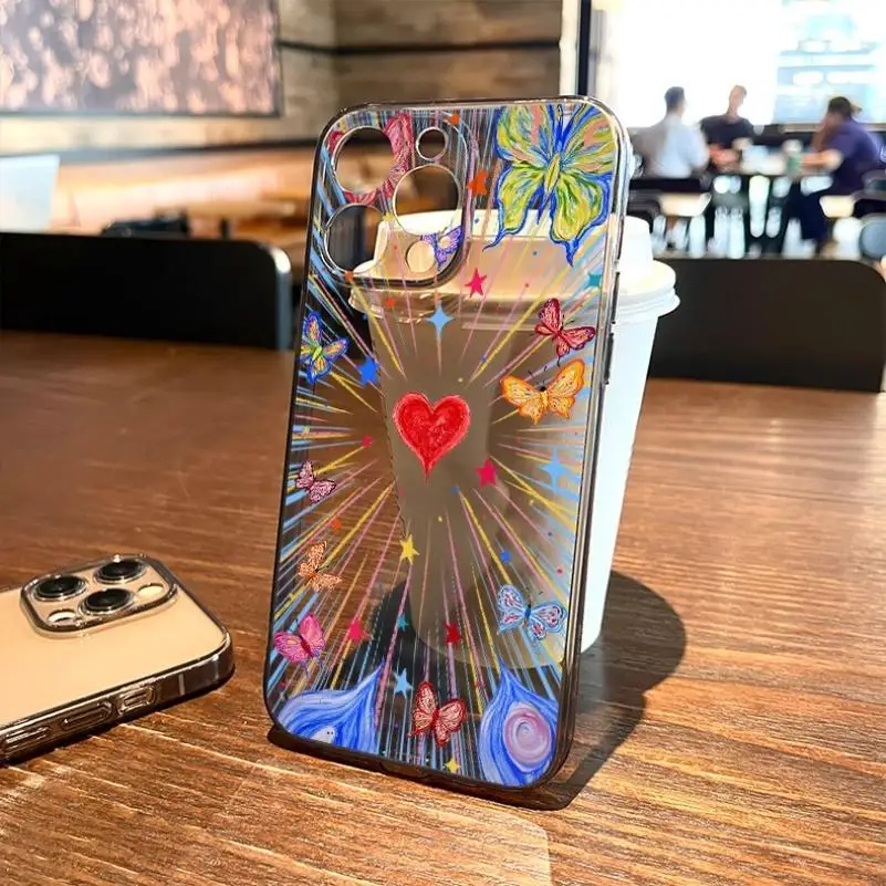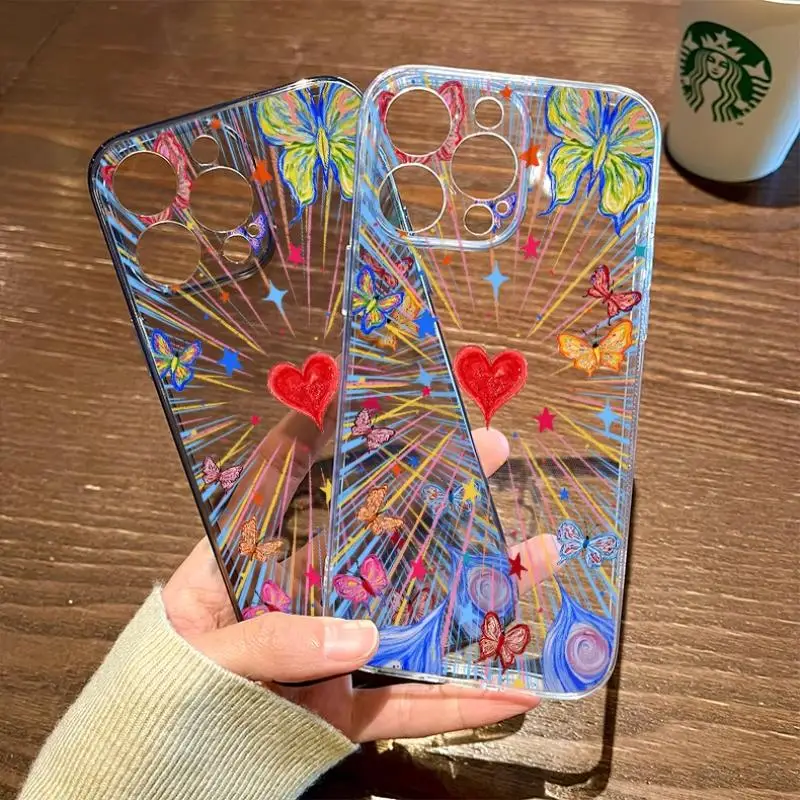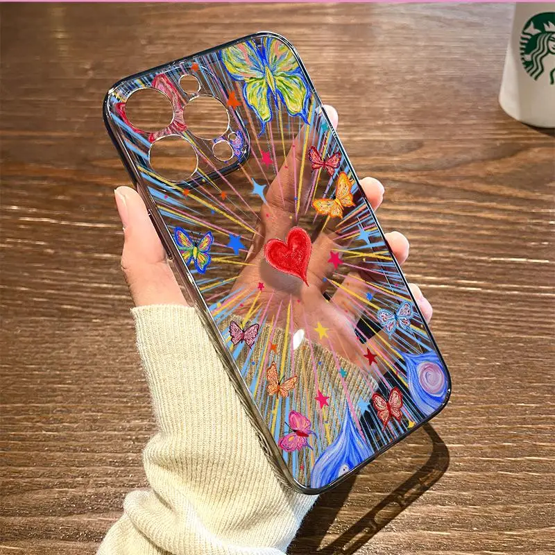 Comprar Funda Butterfly Love para iPhone 16 Pro 15 14 Plus 13 12 11 Pro Max XS XR carcasa protectora de pantalla a prueba de golpes
