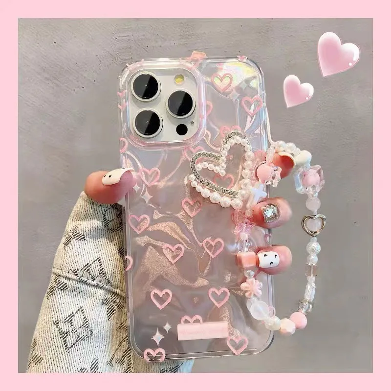 Comprar Funda con cadena 3D de corazón de amor para Vivo V50E V50 V40 V30 Lite V27E Y19S Pro Y29T Y19 Y18S Y19E Y04 Y29S Y29 Y35 Y51 Y31 Y33 Y38