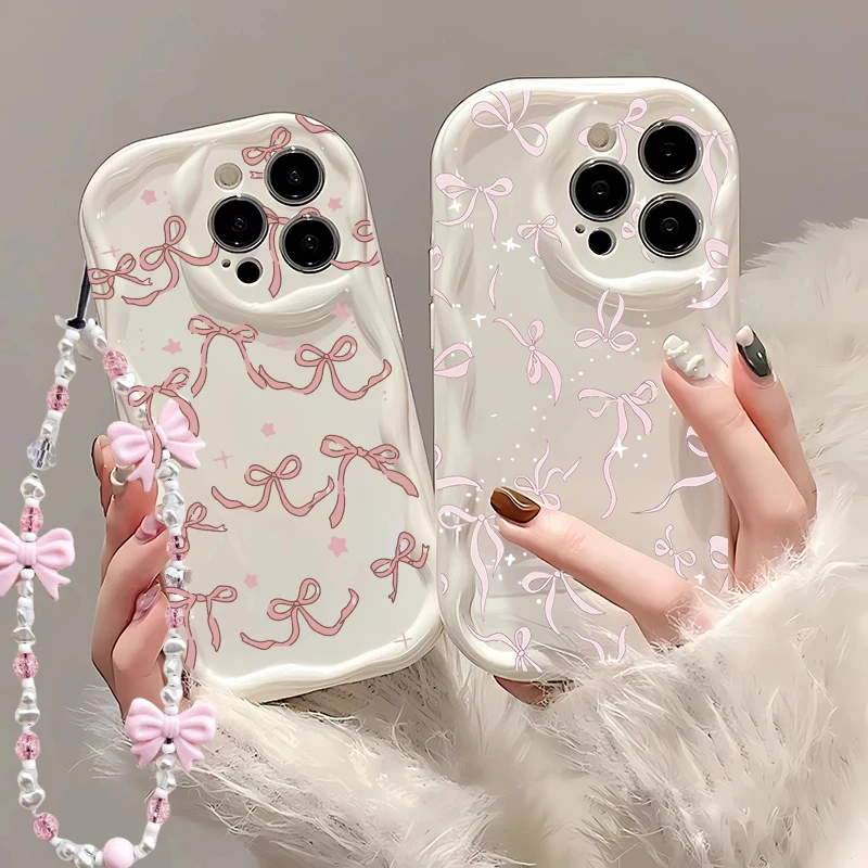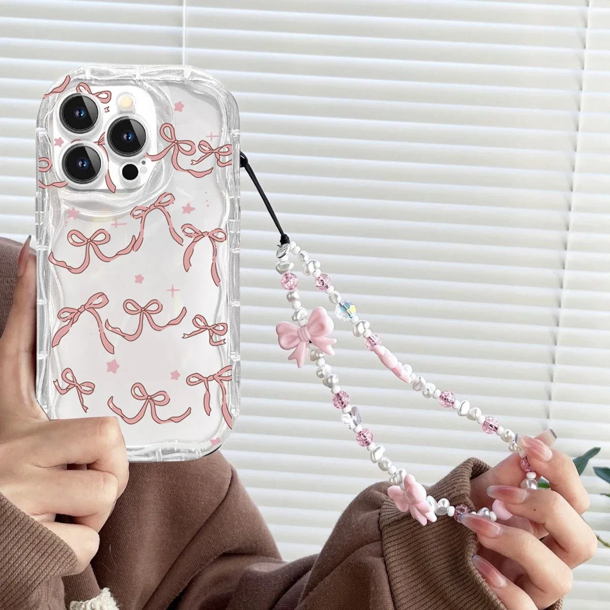 Funda de cadena para muñeca con lazo de estrella bonita de Corea para Realme C53 C55 C67 C63 C65 C35 C33 C21Y C25Y C51 8 10 13 12 14 15 Pro Plus 5G Note 60
