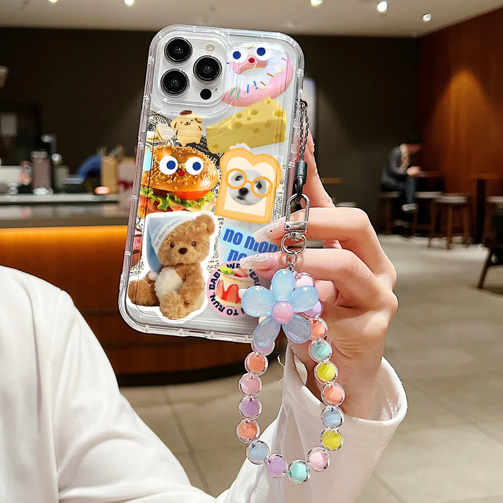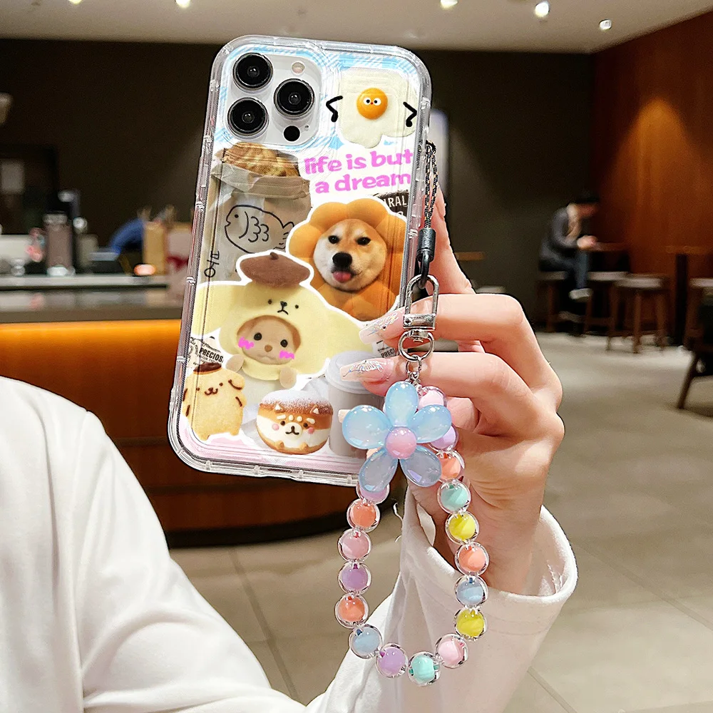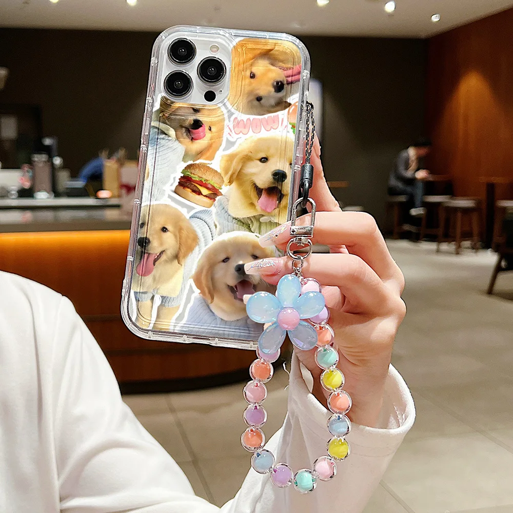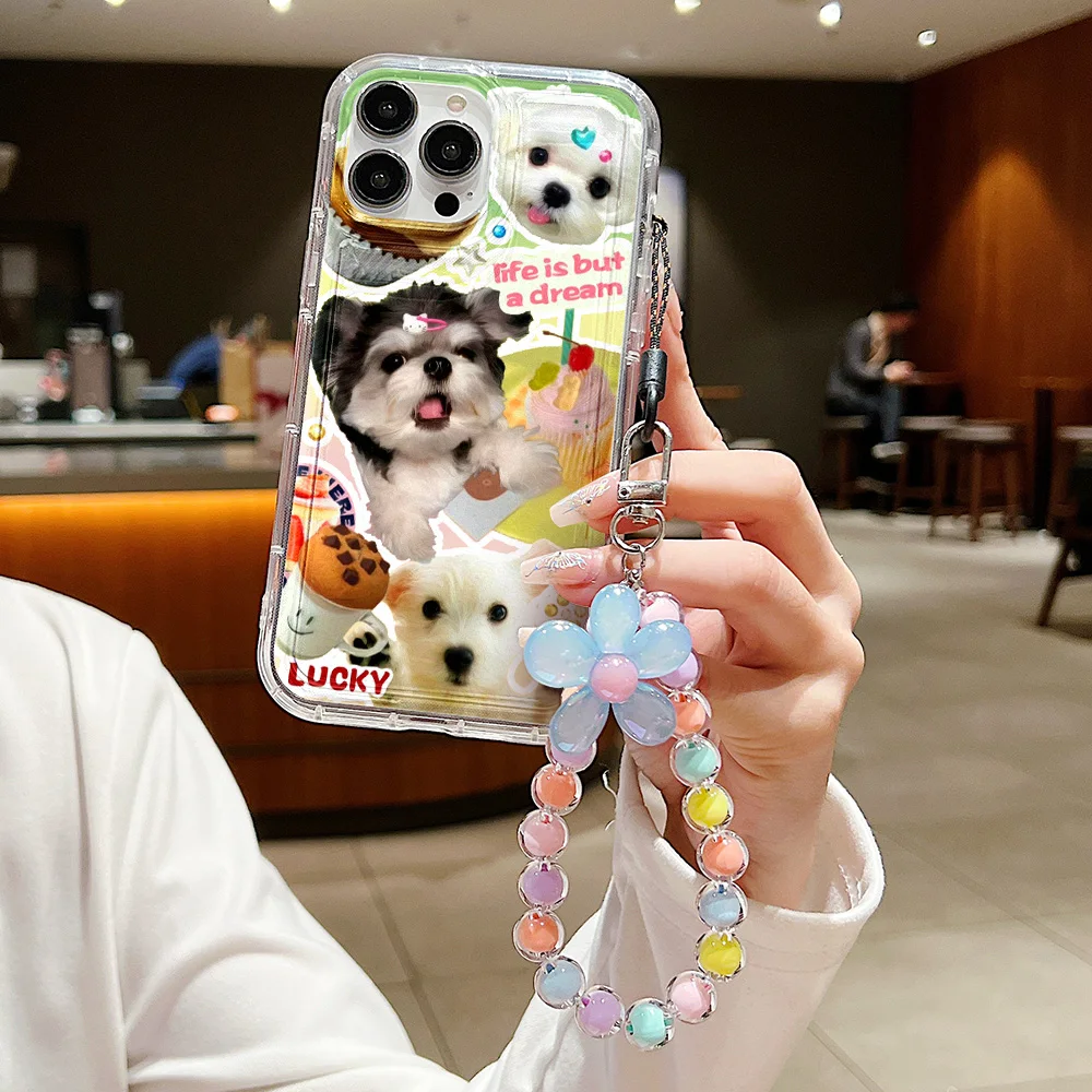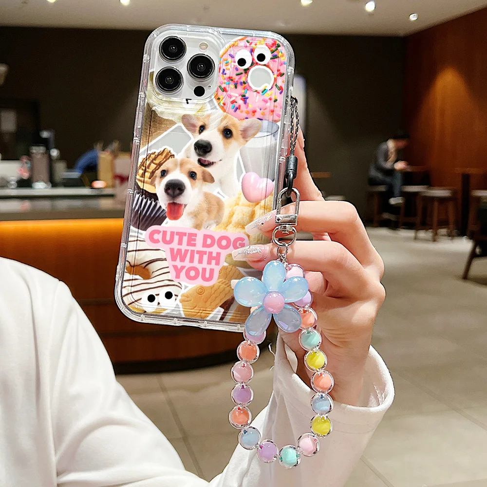 Lindo gato perro colgar teléfono cadena caso para iPhone 14 caso iPhone 13 12 Mini 11 15 Pro Max XR XS Max X 6 7 8 Plus SE cubierta suave transparente
