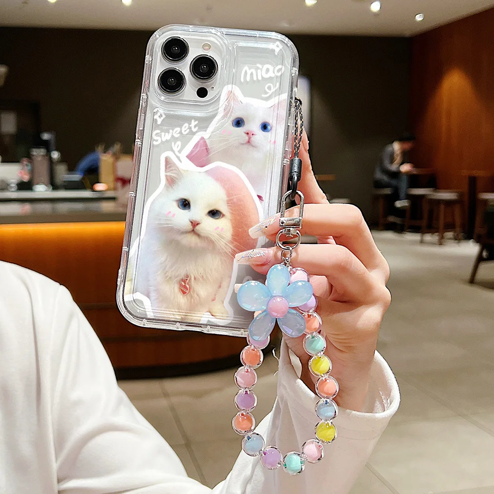 Lindo gato perro colgar teléfono cadena caso para iPhone 14 caso iPhone 13 12 Mini 11 15 Pro Max XR XS Max X 6 7 8 Plus SE cubierta suave transparente