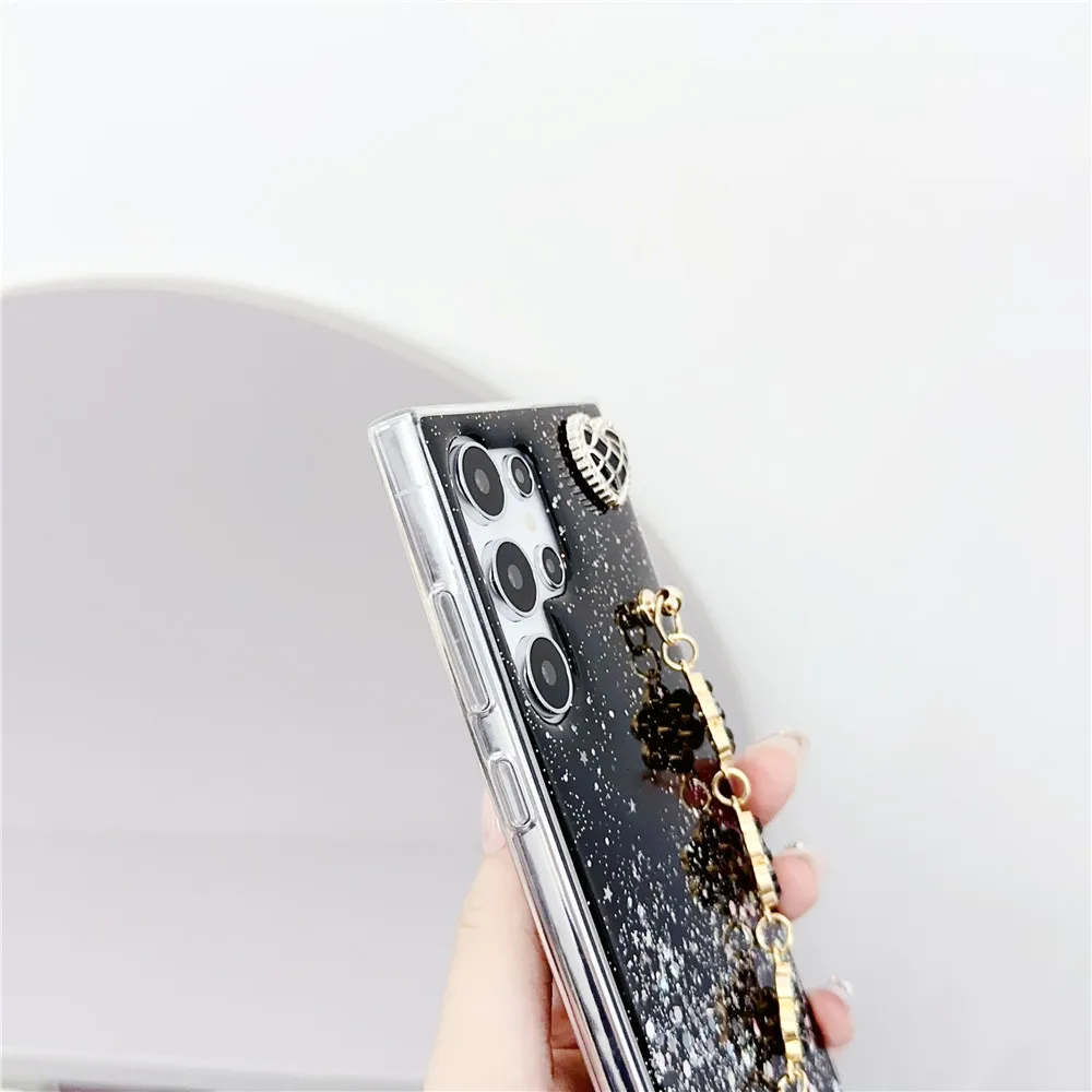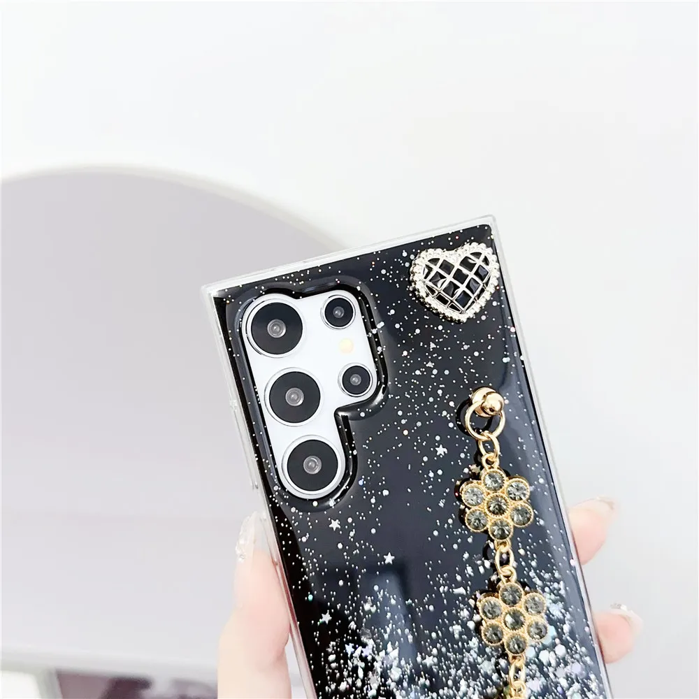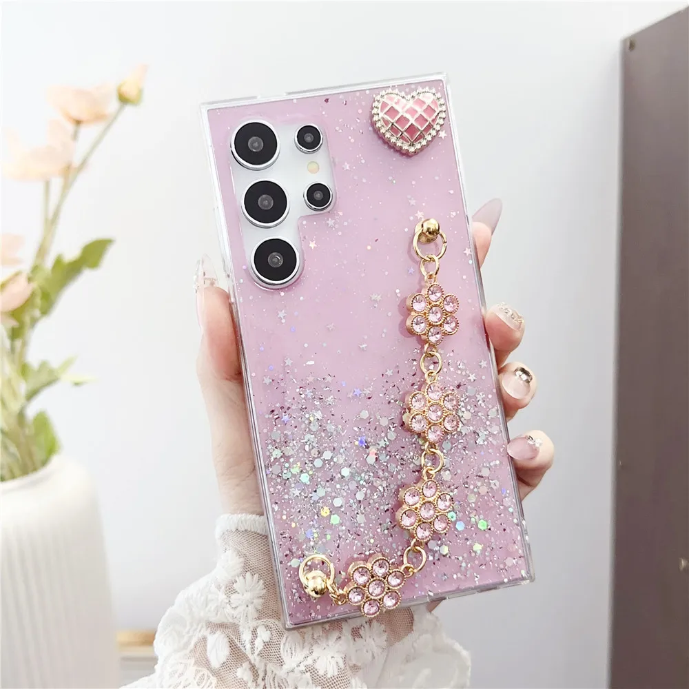 Shiny Glitter Flower Bracelet Chain Case For Xiaomi Redmi Note 13 12 11 Pro 11S 10S 10 9 9S 8 Pro 8T Soft Silicone Phone Cover
