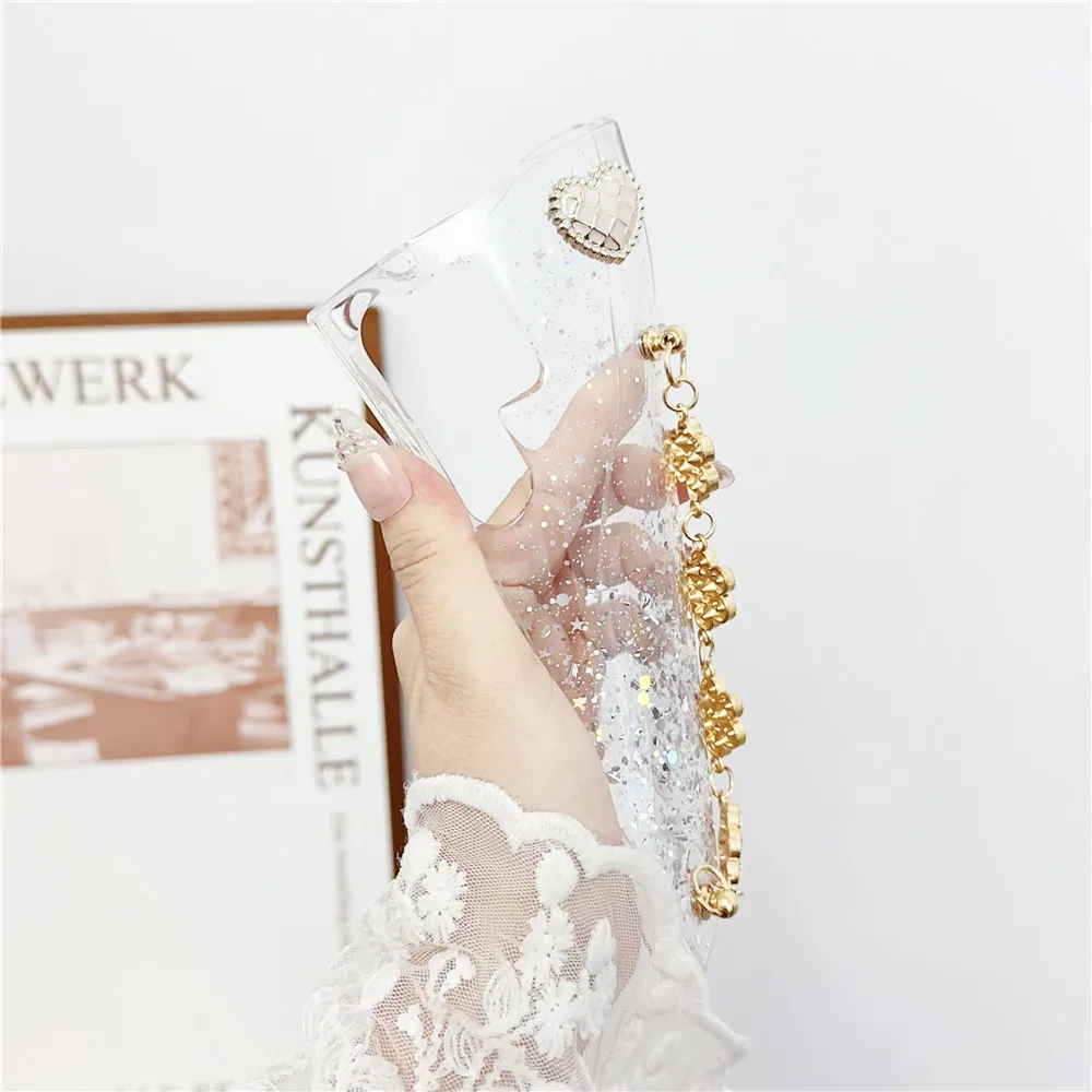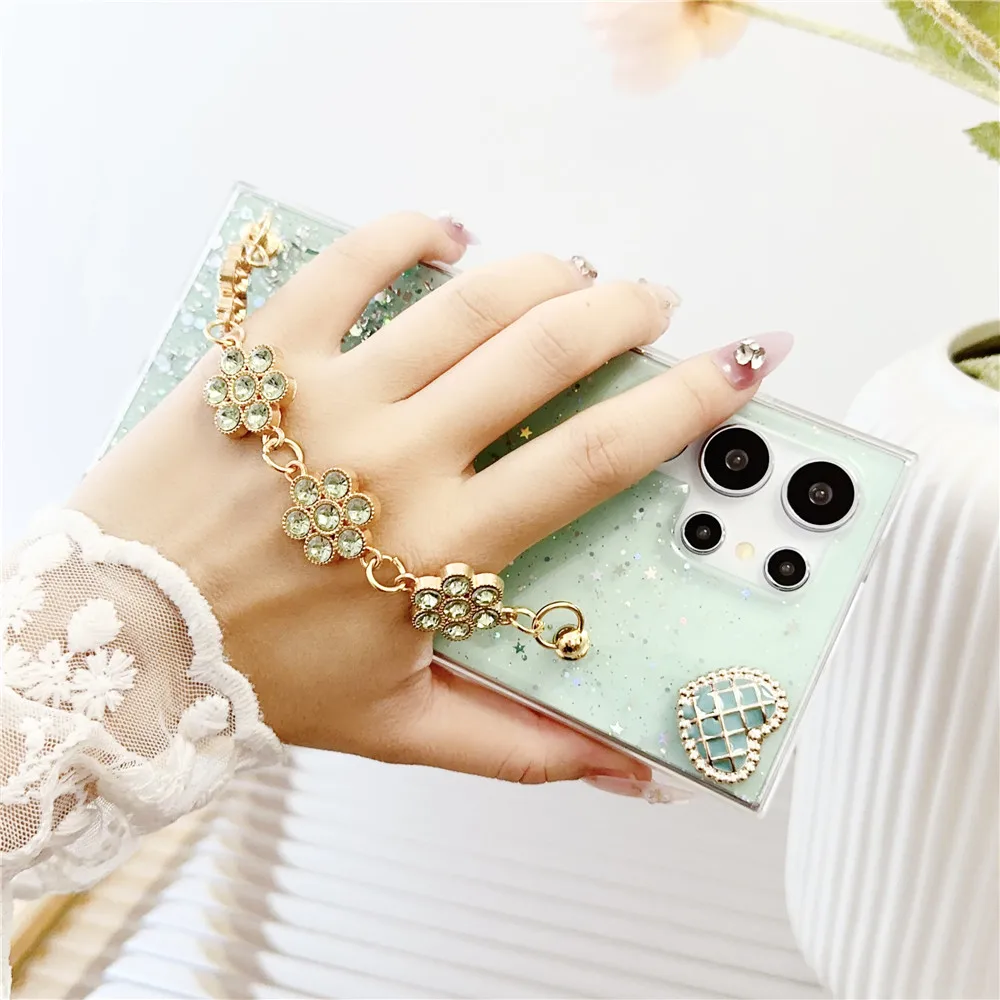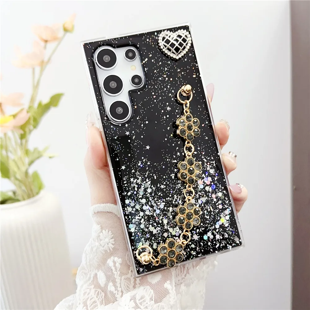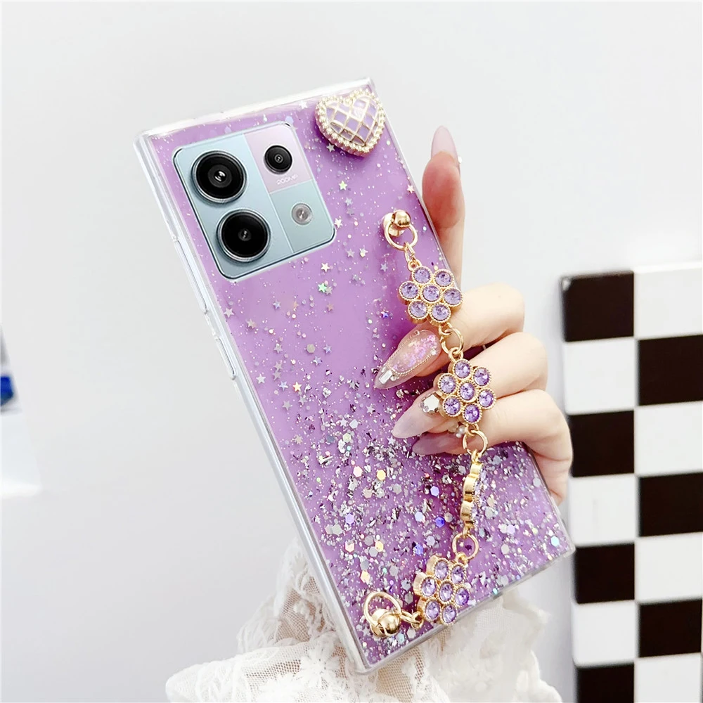 Shiny Glitter Flower Bracelet Chain Case For Xiaomi Redmi Note 13 12 11 Pro 11S 10S 10 9 9S 8 Pro 8T Soft Silicone Phone Cover