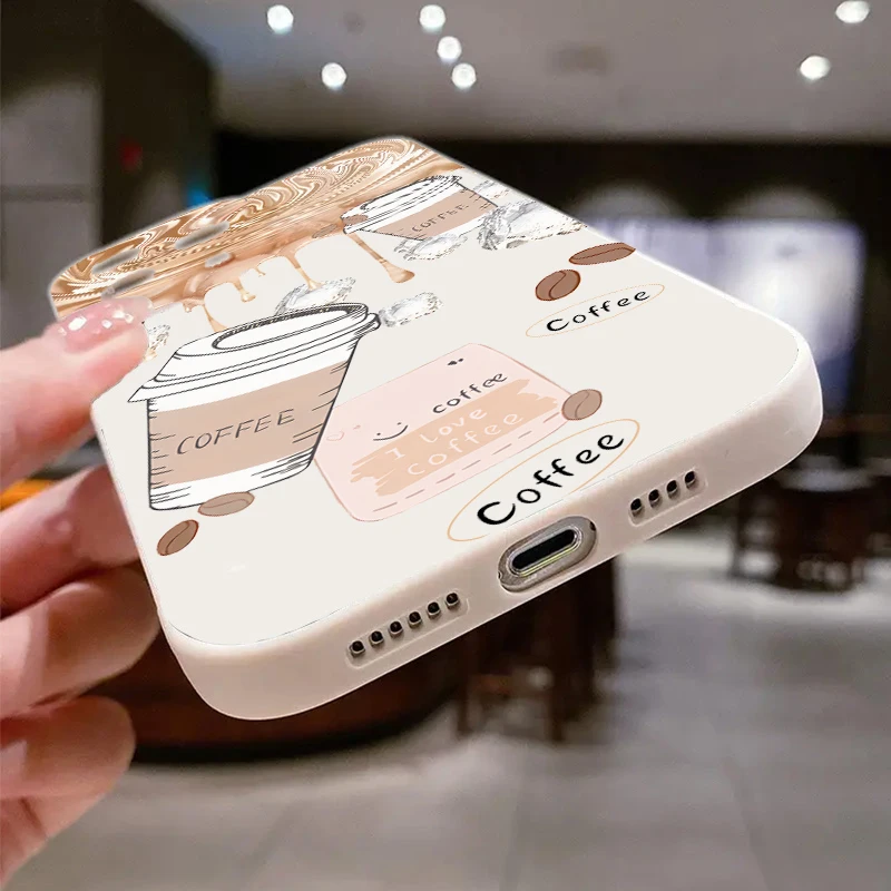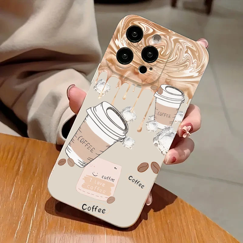 Funda de café con forma de cubo de hielo de sensación superior para iPhone 11 12 13 14 15 Pro Max XS X XR 7 8 Plus 15 cubierta de parachoques de silicona suave a prueba de golpes