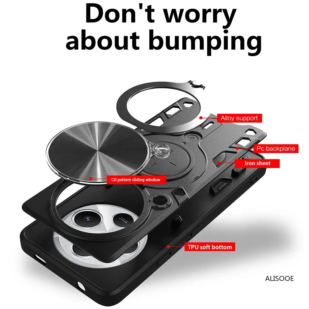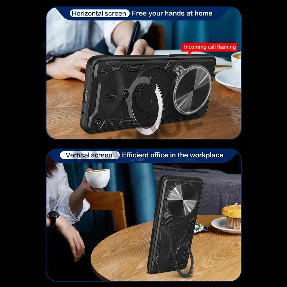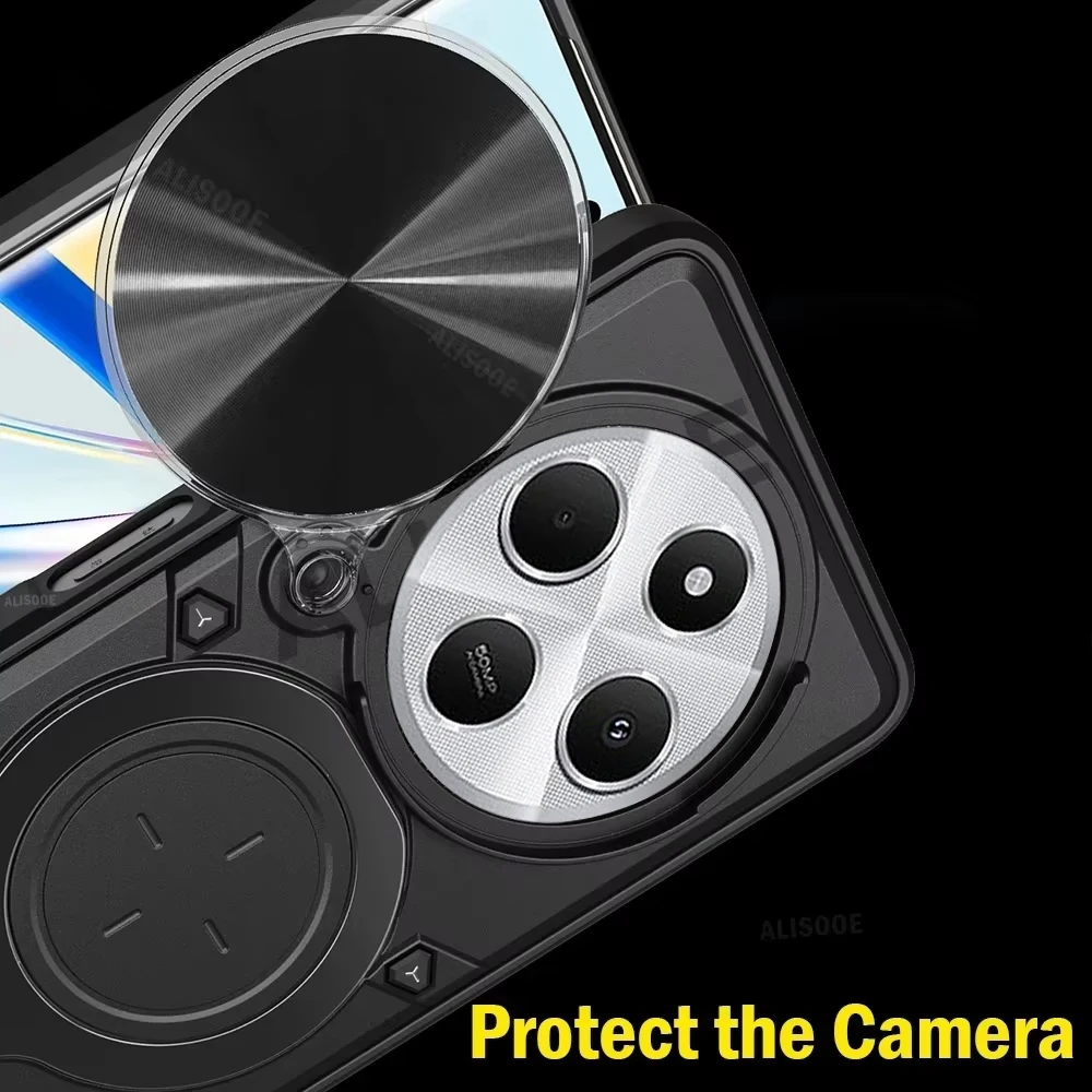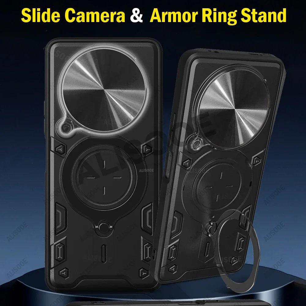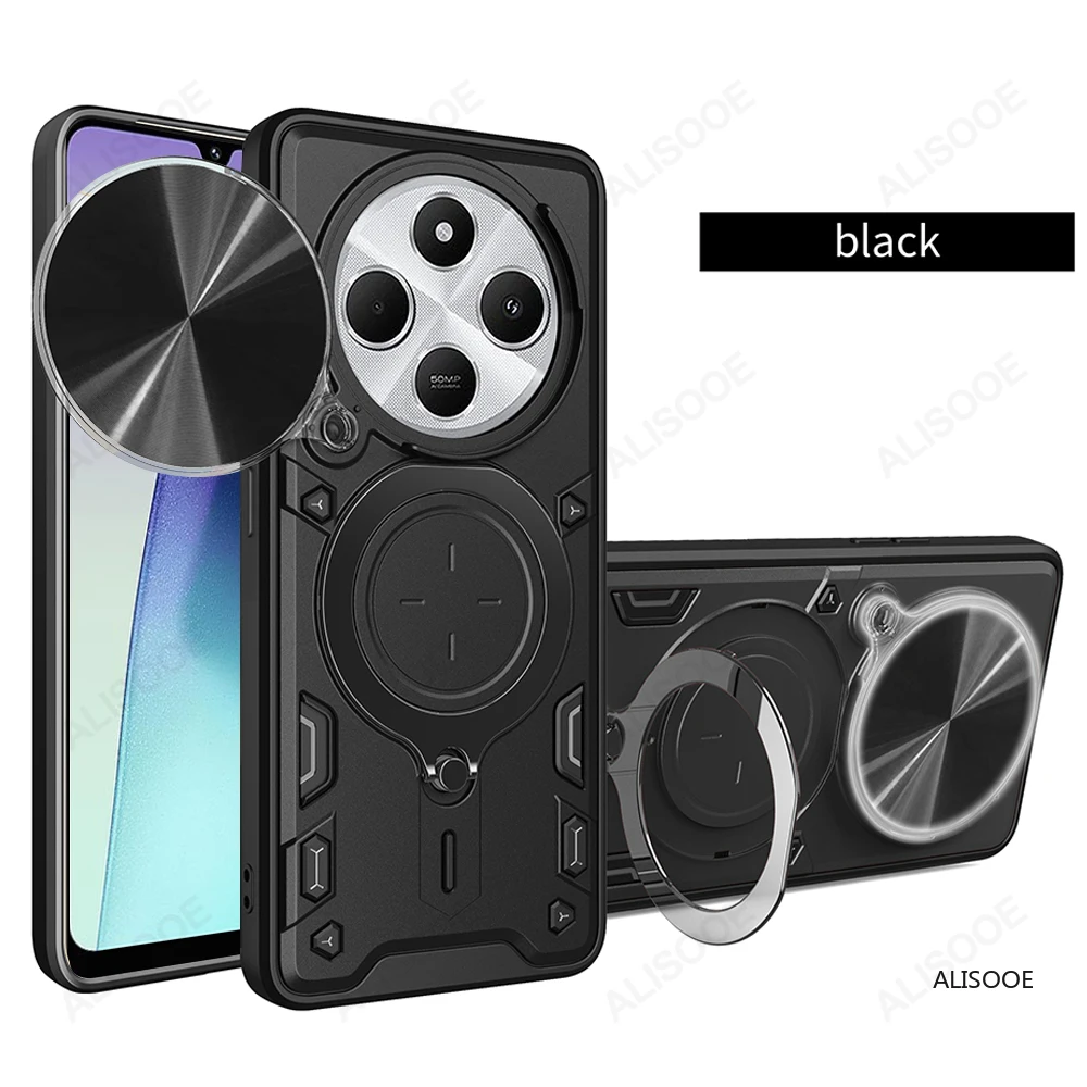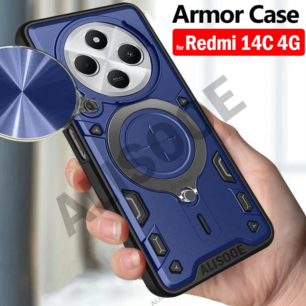 Comprar Funda de cámara deslizante para Redmi 14C 4G, carcasa de armadura, lente deslizante, soporte de anillo magnético, Funda de teléfono para Xiaomi Redmi 14C Capa