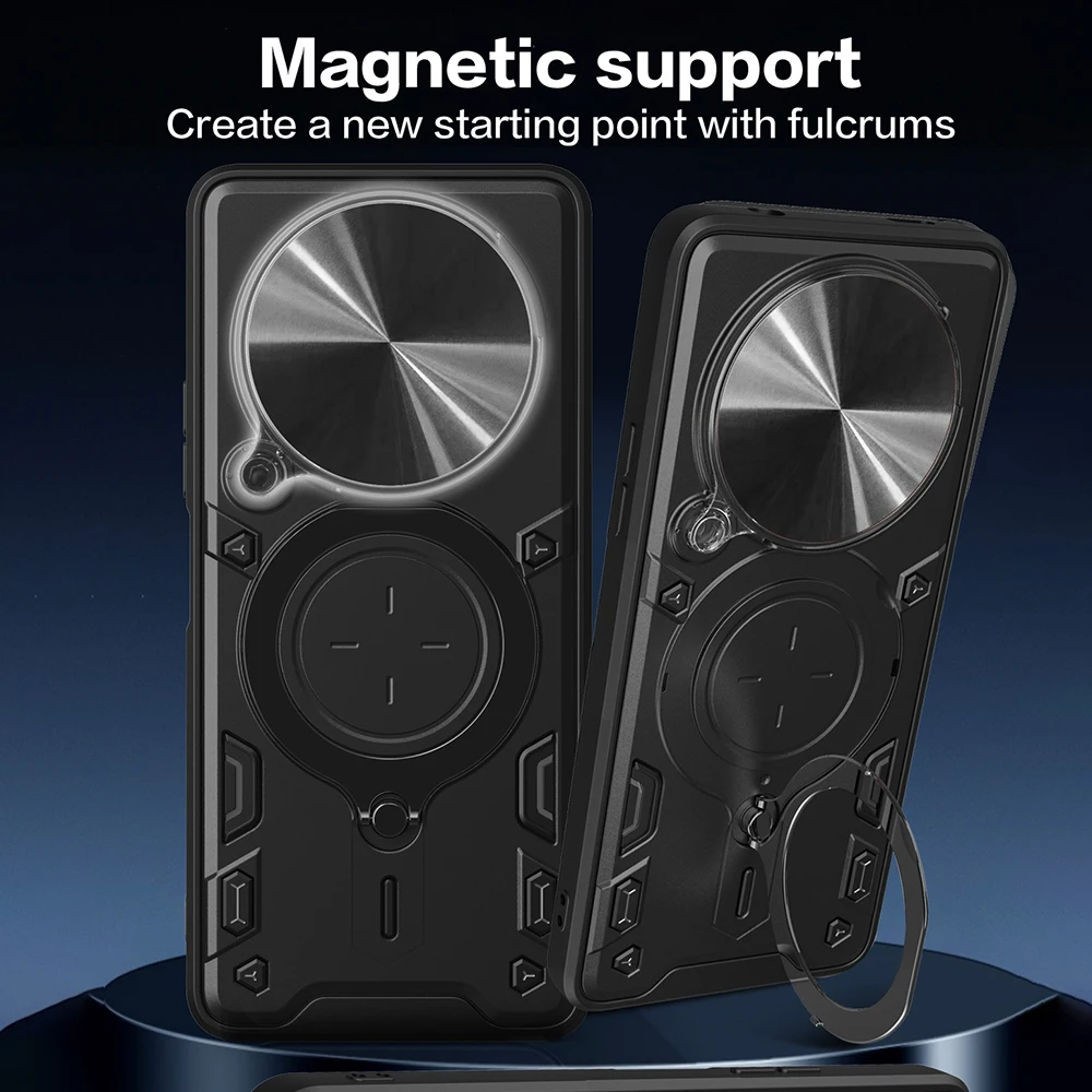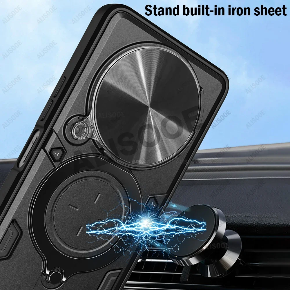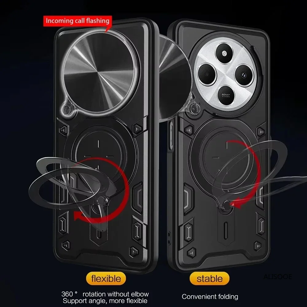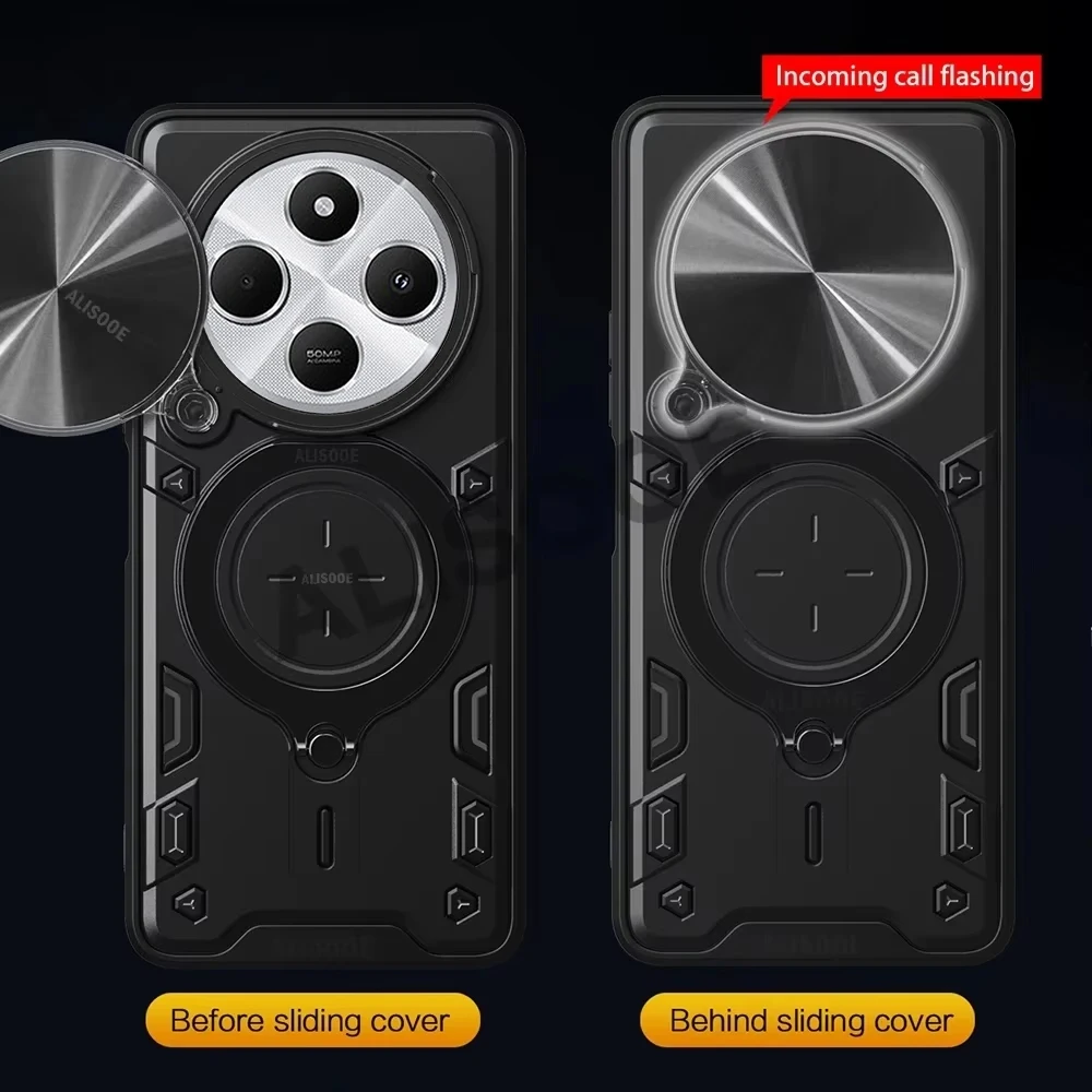 Funda de cámara deslizante para Redmi 14C 4G, carcasa de armadura, lente deslizante, soporte de anillo magnético, Funda de teléfono para Xiaomi Redmi 14C Capa