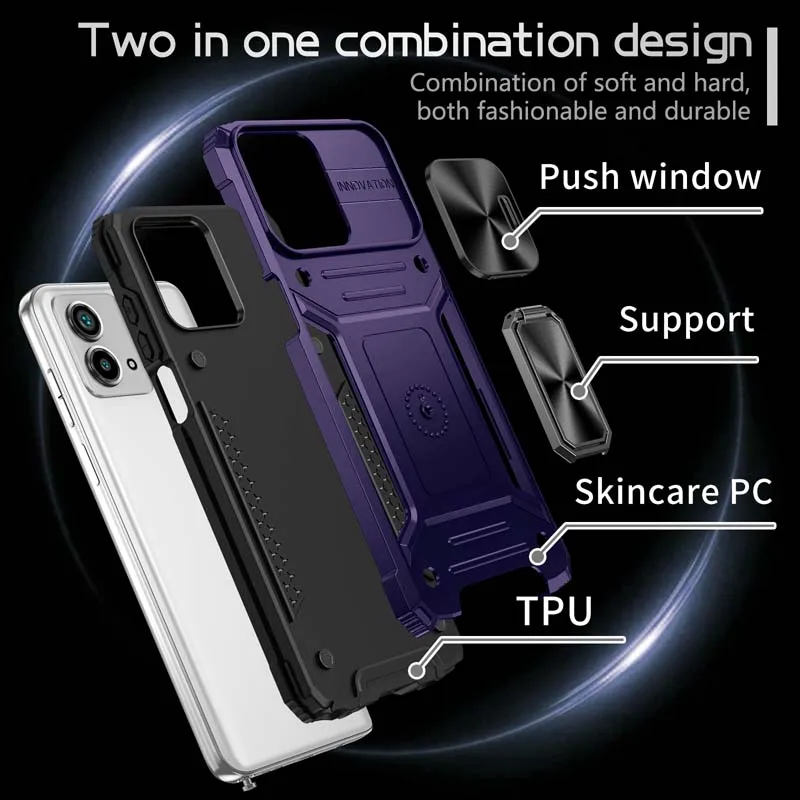 Comprar Funda de cámara con lente deslizante para Motorola Moto G13 G23 G53 G Pure Power Play Stylus 4G 5G 2022 2023, funda trasera con armadura a prueba de golpes