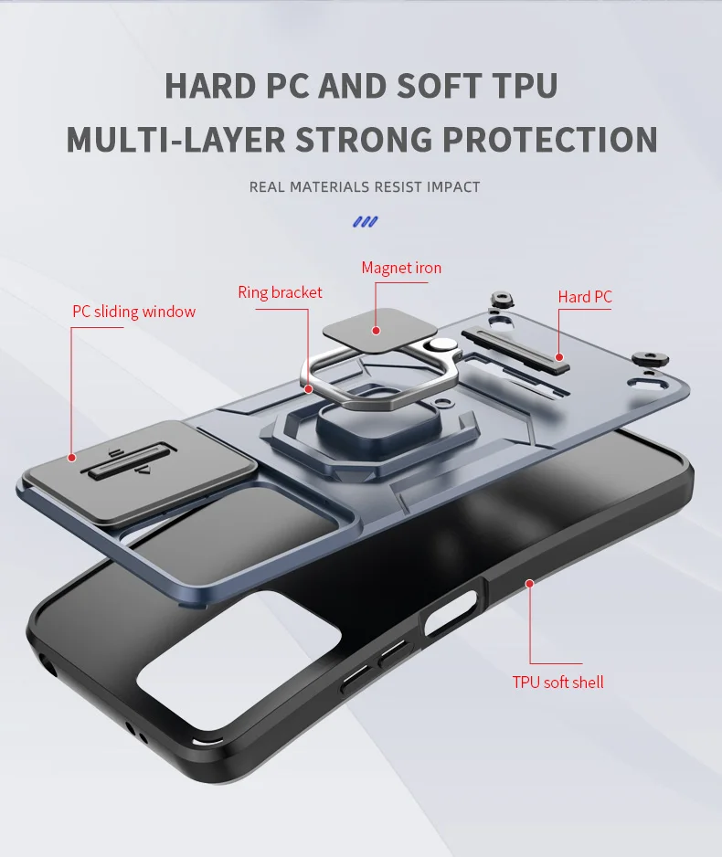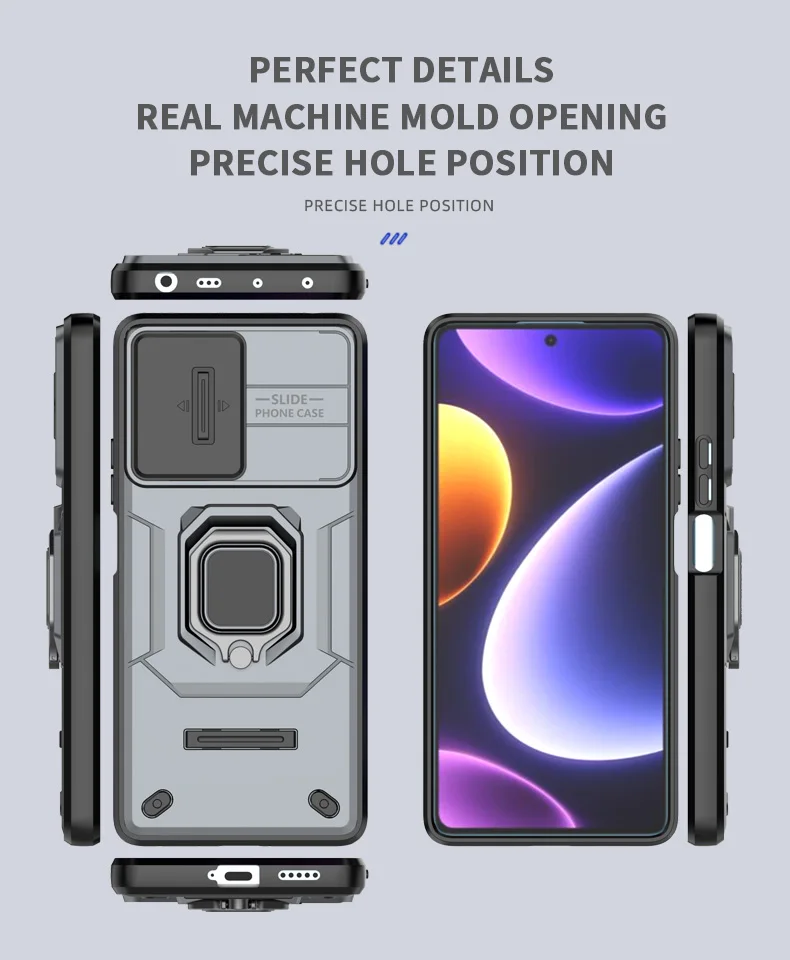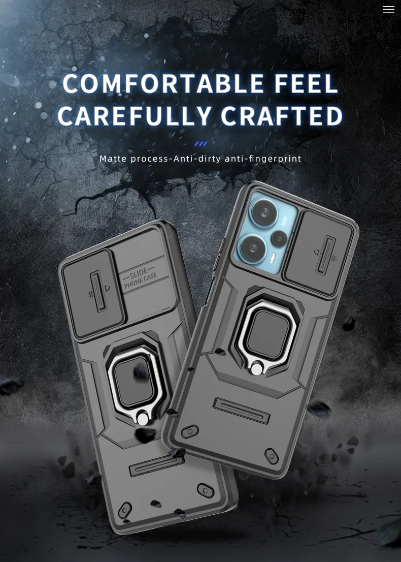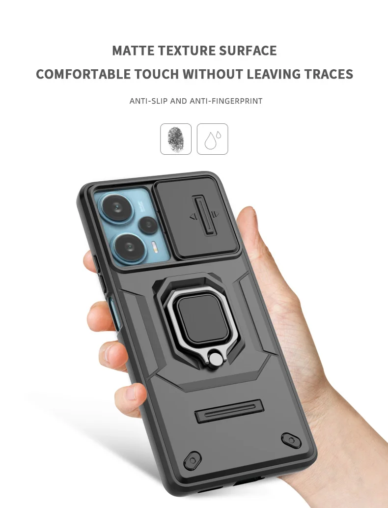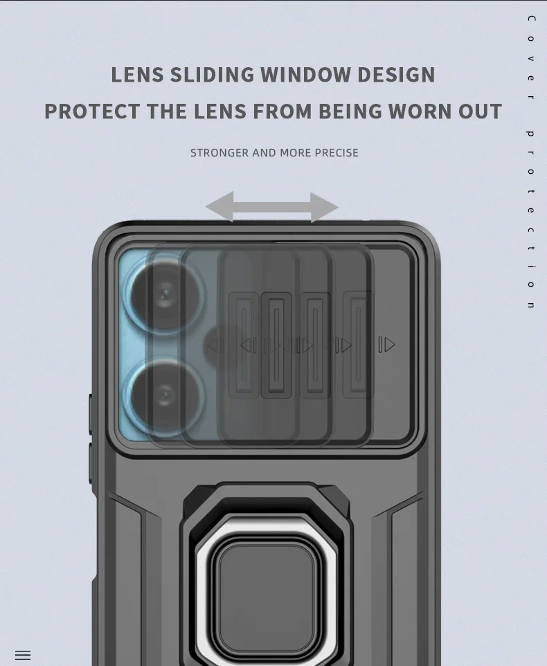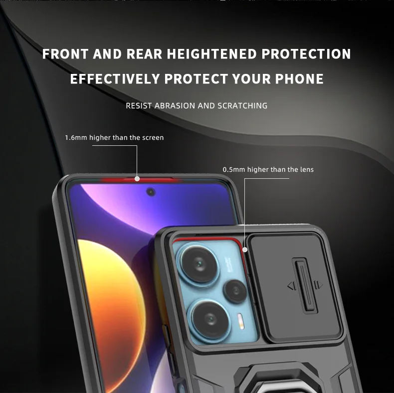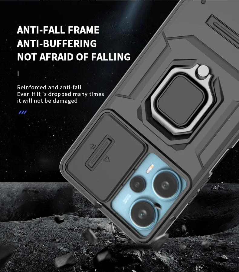 Comprar Funda de cámara con lente deslizante para Xiaomi POCO F5 X5 C65 X6 Pro Redmi Note 12 12S Mi 13T Pro Turbo Plus, carcasa trasera con armadura a prueba de golpes