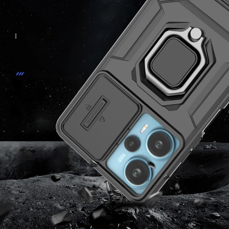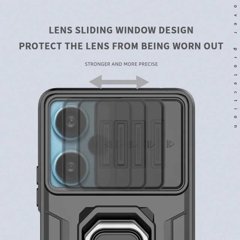 Comprar Funda de cámara con lente deslizante para Xiaomi POCO F5 X5 C65 X6 Pro Redmi Note 12 12S Mi 13T Pro Turbo Plus, carcasa trasera con armadura a prueba de golpes