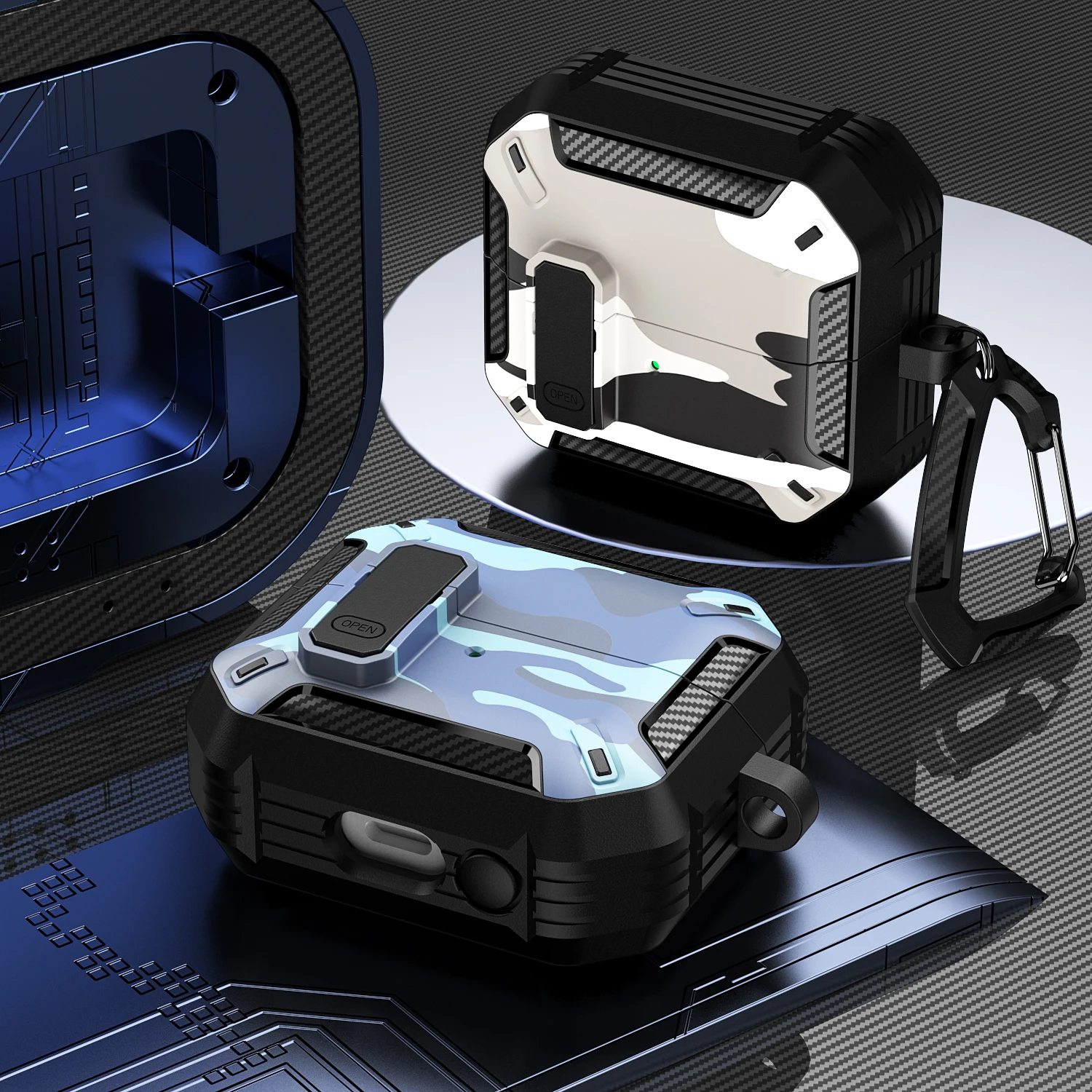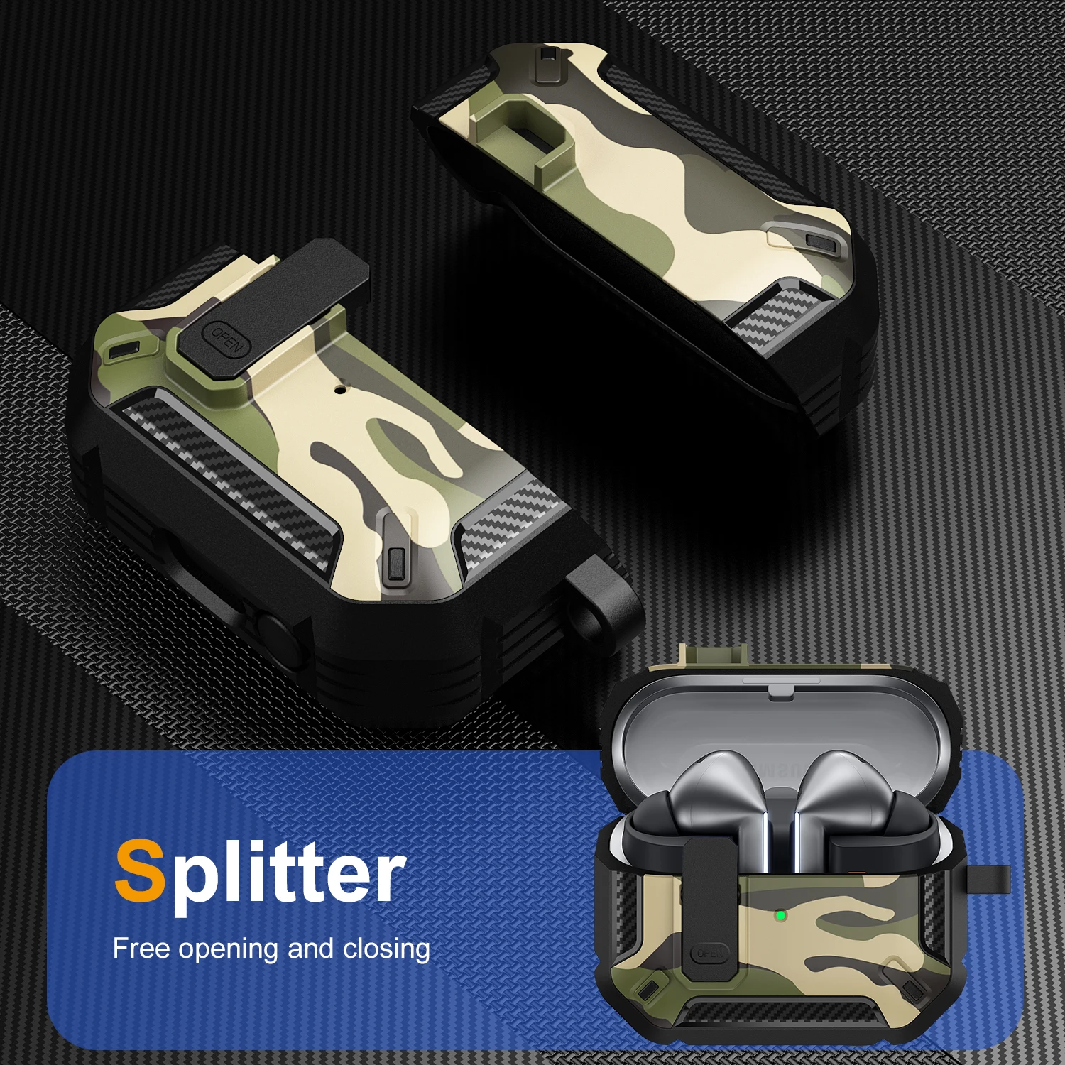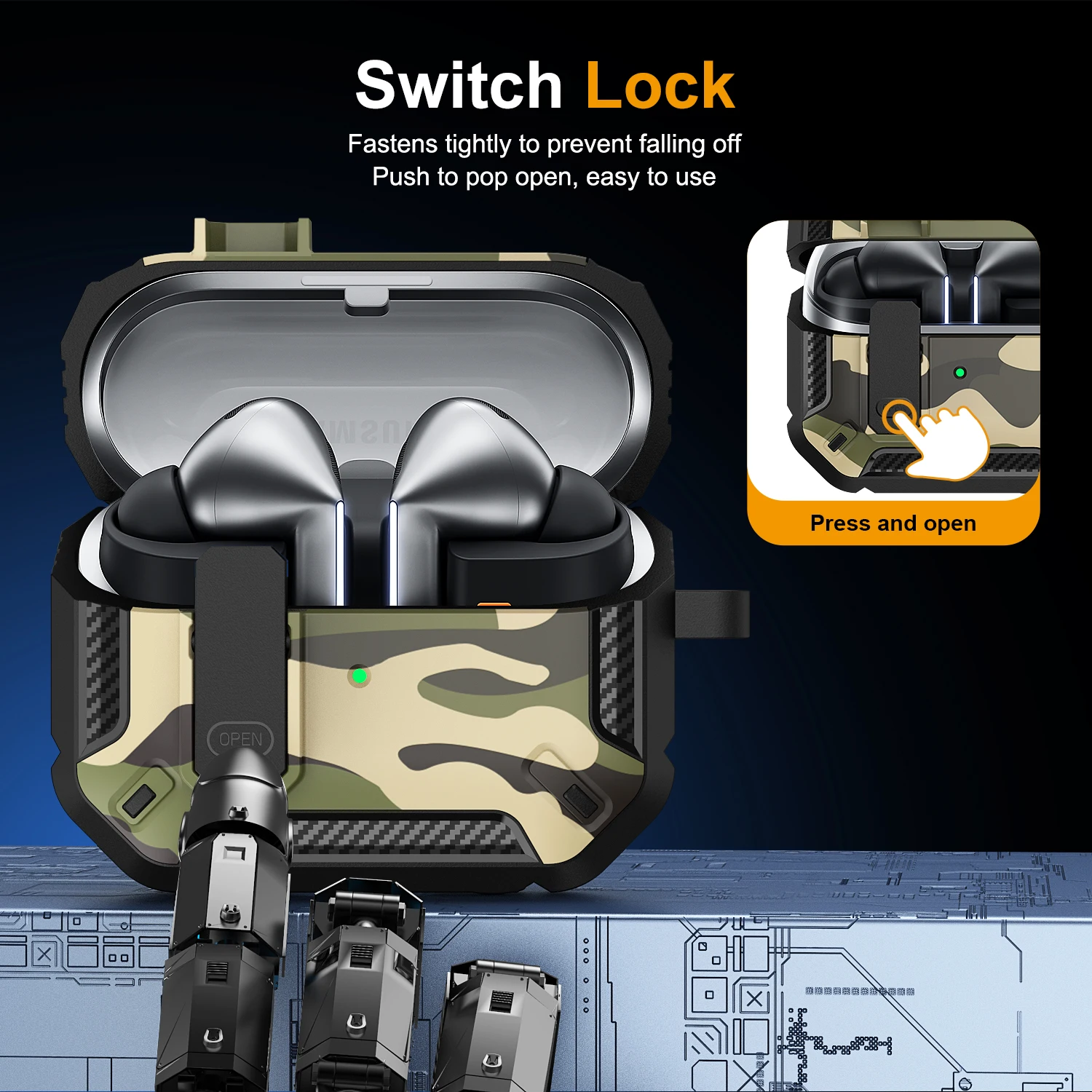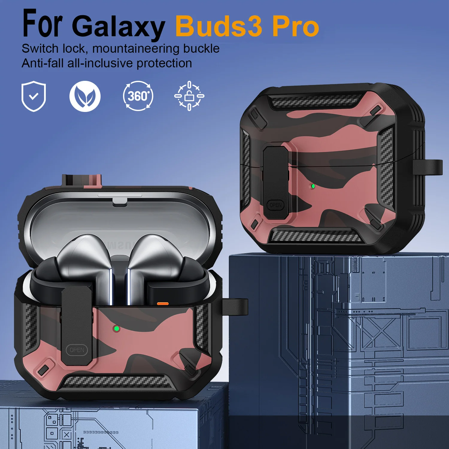 Funda de camuflaje elegante para Samsung Galaxy Buds 3 Pro Buds3 Pro Buzz 3 Pro, funda con cerradura, armadura de carcasa robusta, funda a prueba de golpes