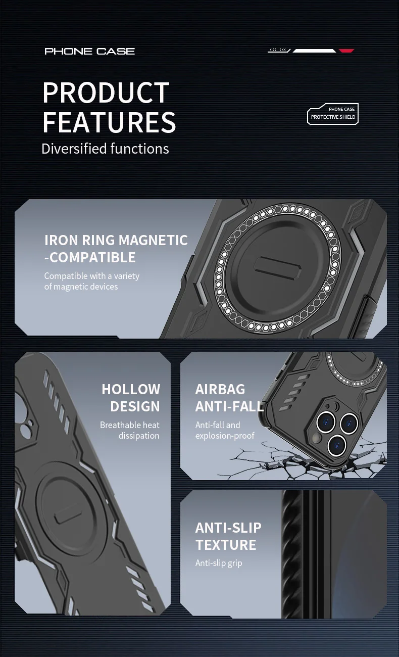 [Material]: Grado militar Hecho de PlaRRstic + TPU de alta calidad[Característica]: Anillo magnético+Carga inalámbrica+Adecuado para soporte magnético[Función]: Protección de espalda A prueba de golpes + Resistente a rayones + Antideslizante + Anticaída¡Soporte de envío directo!!¡Soporte de gran descuento al por mayor!!