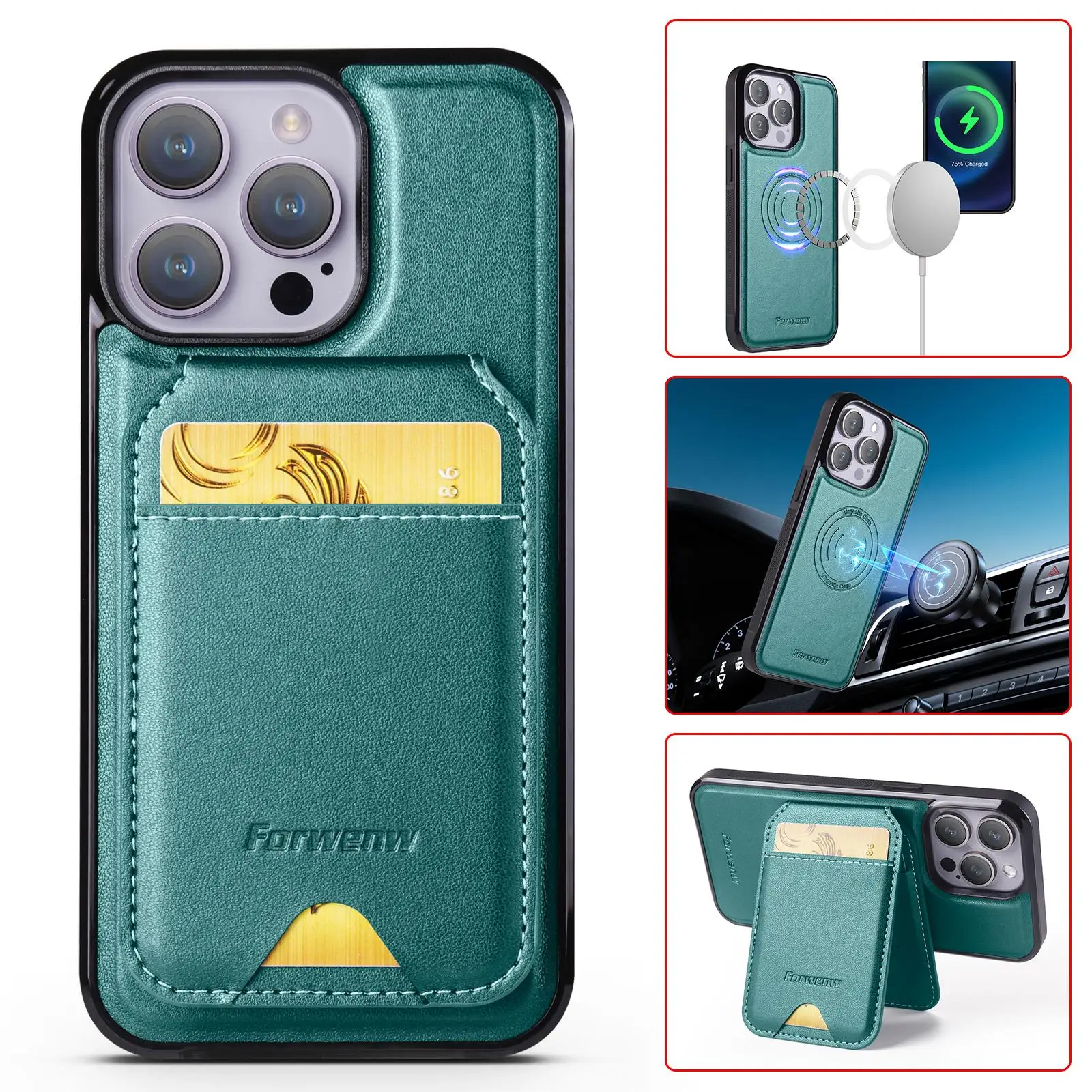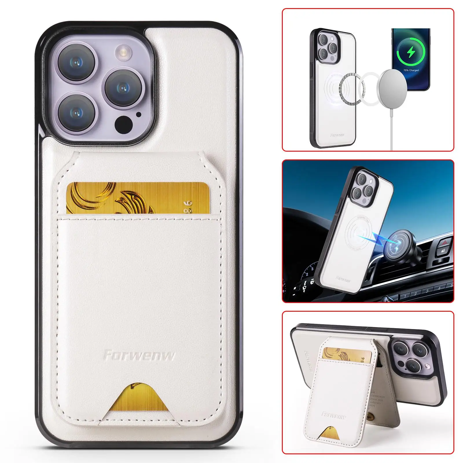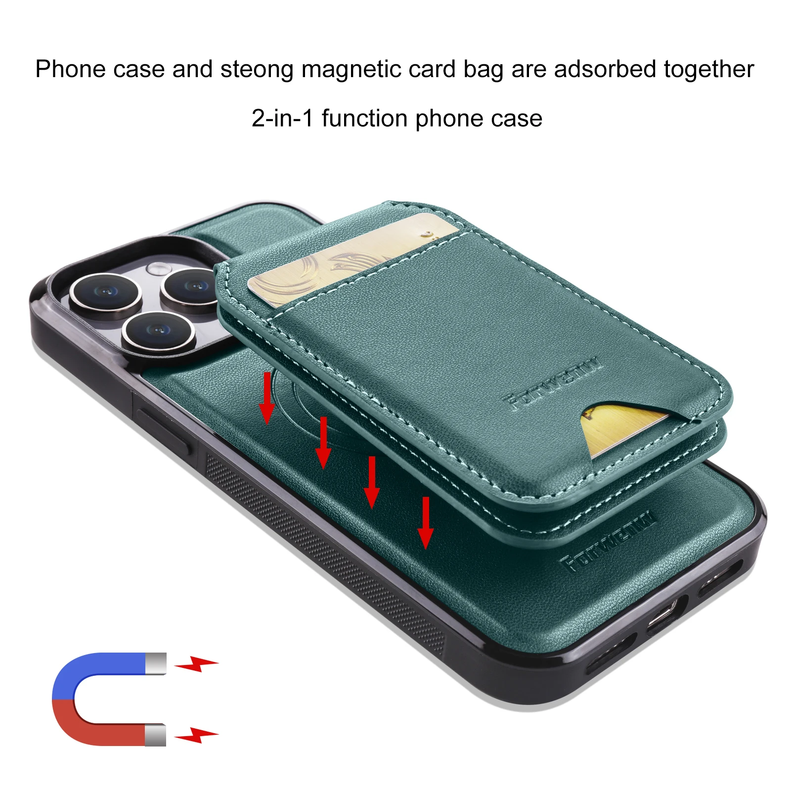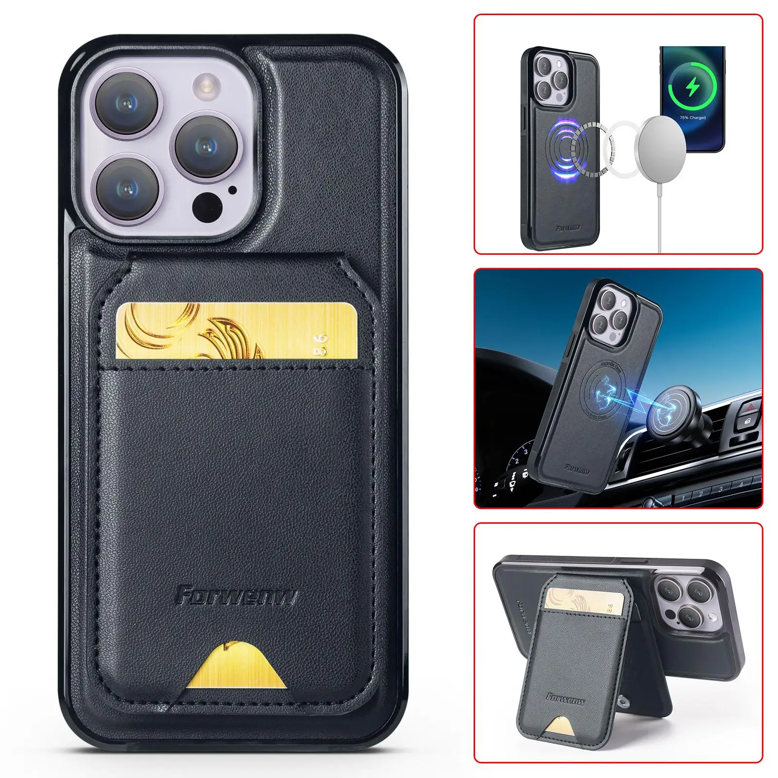 Comprar Funda de carga inalámbrica magnética de cuero para iPhone, funda de tarjeta extraíble 2 en 1 para iPhone 15 Pro Max 14 Plus 13 12 11 XR SE2022