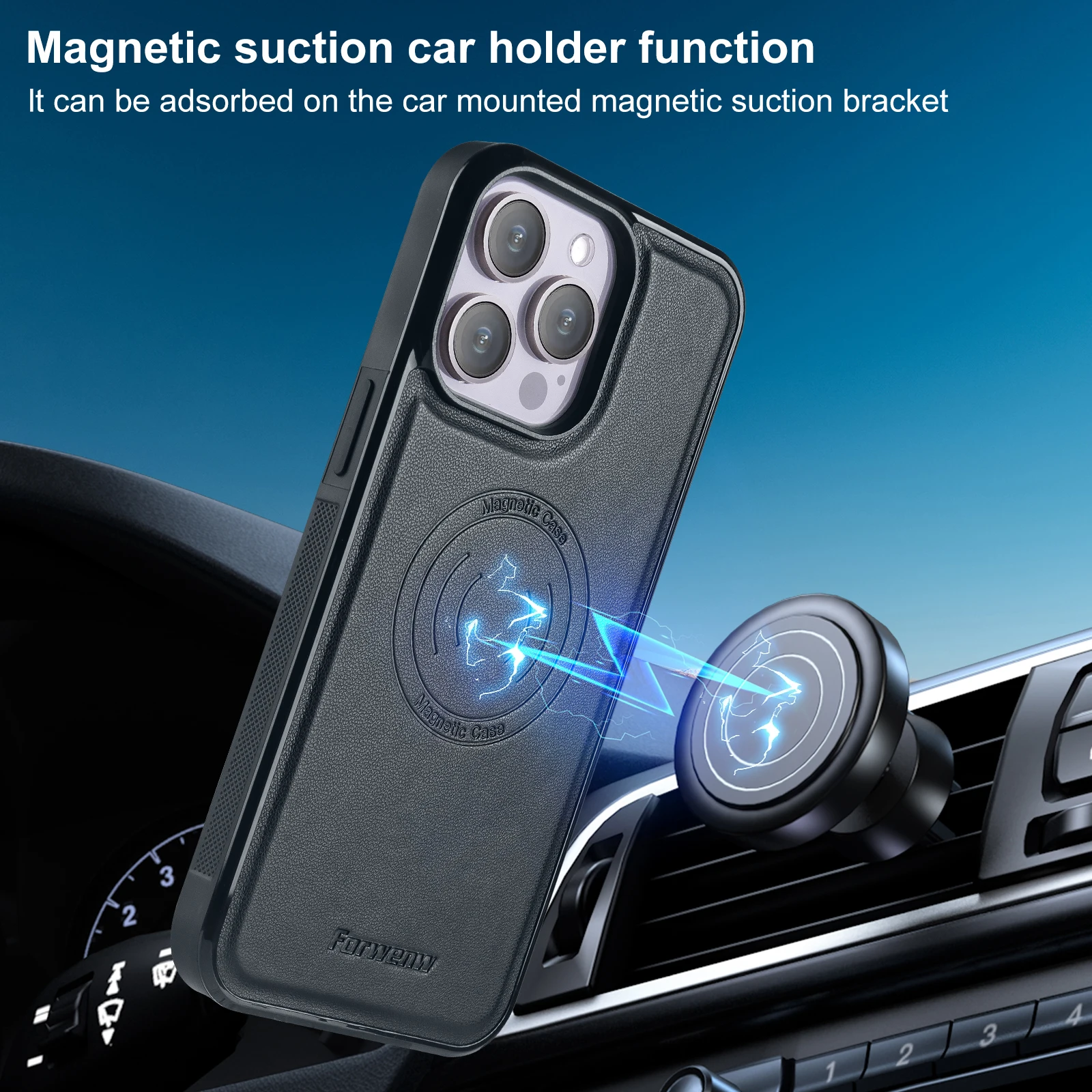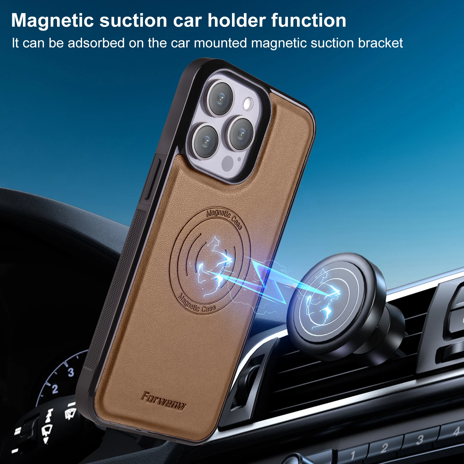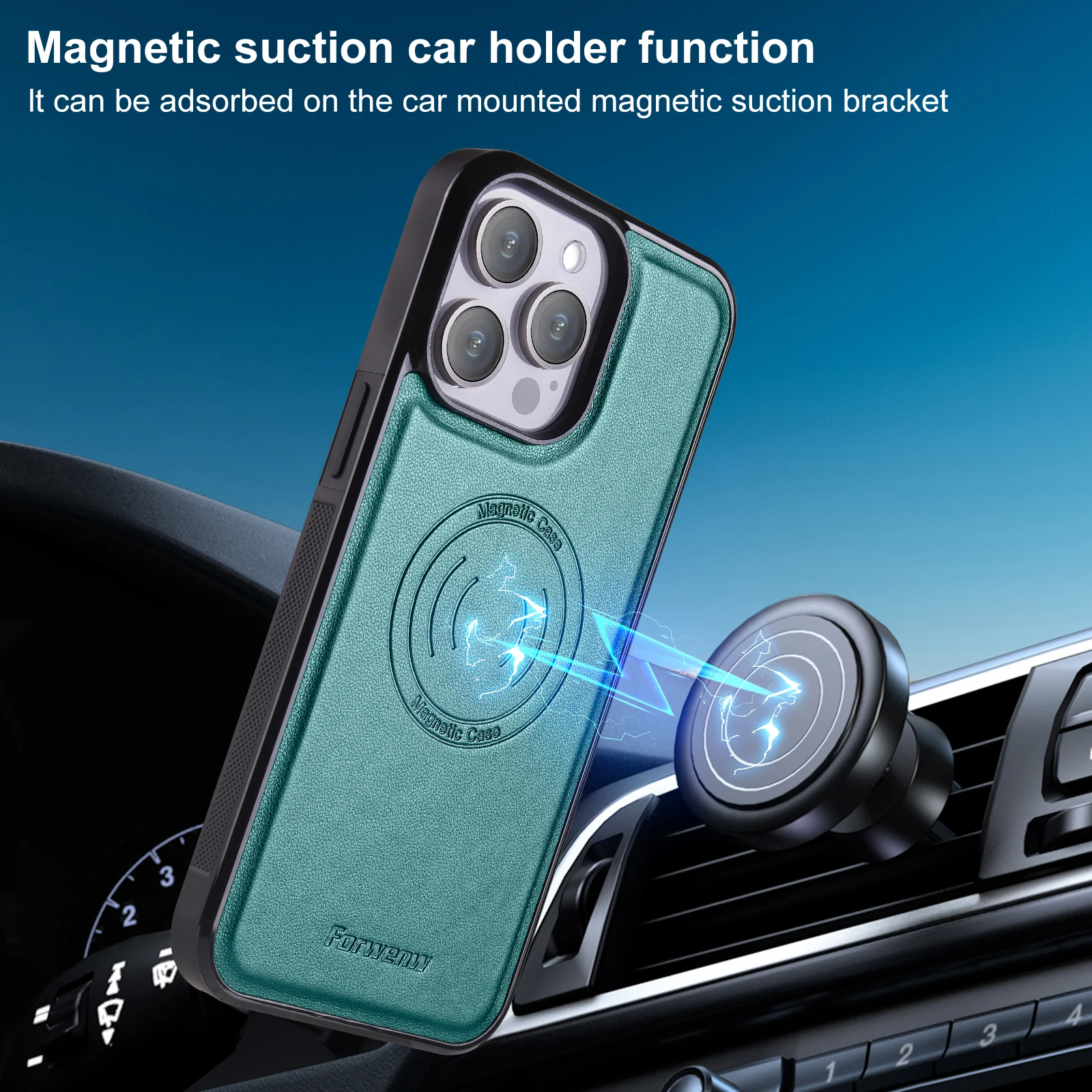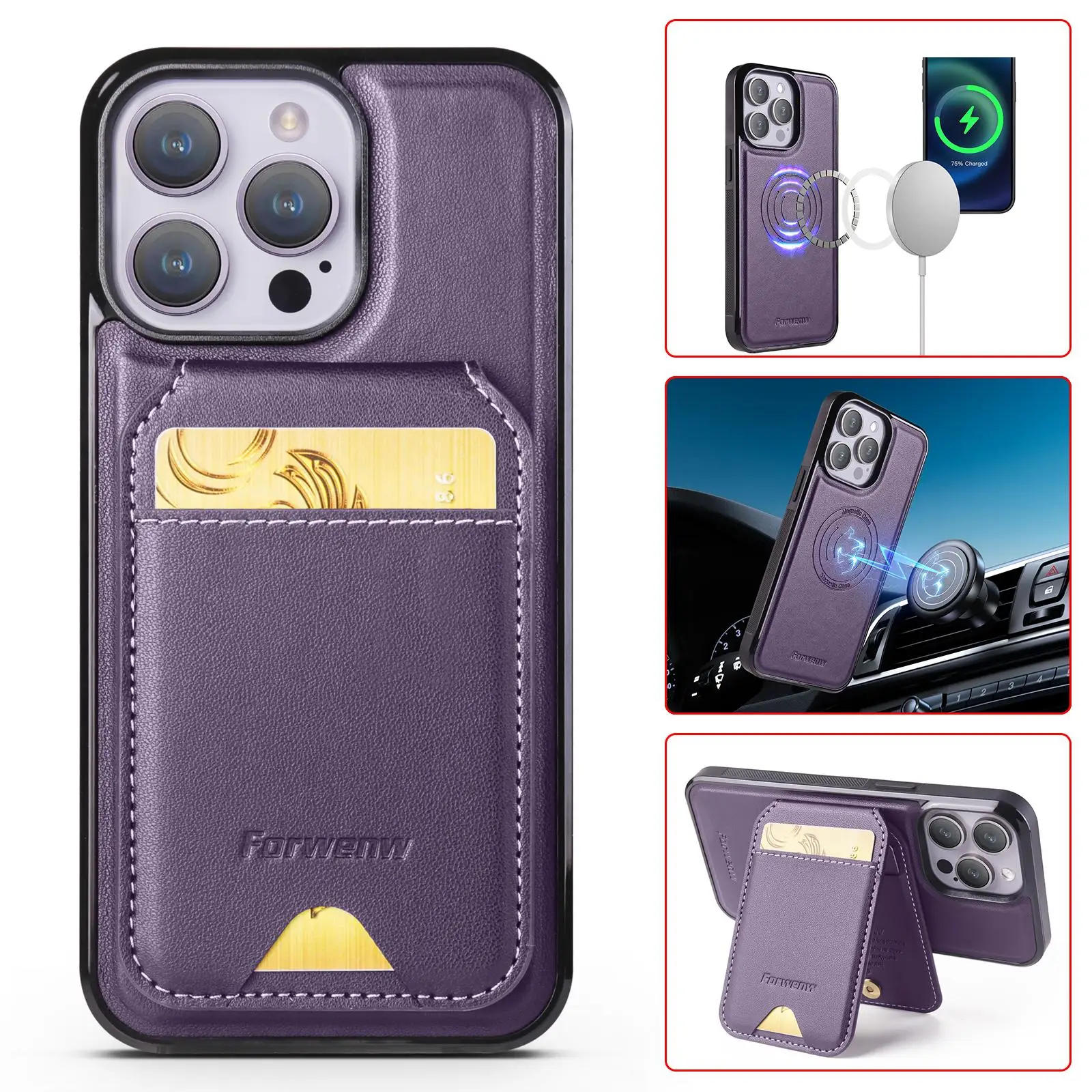 Comprar Funda de carga inalámbrica magnética de cuero para iPhone, funda de tarjeta extraíble 2 en 1 para iPhone 15 Pro Max 14 Plus 13 12 11 XR SE2022