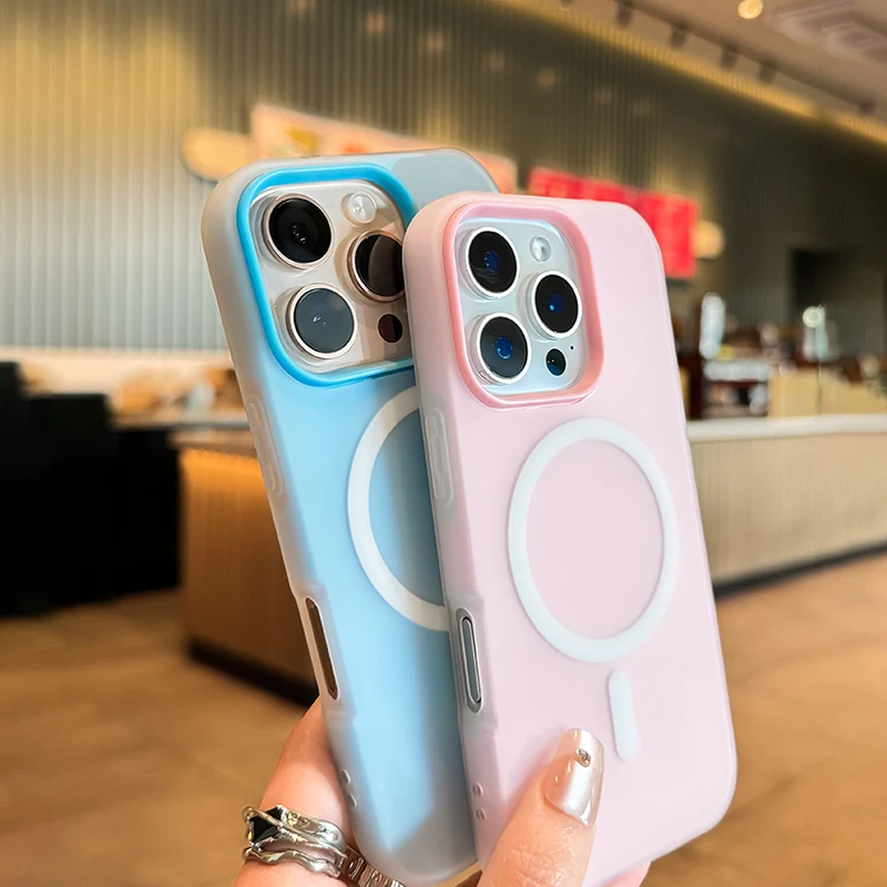 Funda de carga inalámbrica magnética mate caramelo de lujo para iPhone 11 12 13 14 15 16 Pro Max Plus, doble funda a prueba de golpes