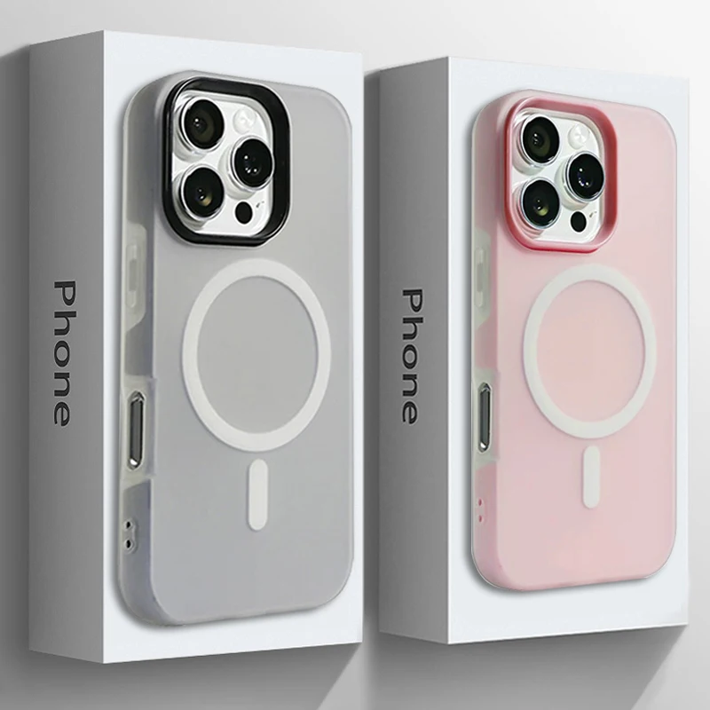 Funda de carga inalámbrica magnética mate caramelo de lujo para iPhone 11 12 13 14 15 16 Pro Max Plus, doble funda a prueba de golpes