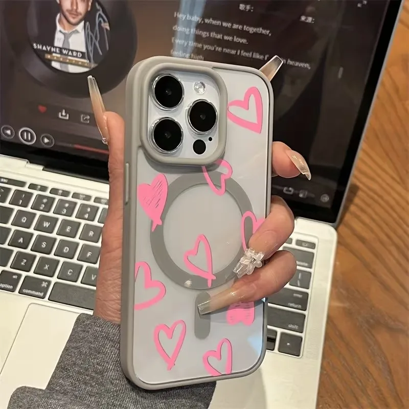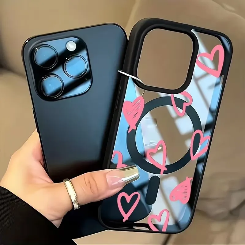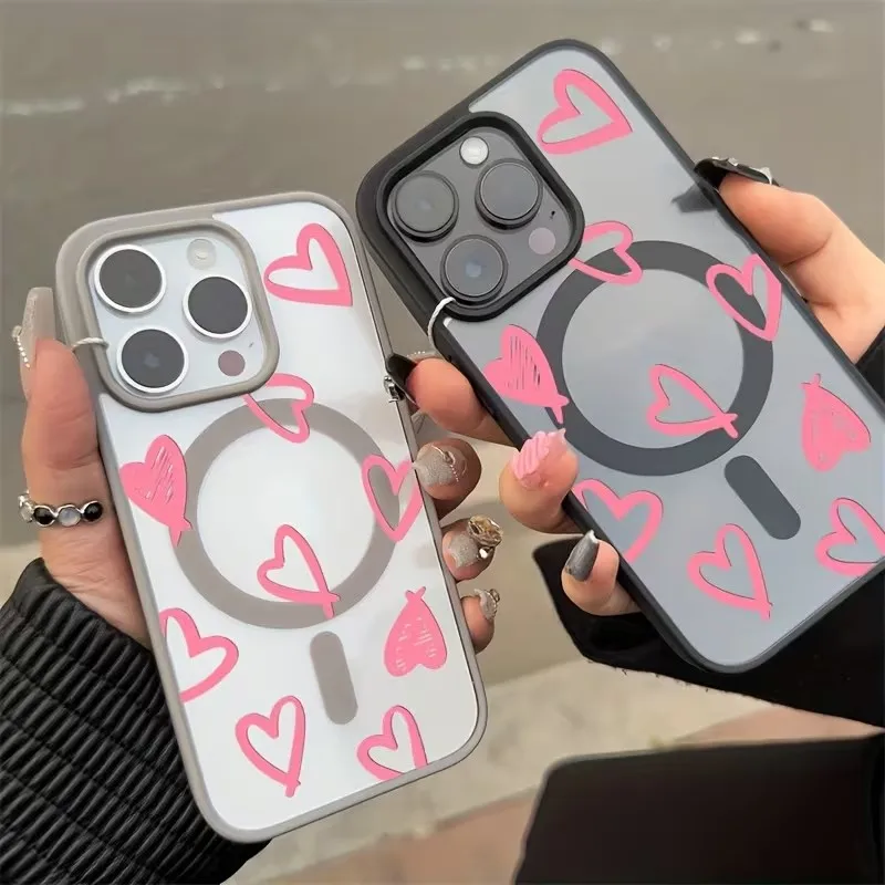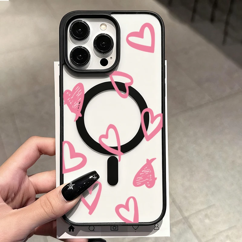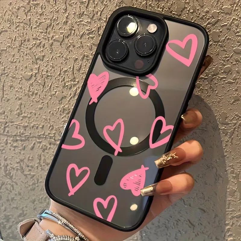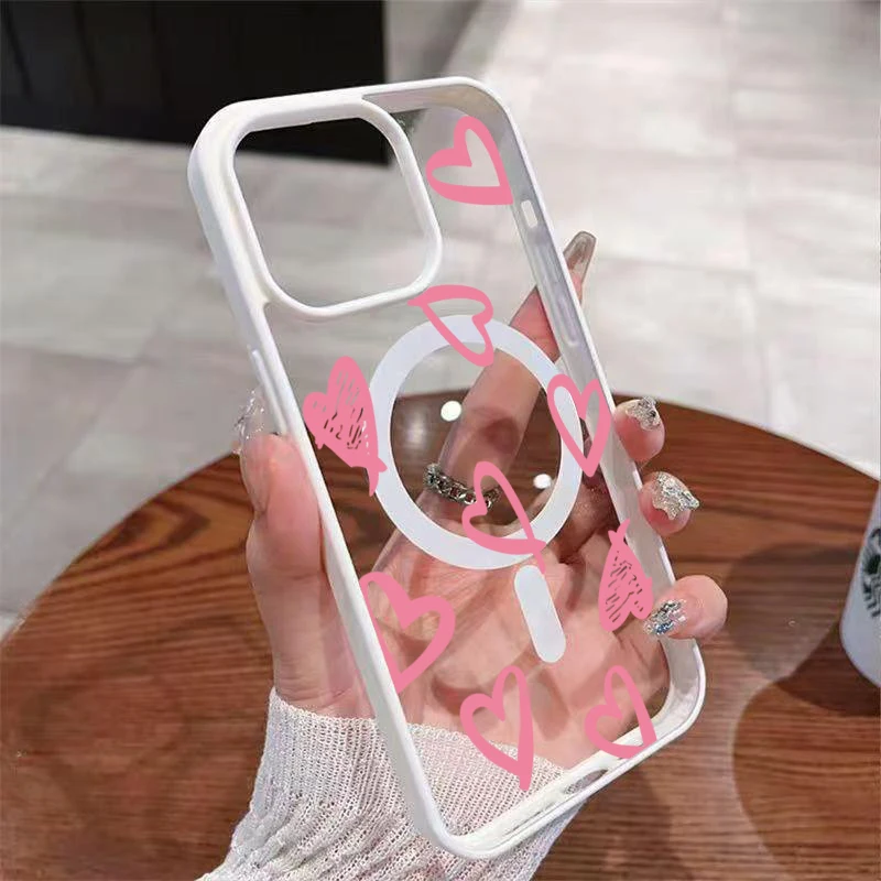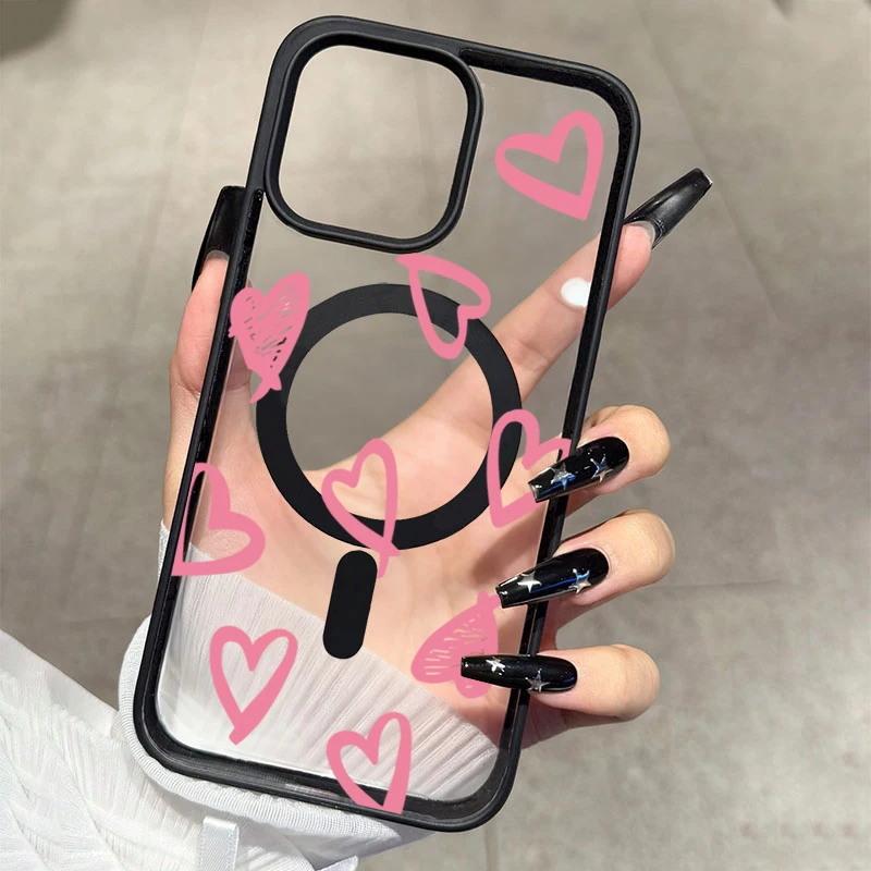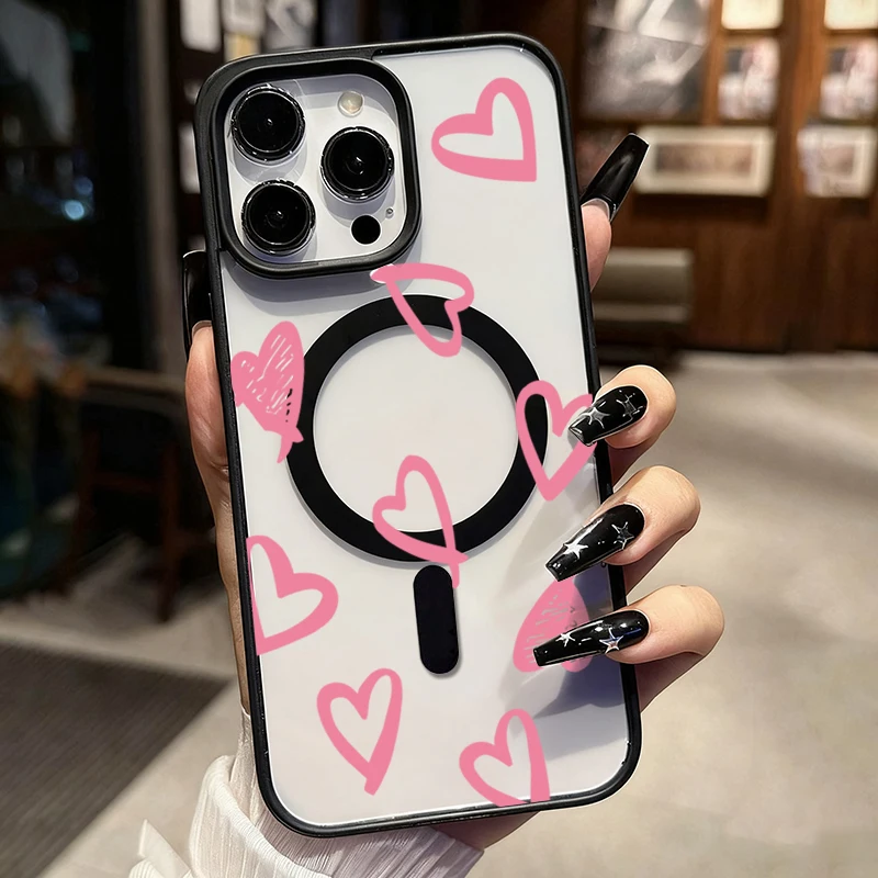 Funda de carga inalámbrica magnética Magsafe con lazo de corazón rosa para iPhone 16 17 Pro 16e 15 13 11 12 14 Pro Max Plus, funda a prueba de golpes