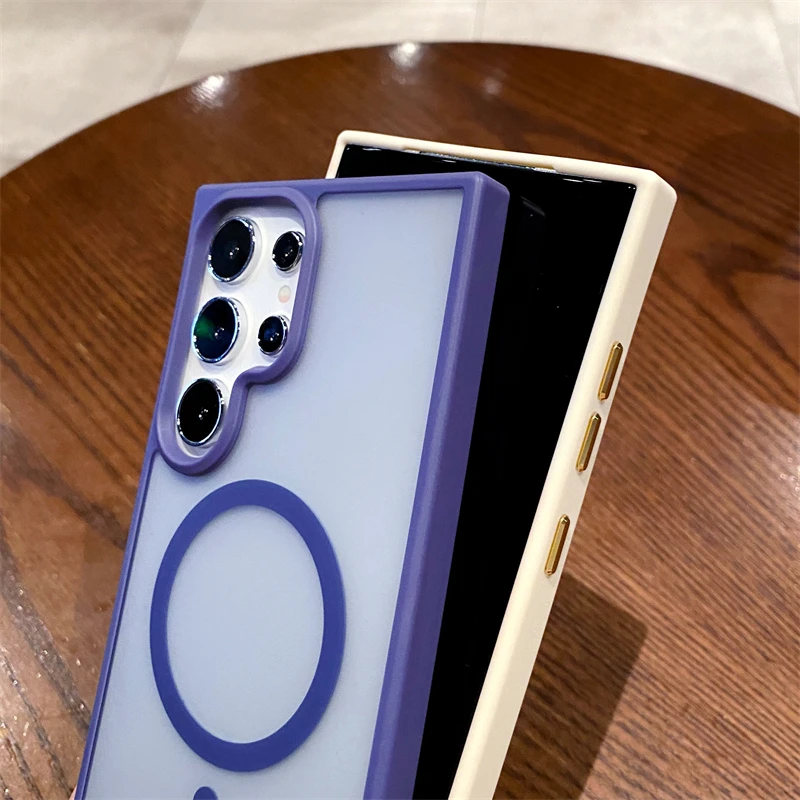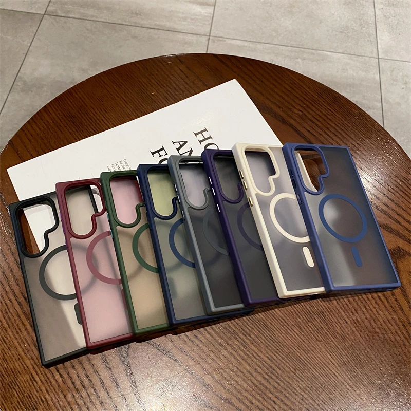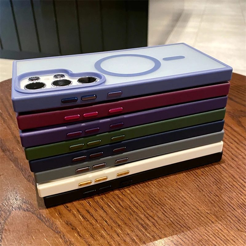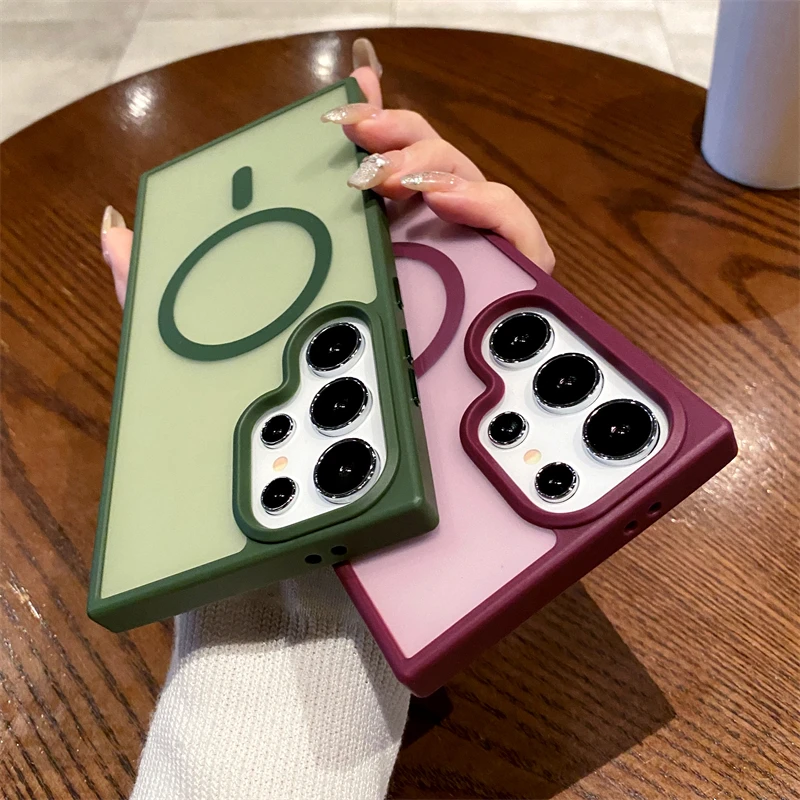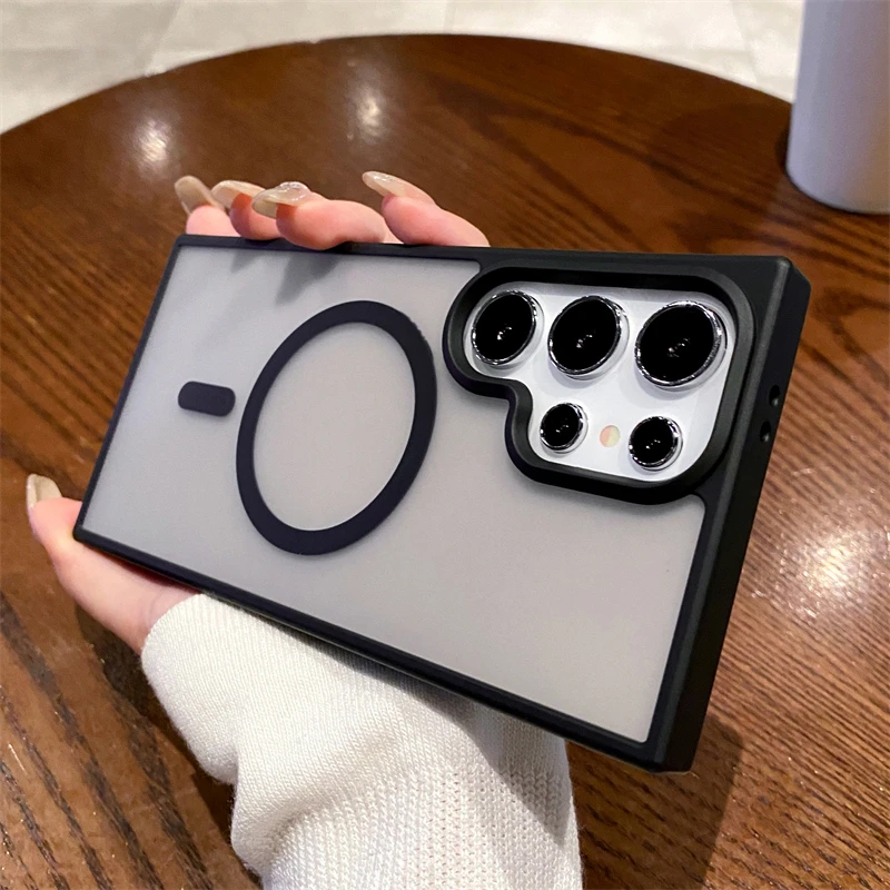 Comprar Funda de carga inalámbrica magnética Magsafe para Samsung Galaxy S25 S24 S23 S22 S21 Ultra Plus, funda trasera dura transparente mate a prueba de golpes