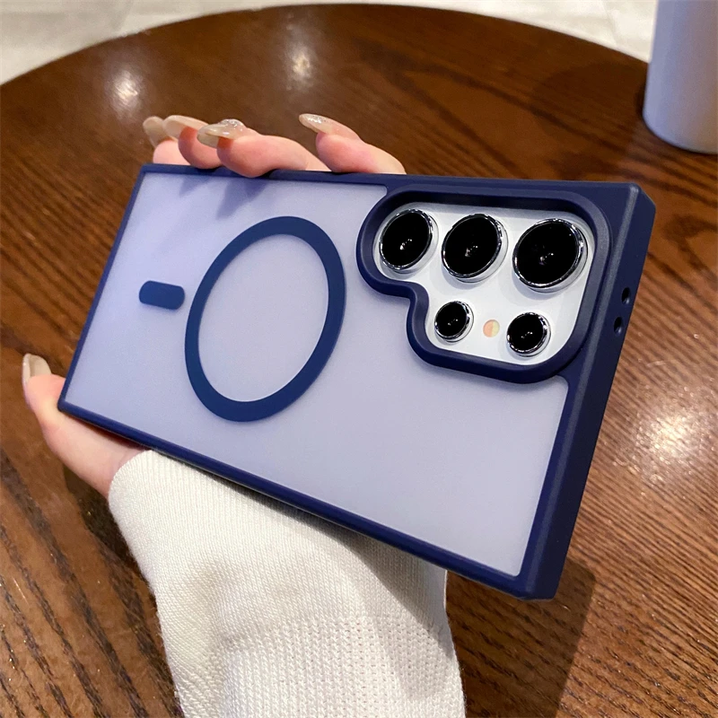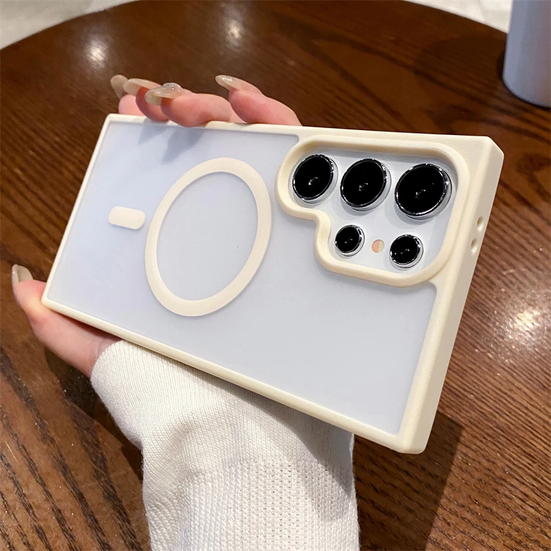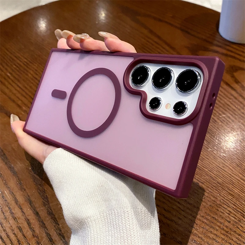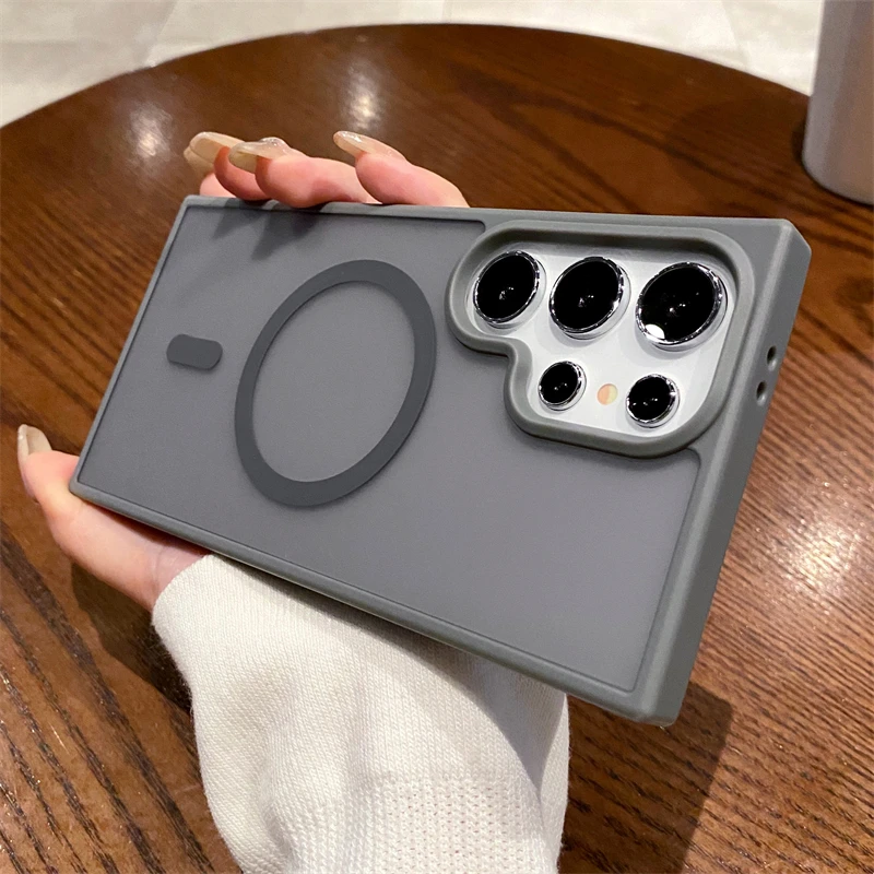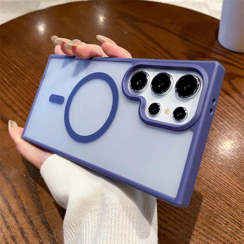 Comprar Funda de carga inalámbrica magnética Magsafe para Samsung Galaxy S25 S24 S23 S22 S21 Ultra Plus, funda trasera dura transparente mate a prueba de golpes