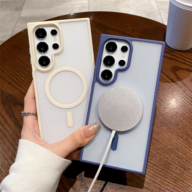 Comprar Funda de carga inalámbrica magnética Magsafe para Samsung Galaxy S25 S24 S23 S22 S21 Ultra Plus, funda trasera dura transparente mate a prueba de golpes